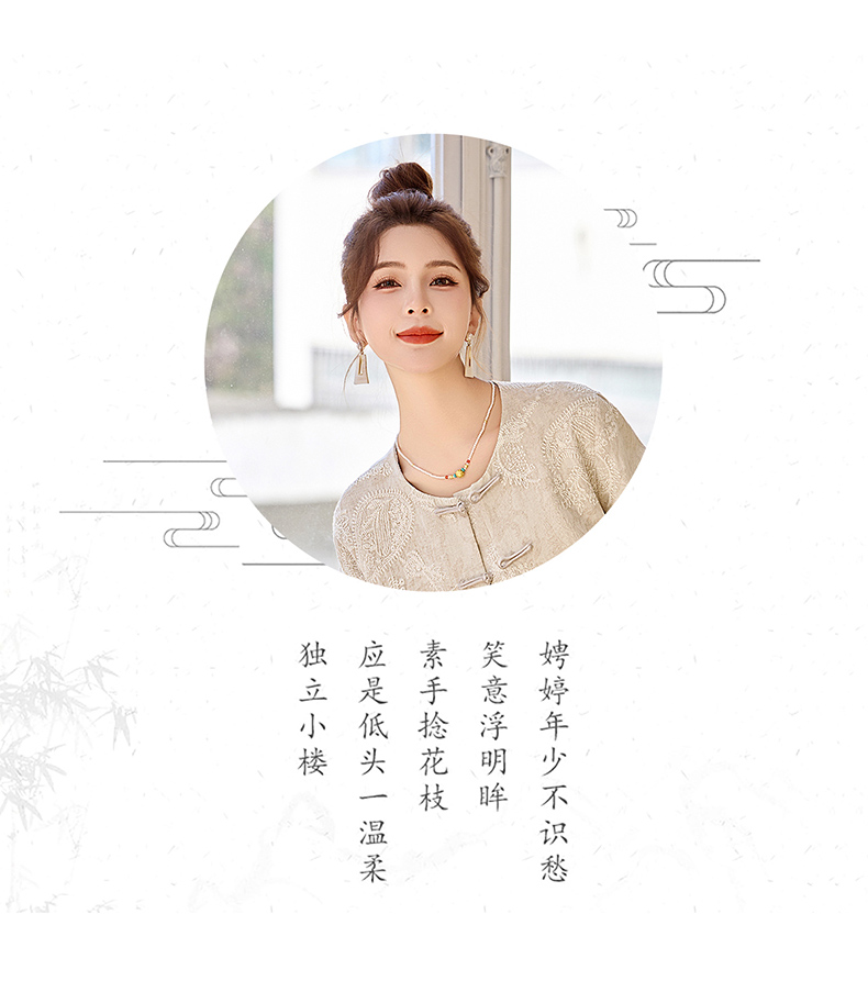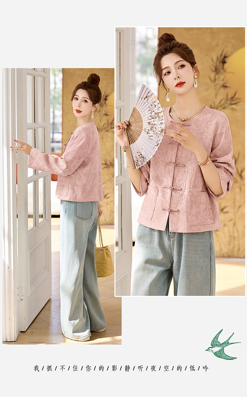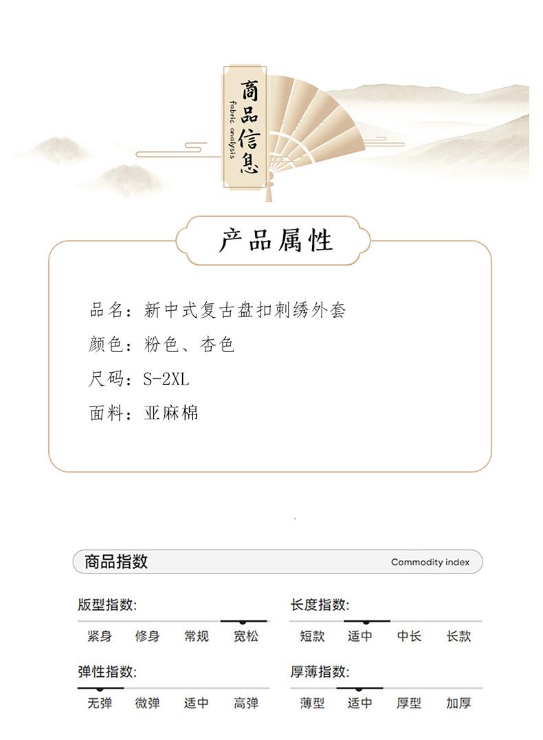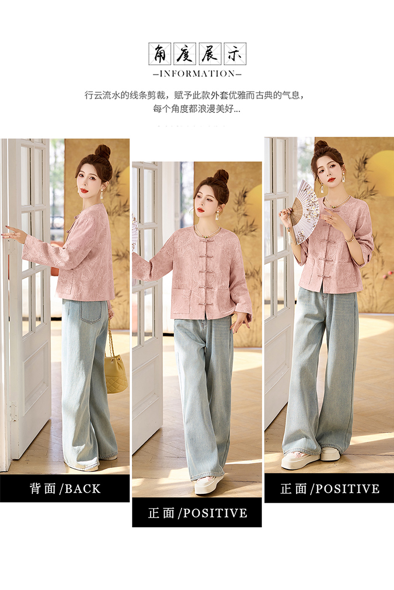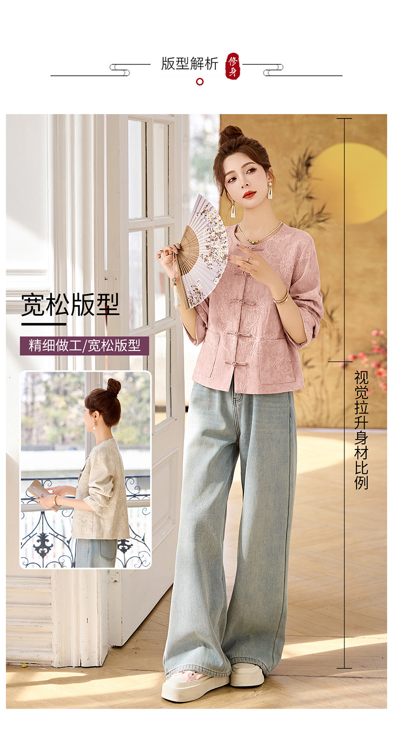 新中式国风外套,时尚复古腰果花亚麻棉刺绣圆领上衣HR-GJC2519