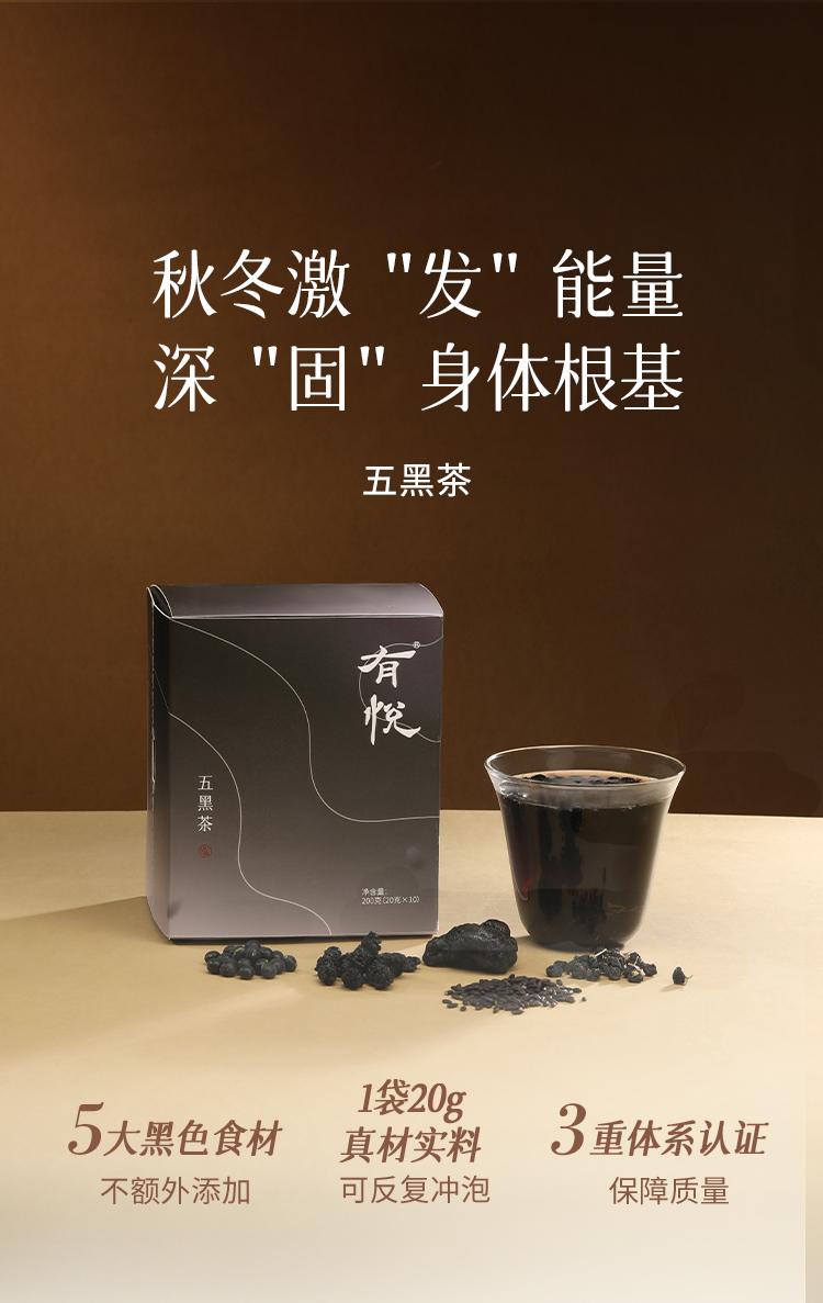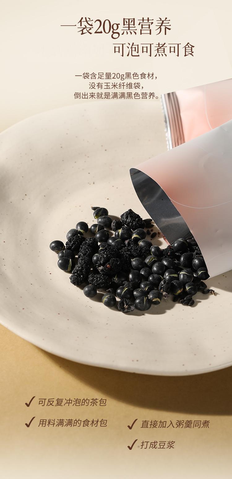 五黑茶 黑色食材 黑豆、桑椹、黑米、黑枸杞、黄精