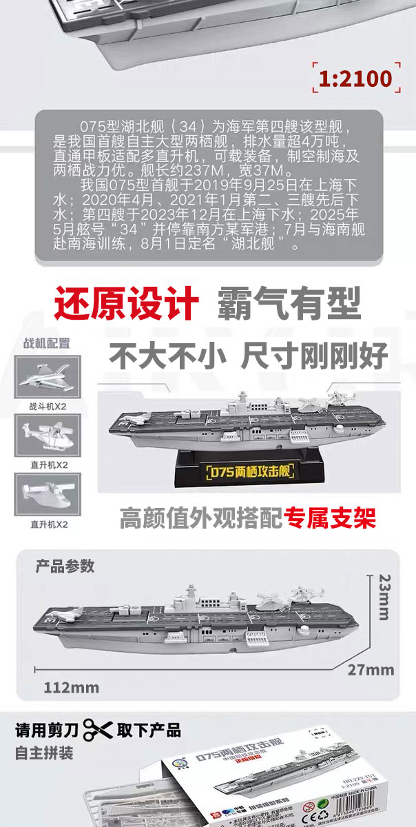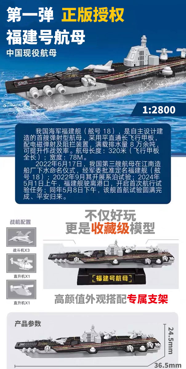 【正版授权航母战机编队拼装模型组】南之星积木驱逐舰护卫舰福建号军舰队摆件