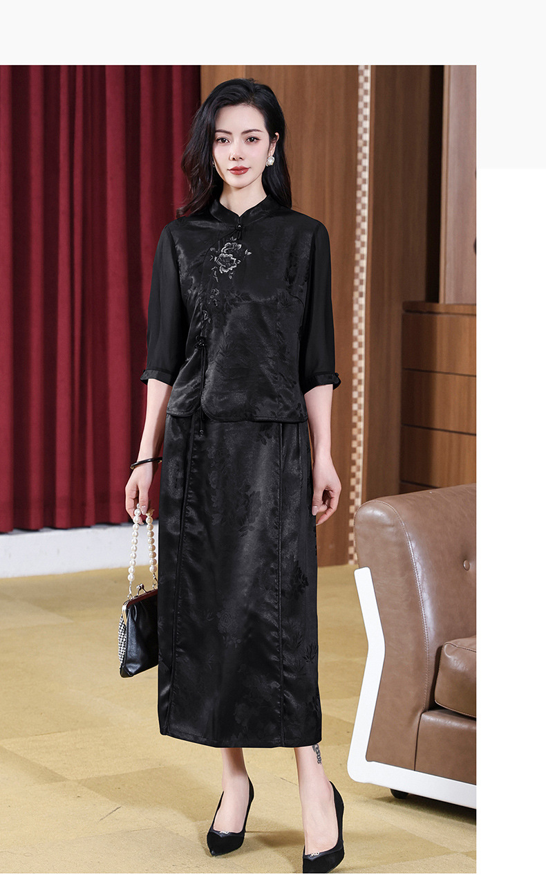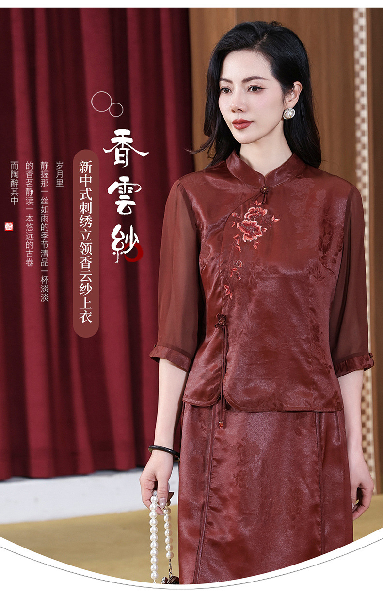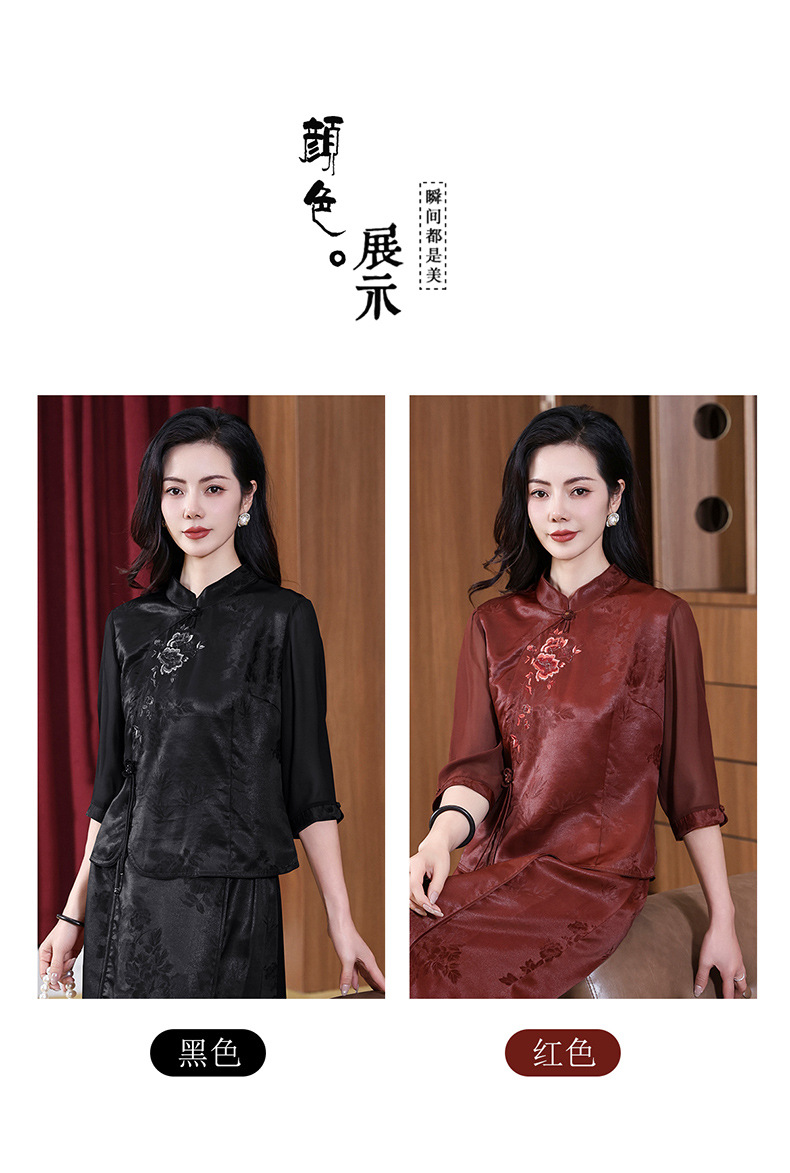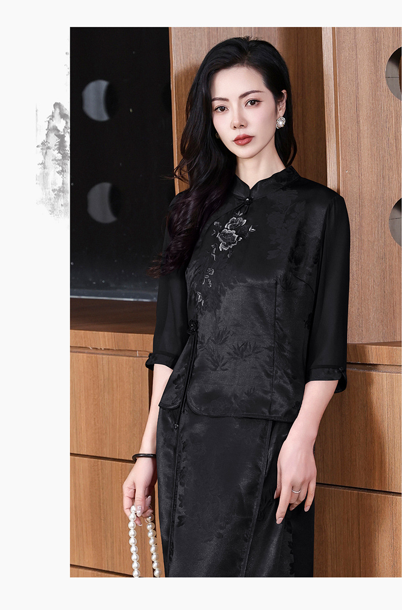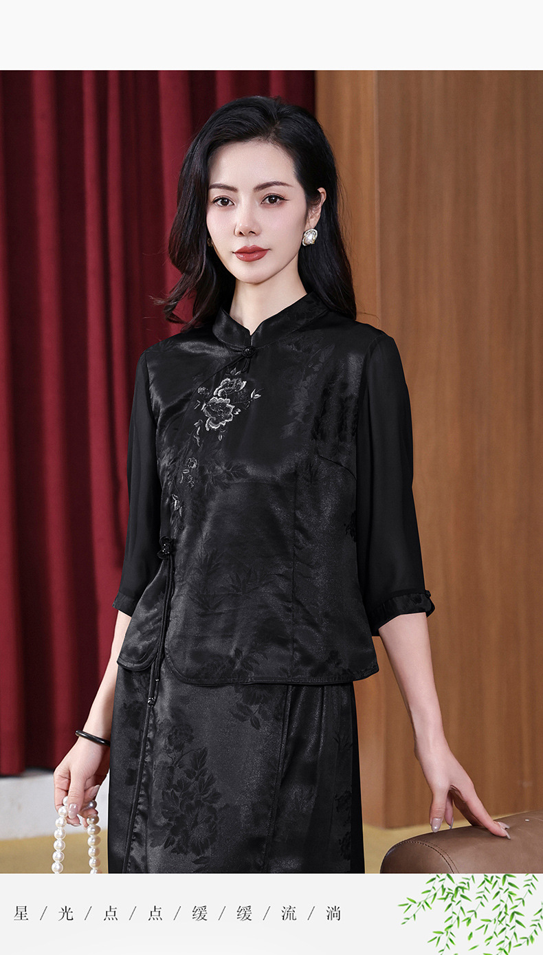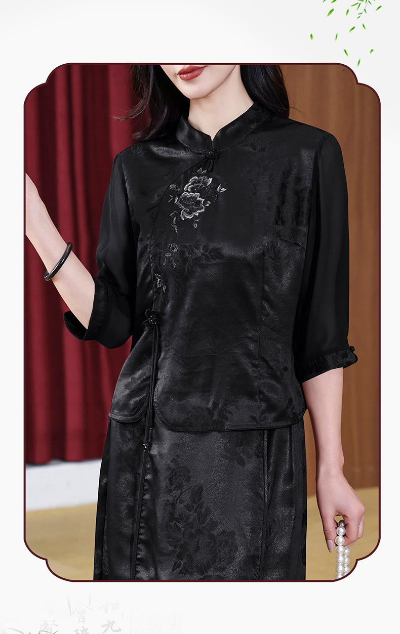 KQ-221901+221907夏季套装2025新桑蚕丝暗花刺绣香云纱上衣真丝品牌两件套