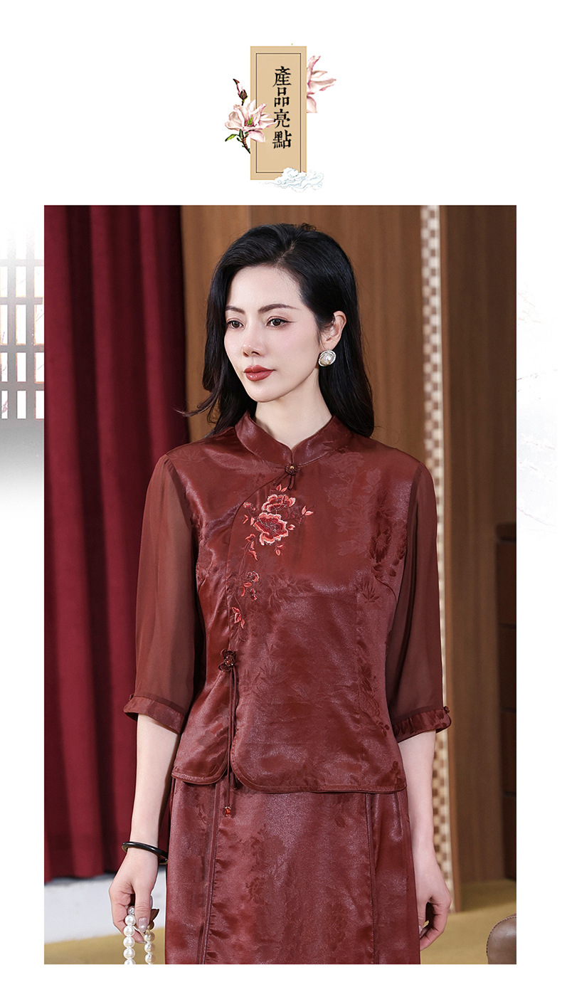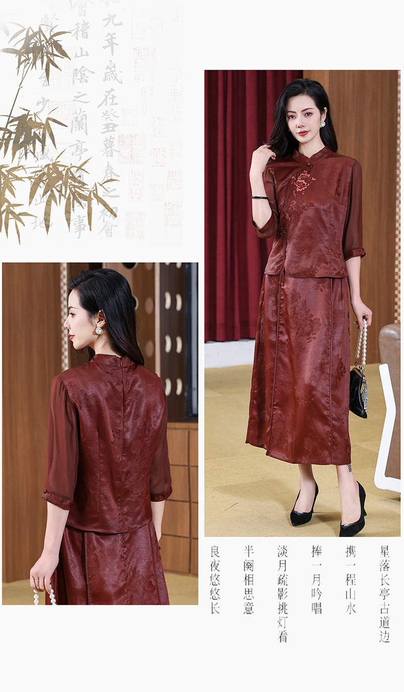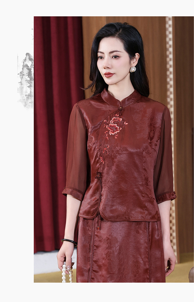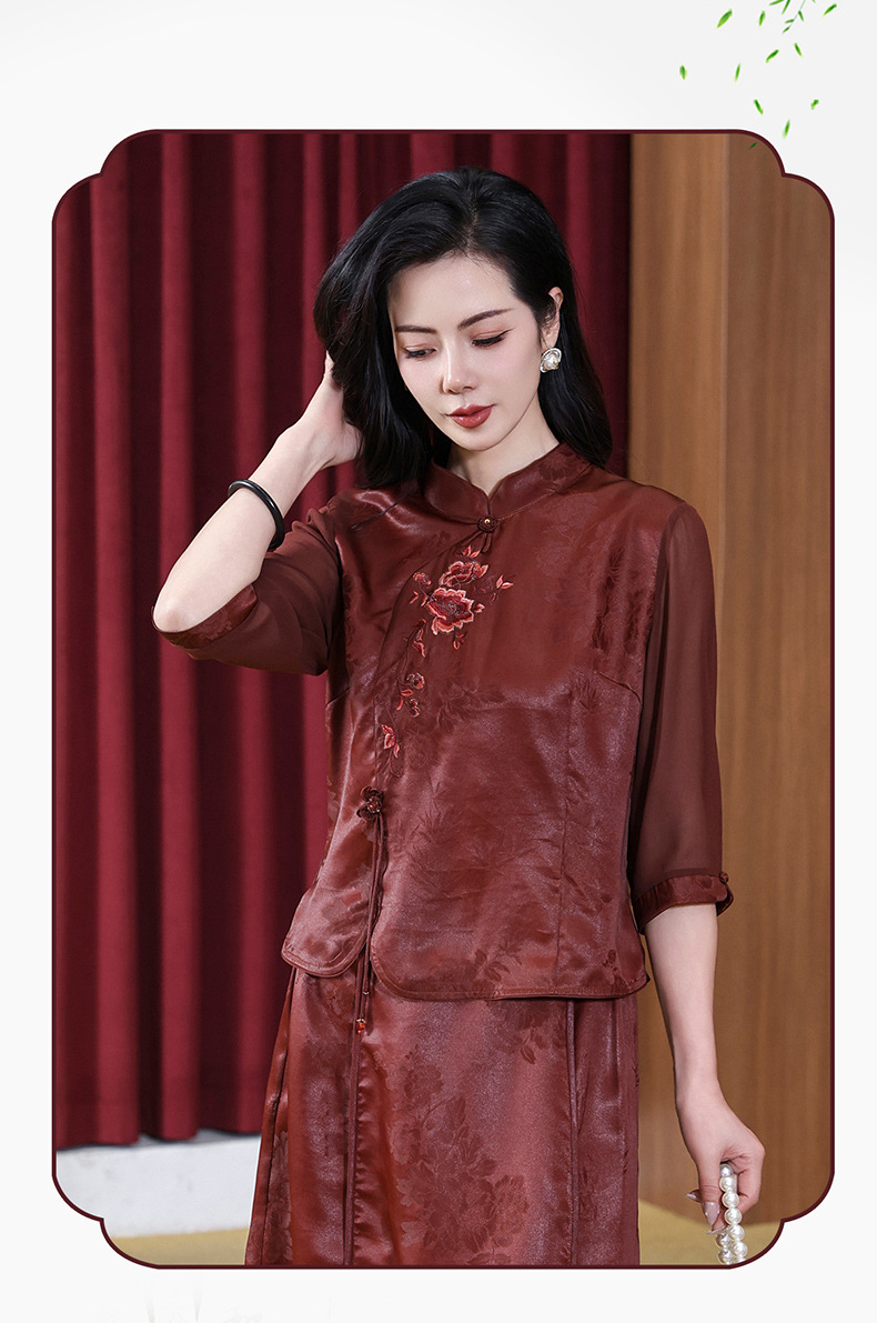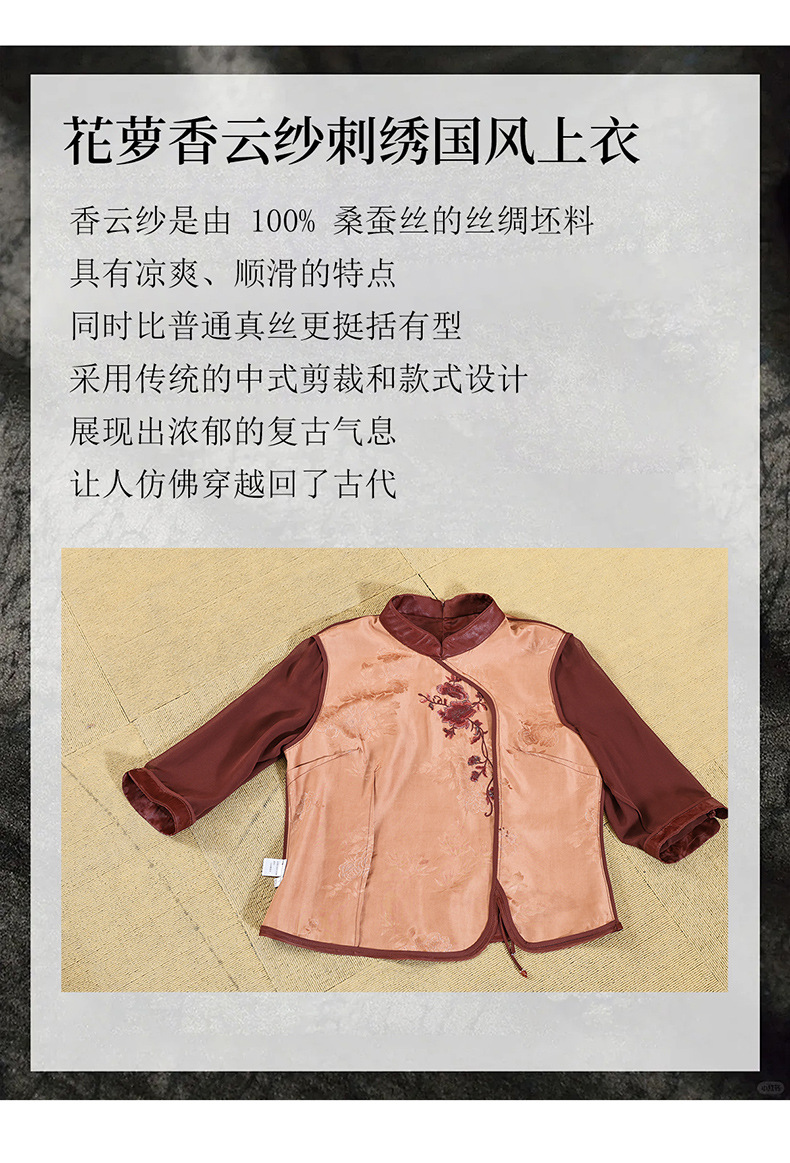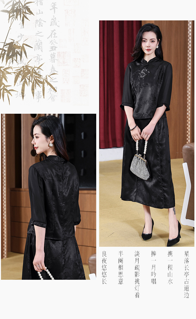 KQ-221901+221907夏季套装2025新桑蚕丝暗花刺绣香云纱上衣真丝品牌两件套