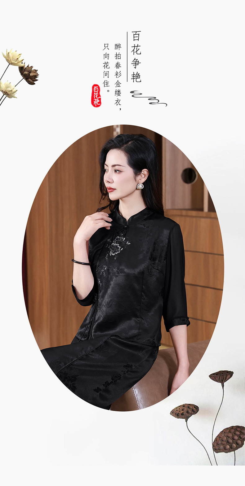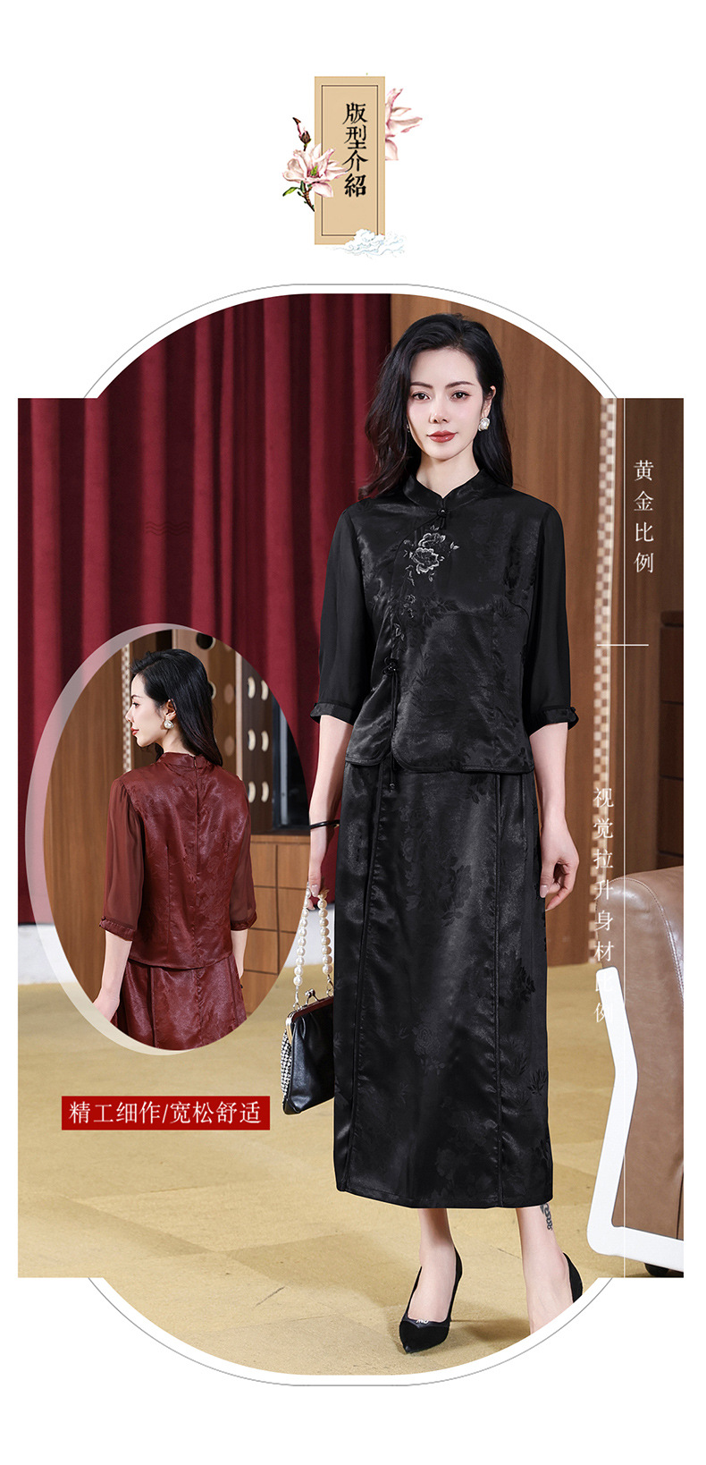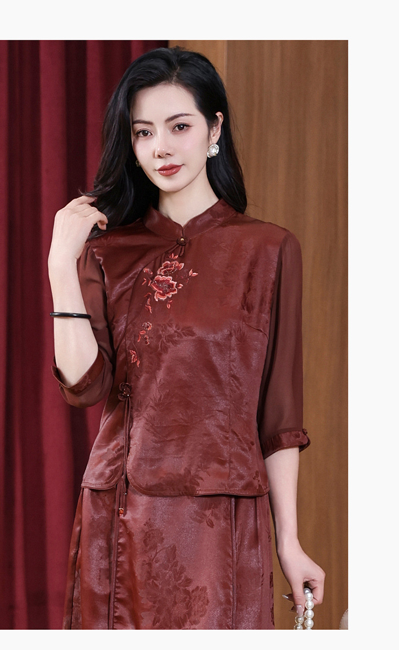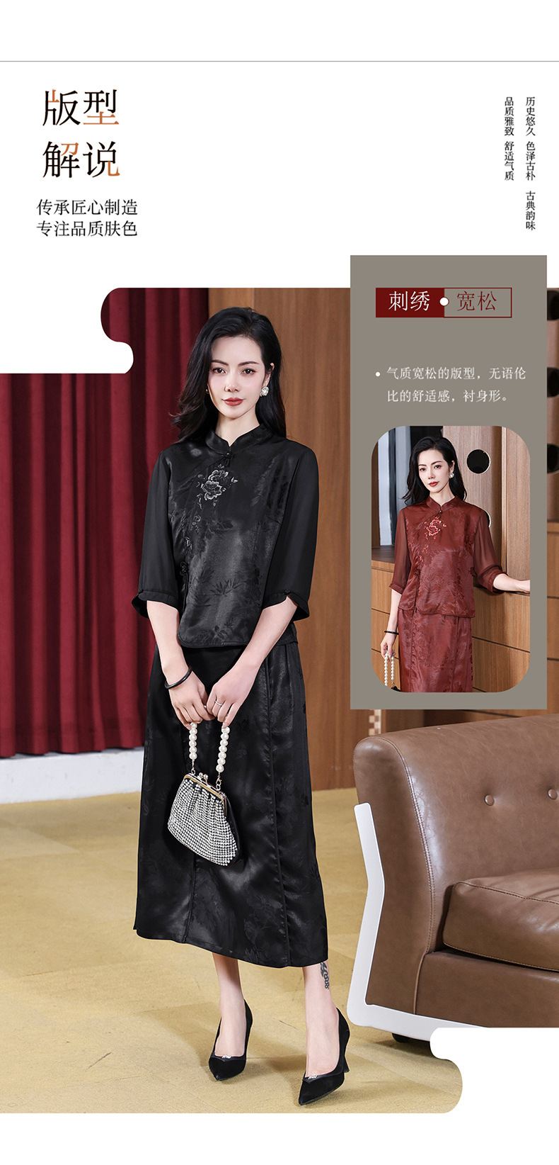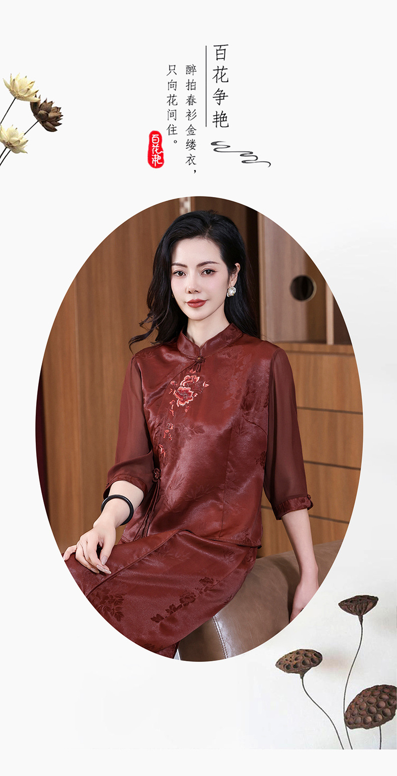 KQ-221901+221907夏季套装2025新桑蚕丝暗花刺绣香云纱上衣真丝品牌两件套