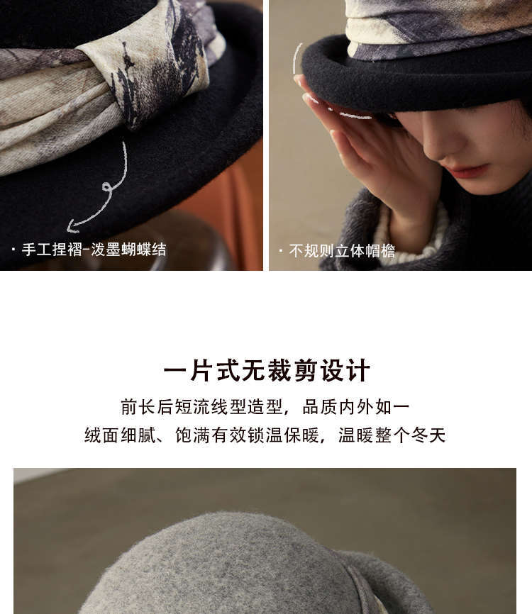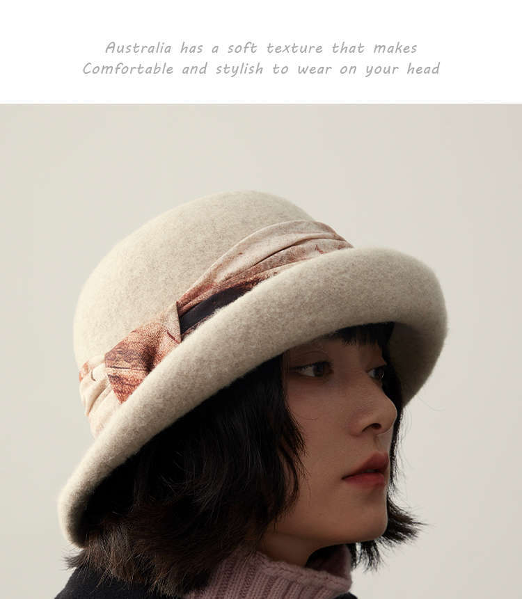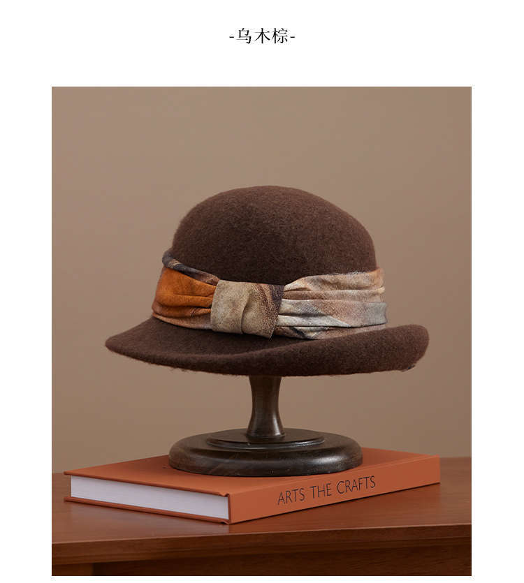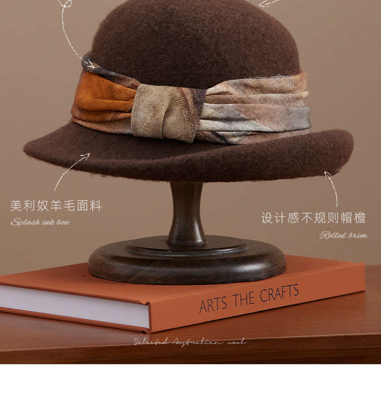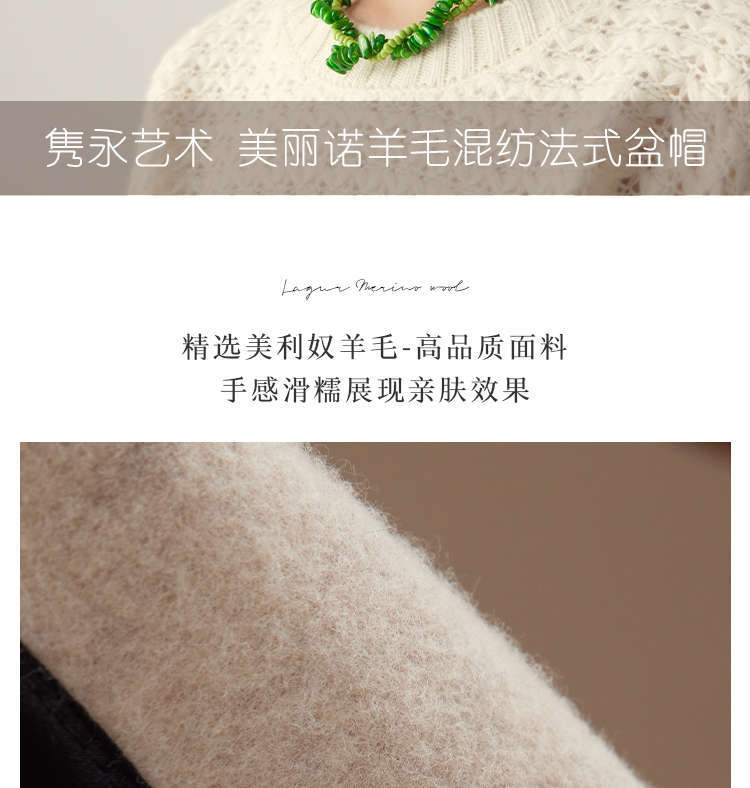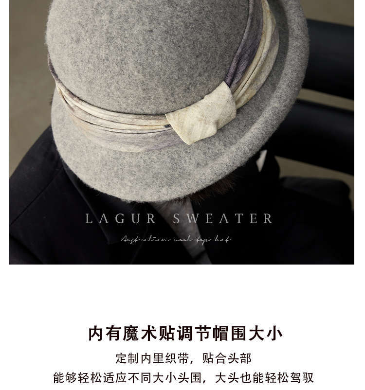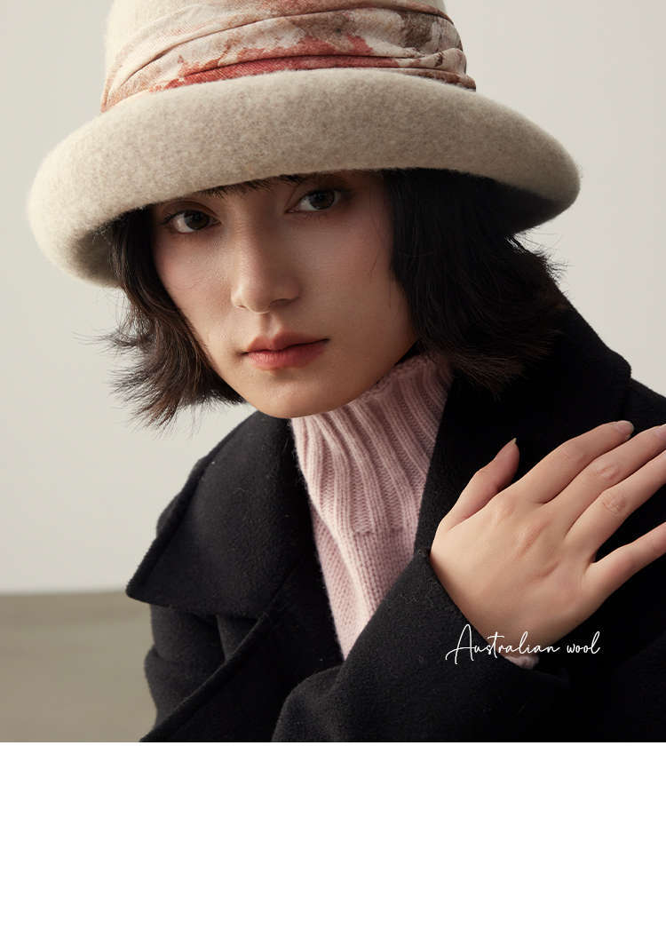 隽永艺术-进口澳洲混纺美丽诺羊毛法式盆帽优雅礼帽渔夫帽秋冬女