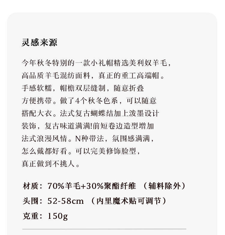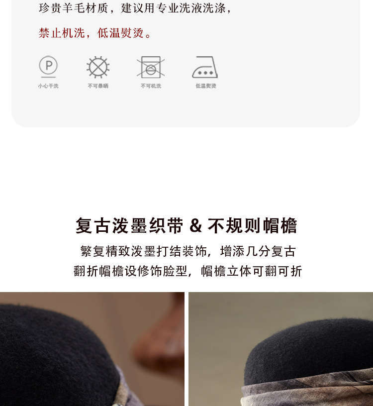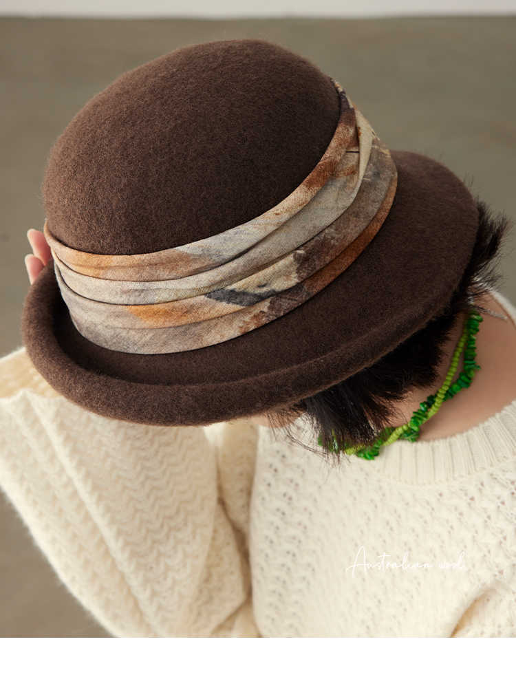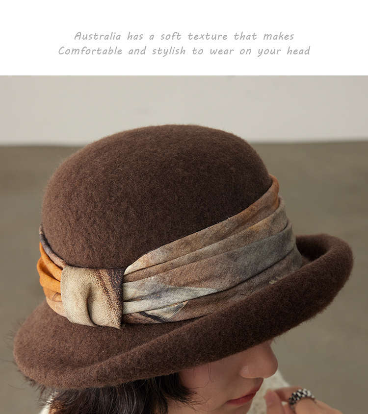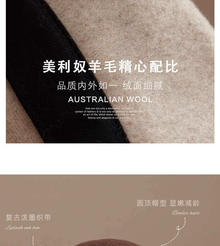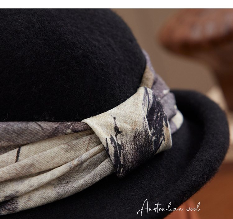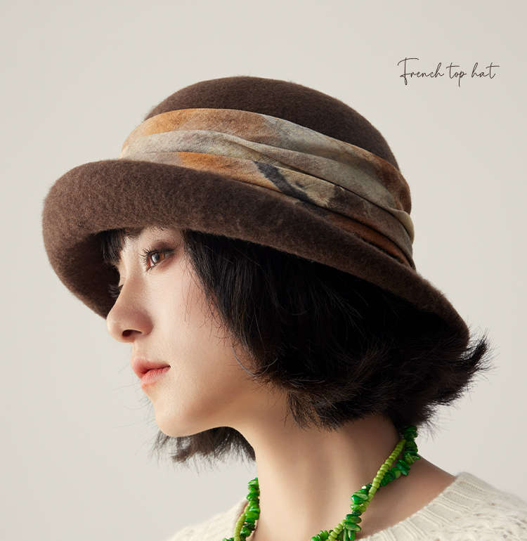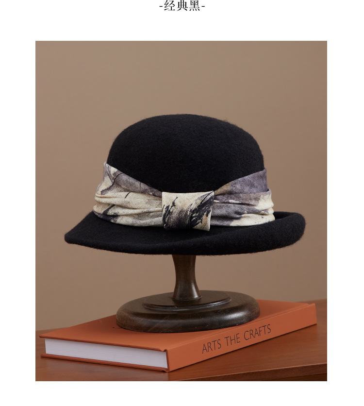 隽永艺术-进口澳洲混纺美丽诺羊毛法式盆帽优雅礼帽渔夫帽秋冬女
