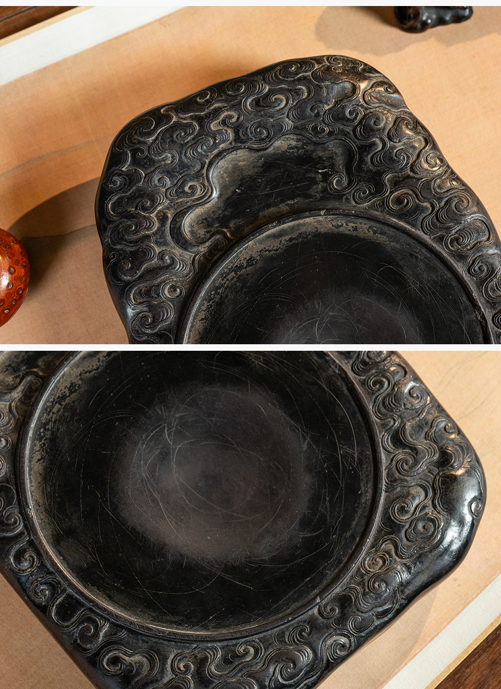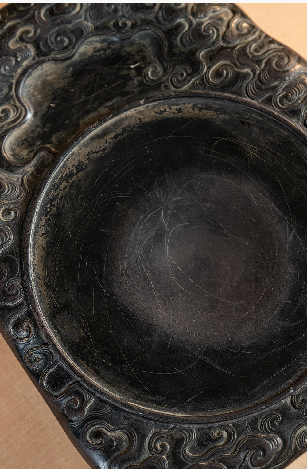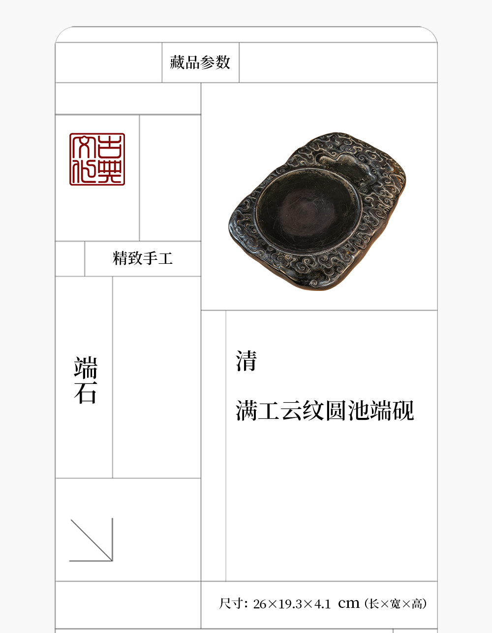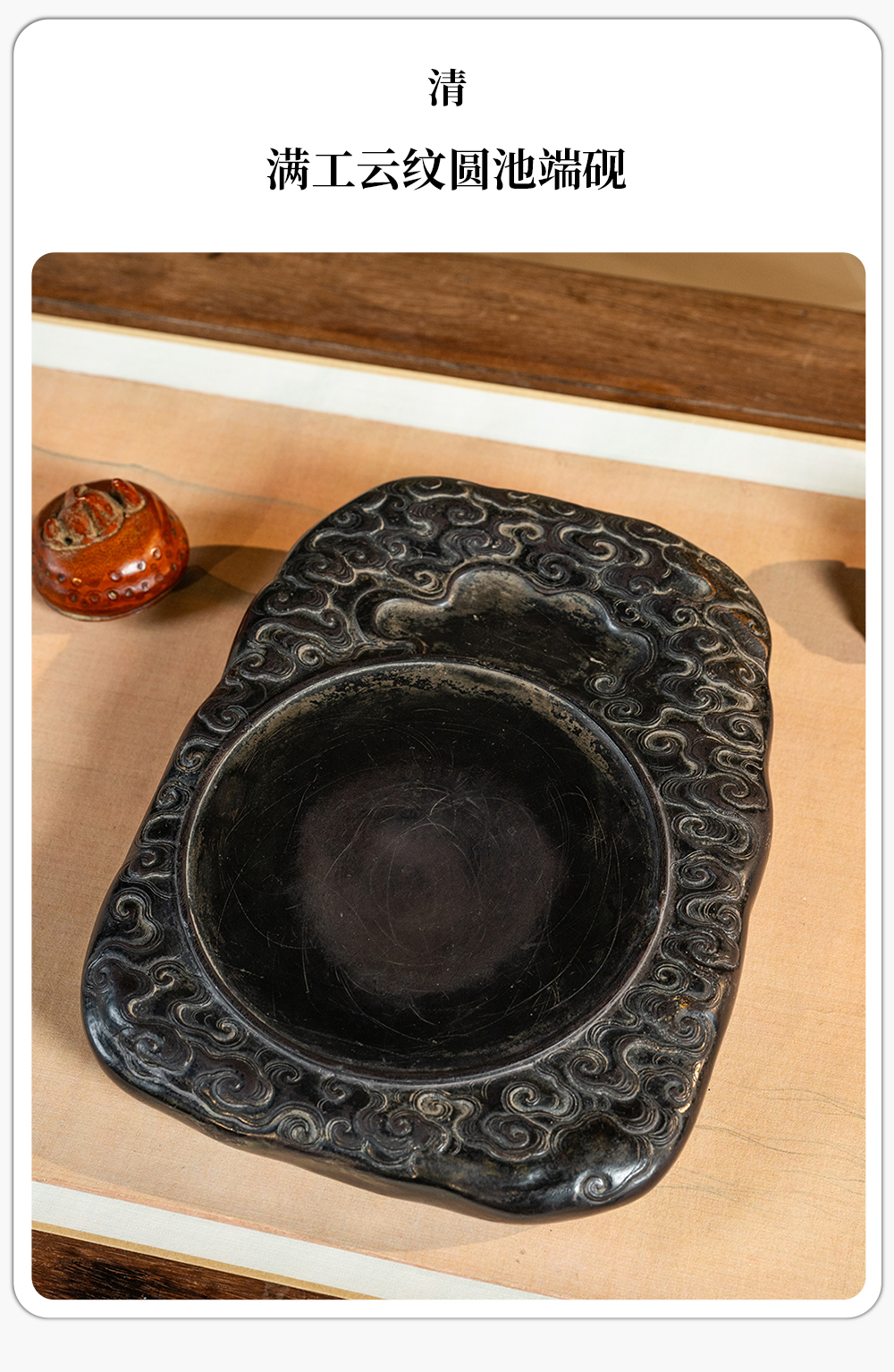 清 满工云纹圆池端砚