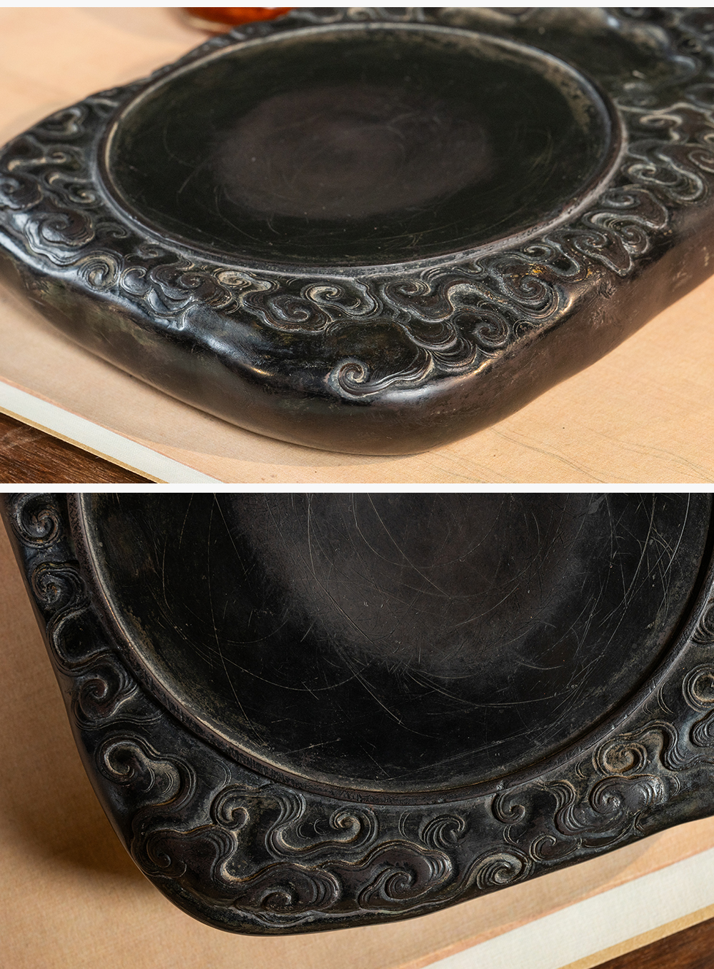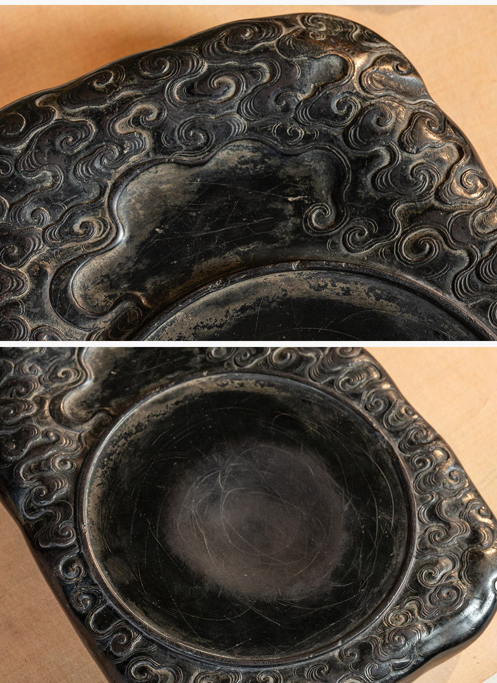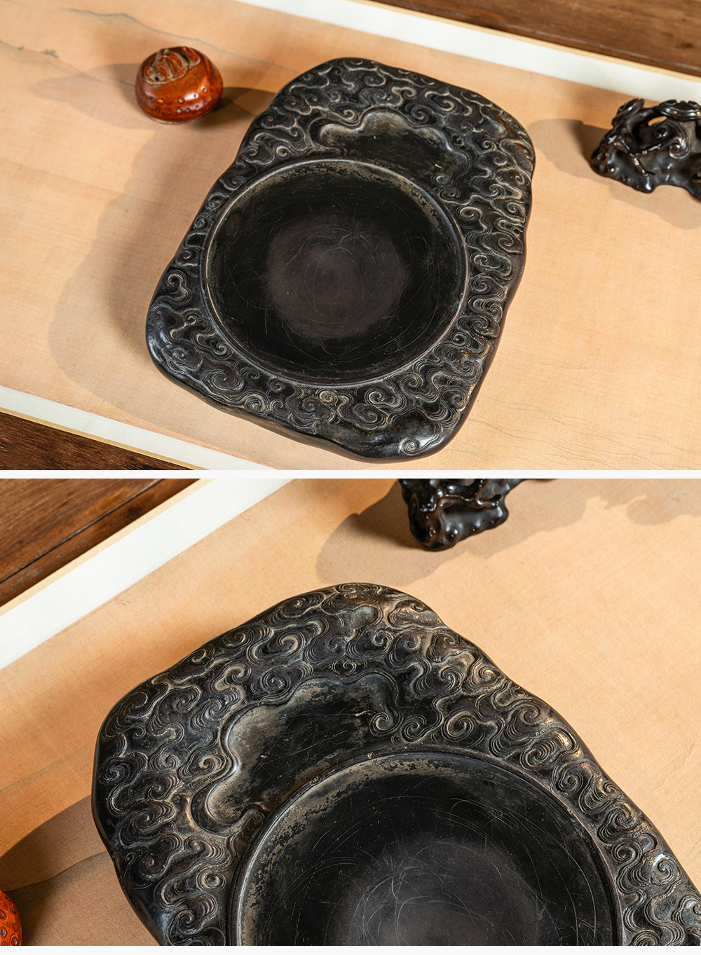 清 满工云纹圆池端砚