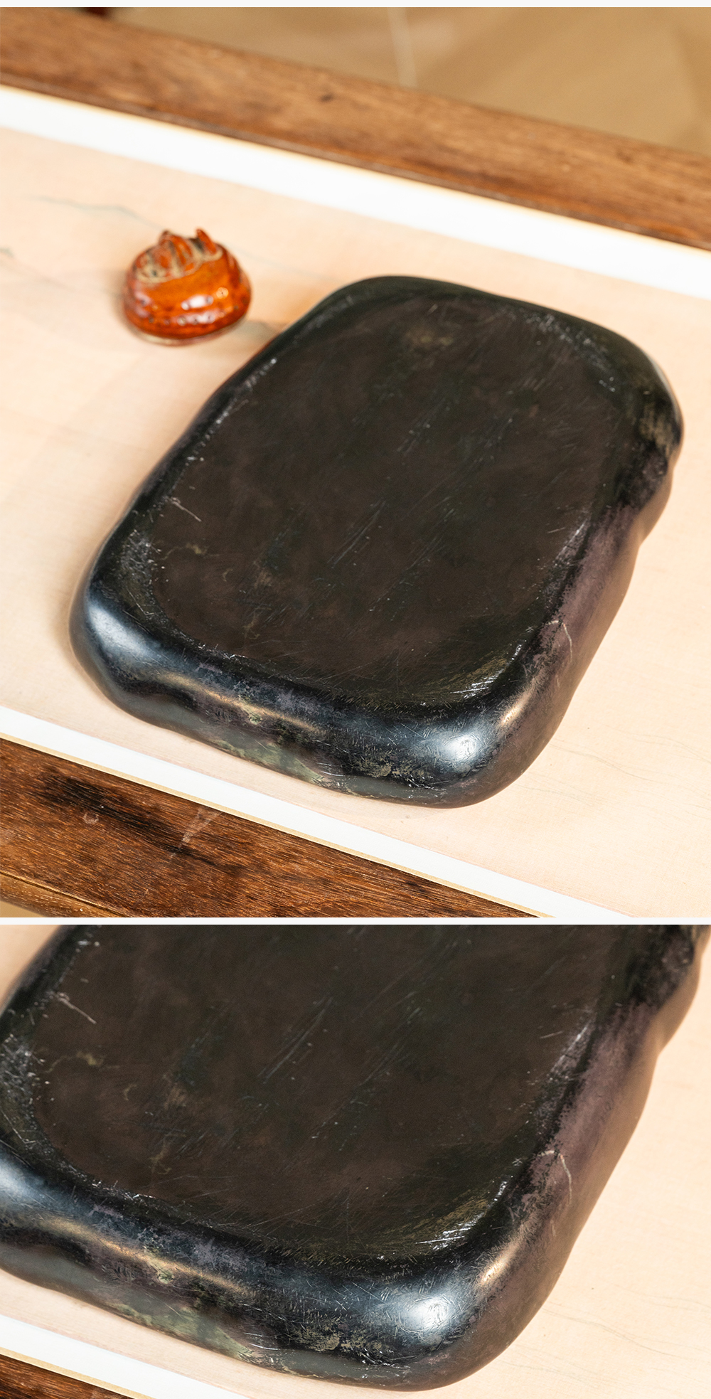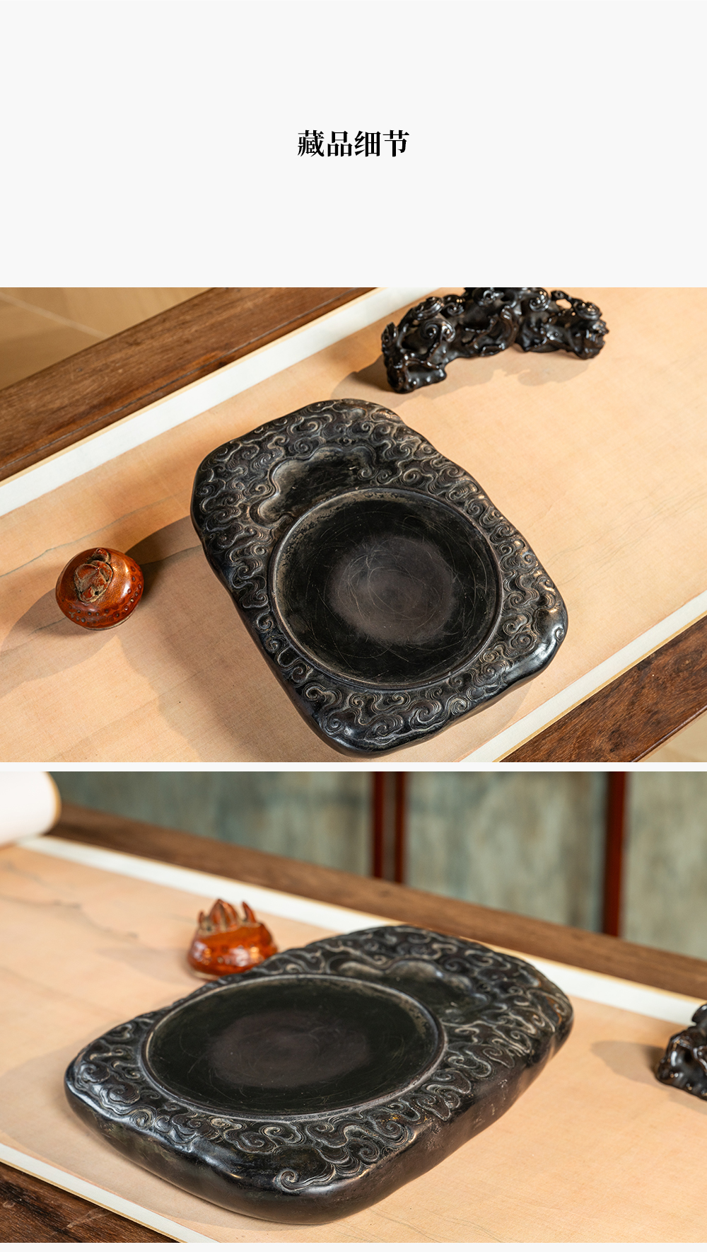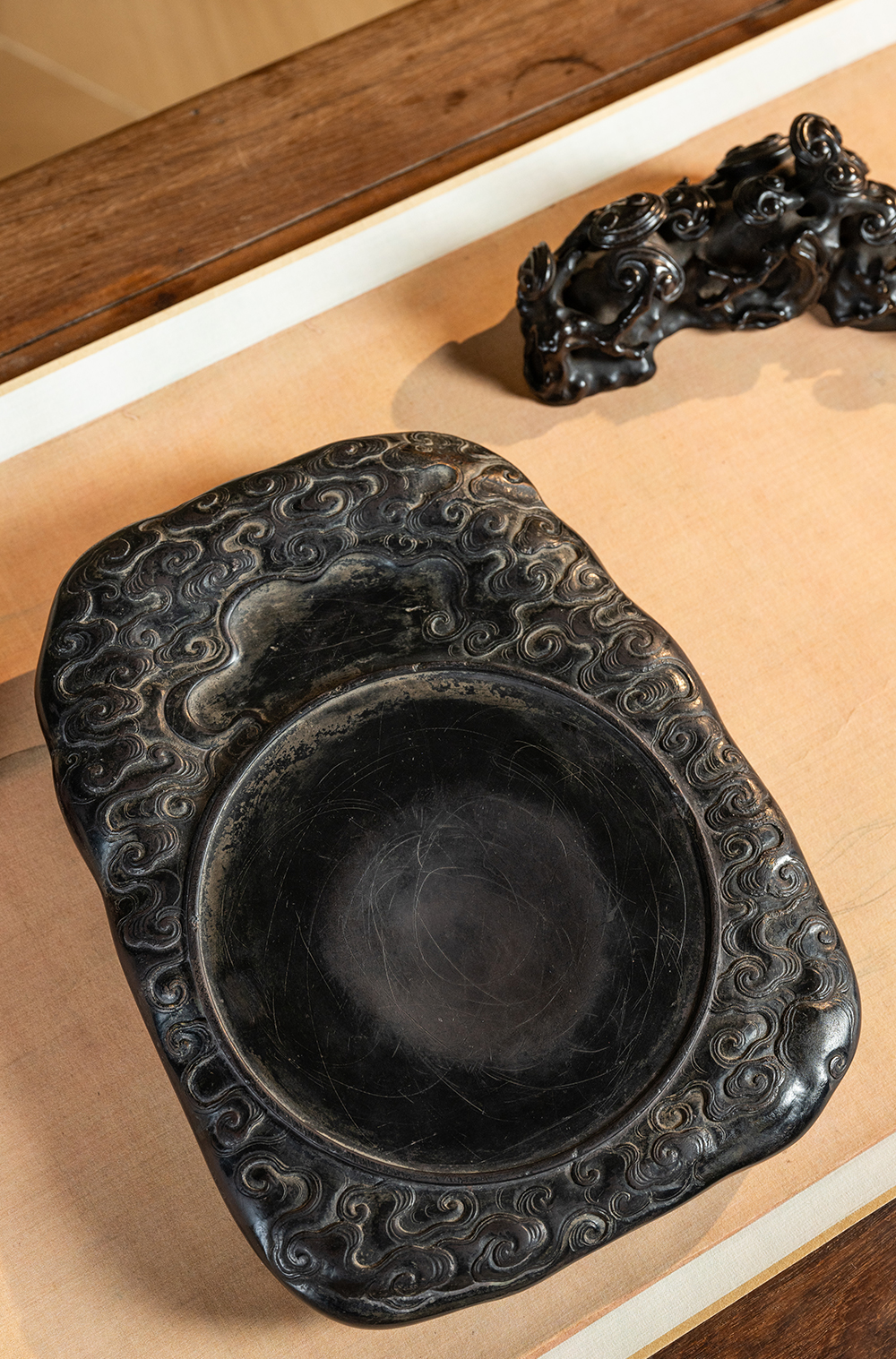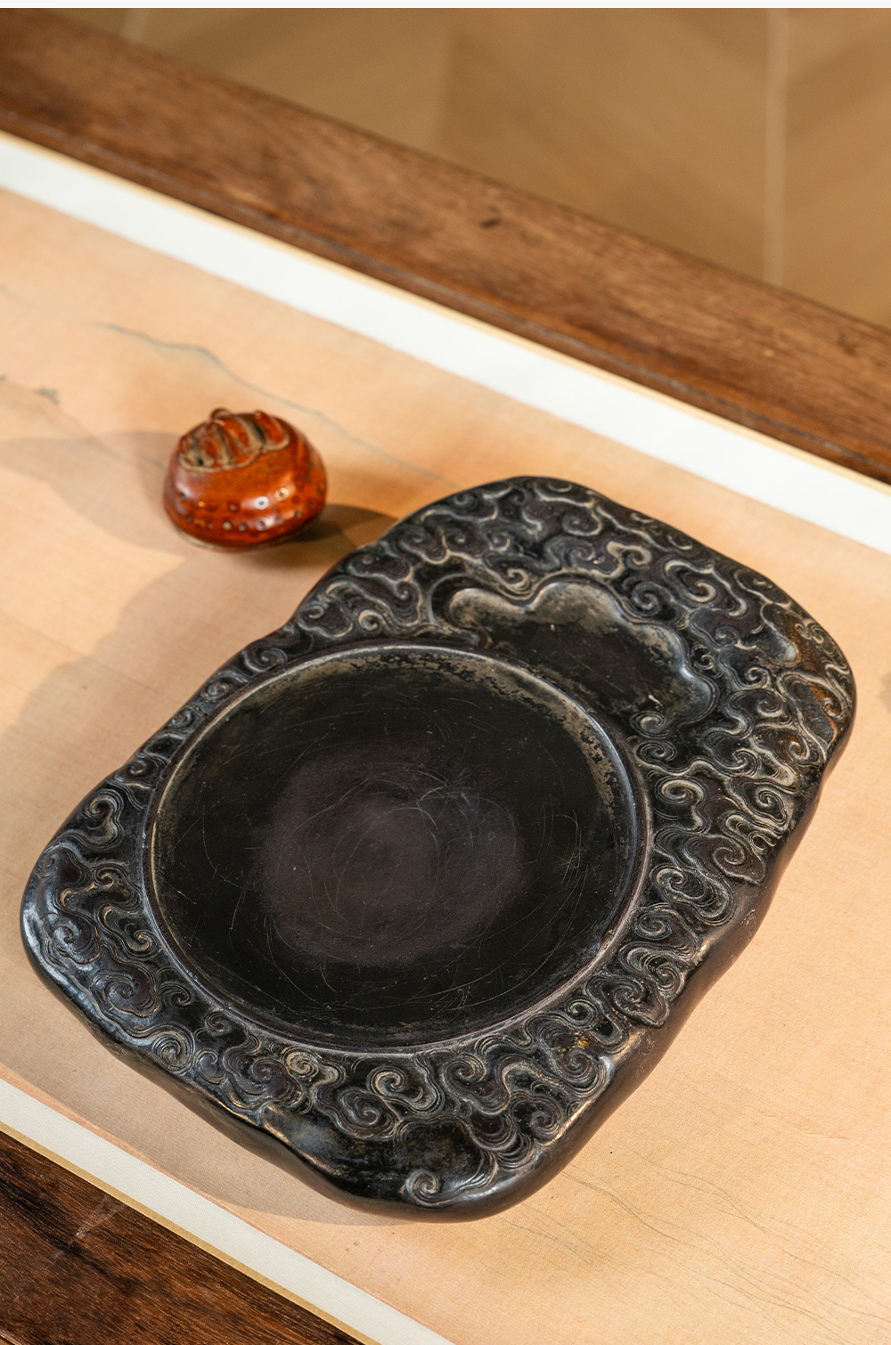 清 满工云纹圆池端砚