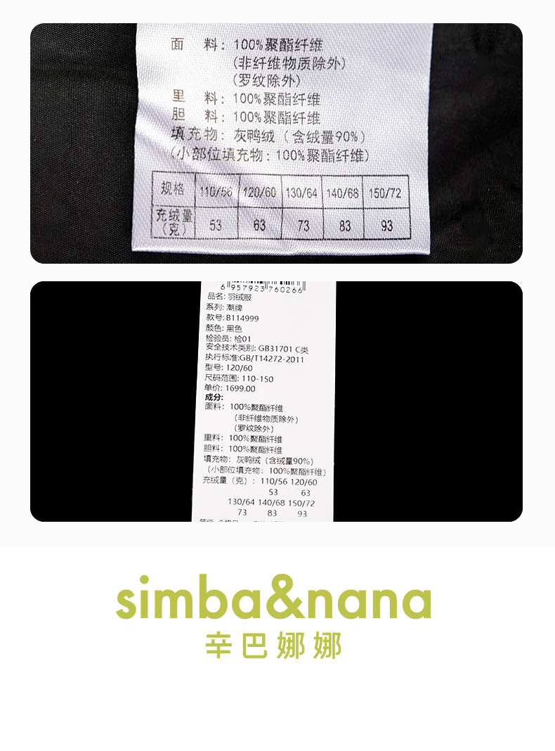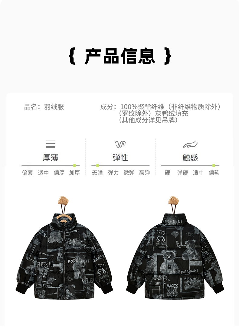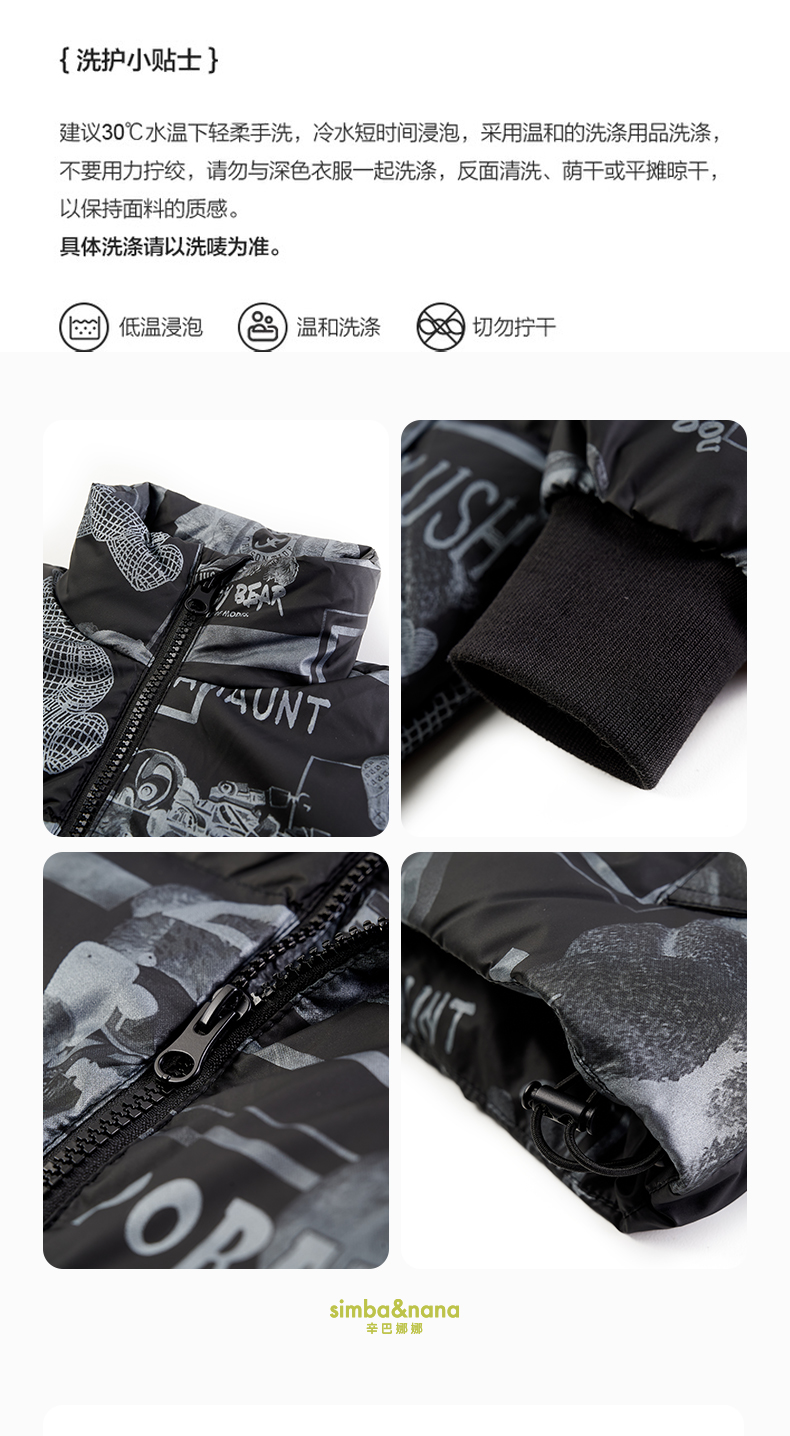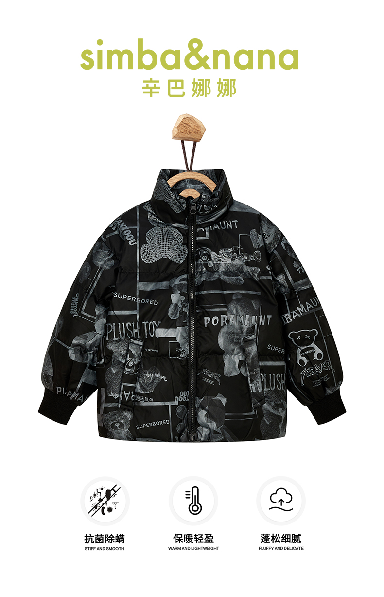 【辛巴娜娜】simbanana【大童】儿童羽绒服短款男童冬季小熊插画可爱风格外套