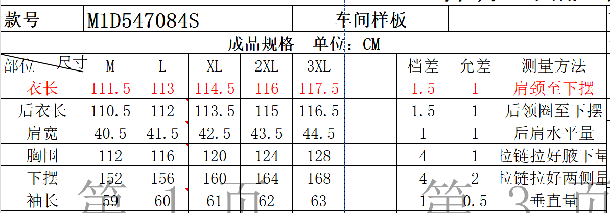 充绒量:M码,290g;L码,300g;XL码,312g;XXL码,322g;XXXL码,332g