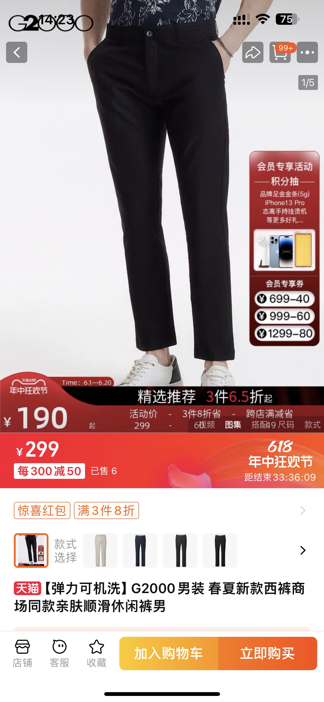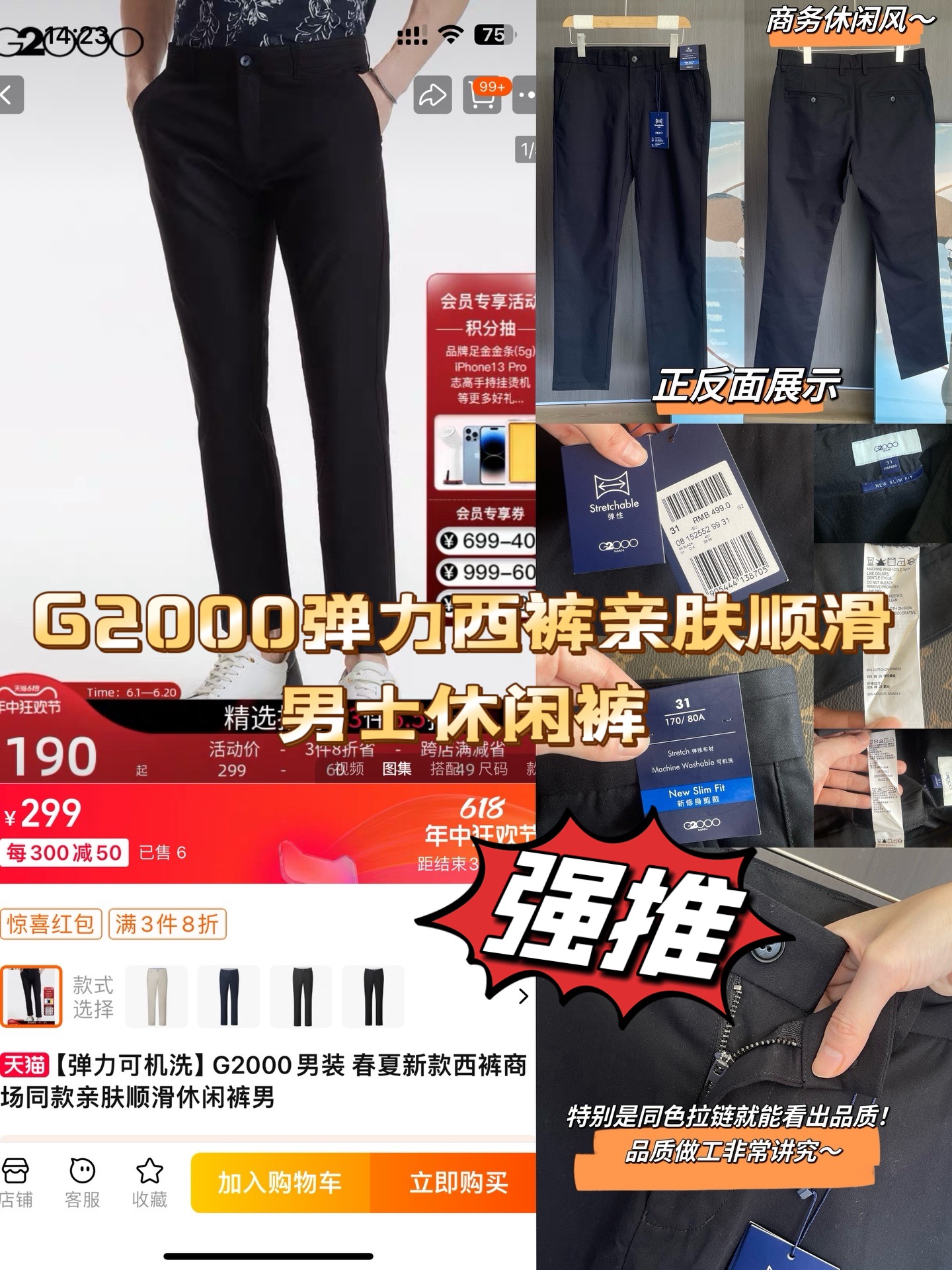 官网在售中【弹力可机洗】G2000男装 春夏新款西裤商场同款亲肤顺滑休闲裤男