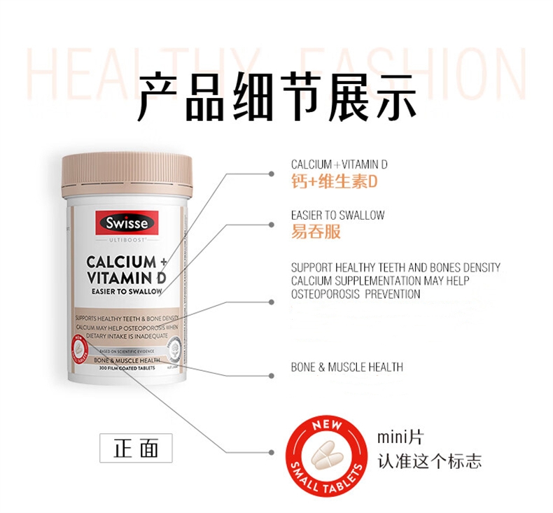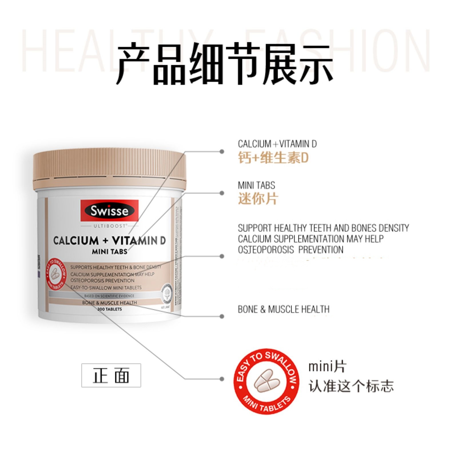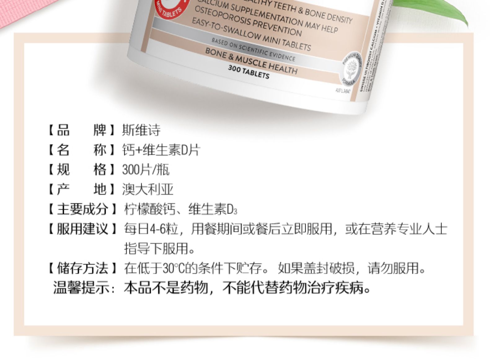 【跨境】澳洲Swisse 斯维诗迷你钙片钙+维生素D(合生元版) 300片(新旧版本随机)成人孕 中老年柠檬酸钙