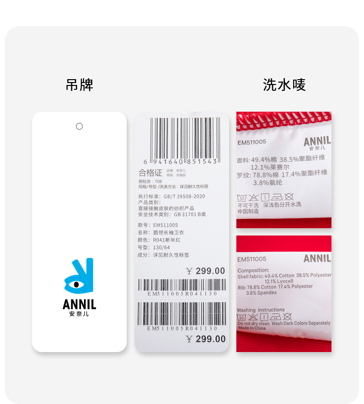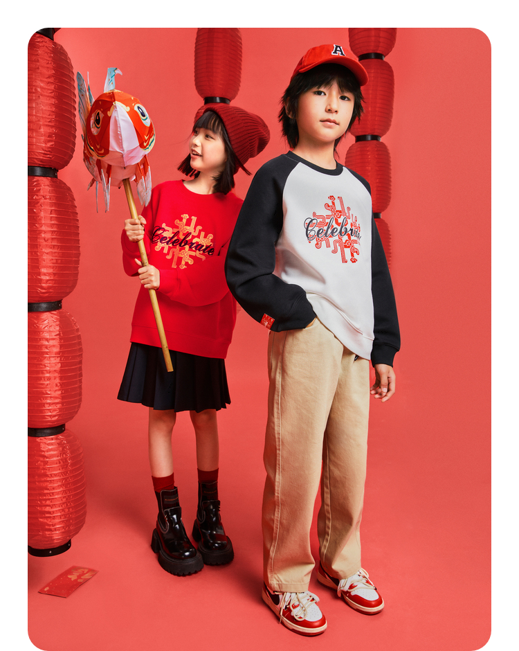 男女童圆领长袖卫衣春季新款安奈儿童装EM511005