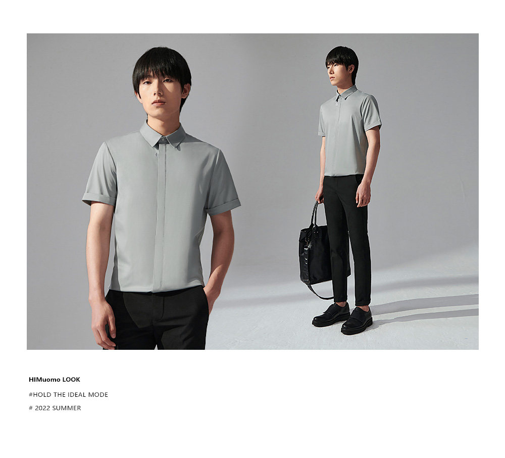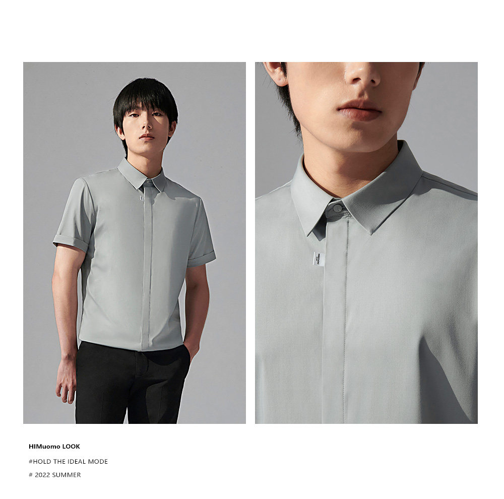 HIM漢崇 舒适斯文正装短袖衬衫男士商务易打理通勤衬衣 2026夏季