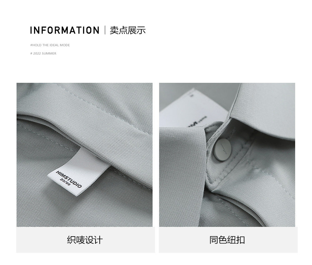 HIM漢崇 抗皱免烫修身正装短袖衬衫男商务通勤蓝色衬衣 2026夏季