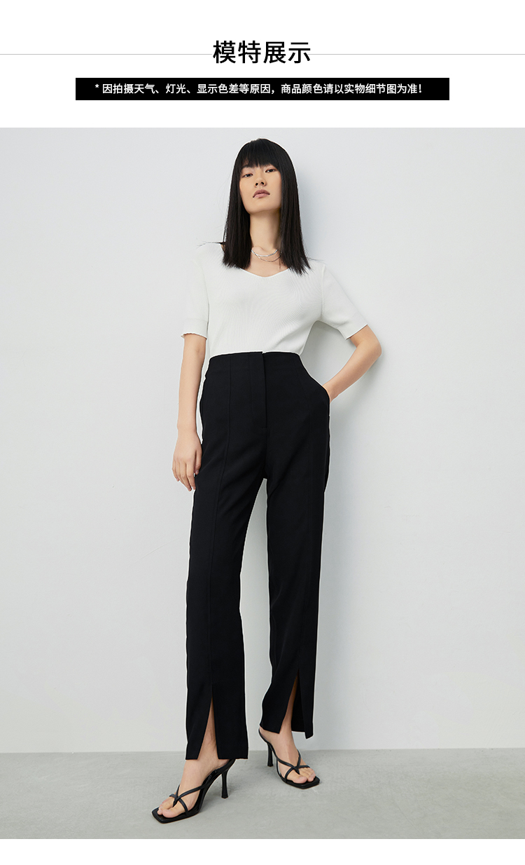 VIMAGE纬漫纪夏新款款时尚修身开叉高腰显瘦女长裤V1505133