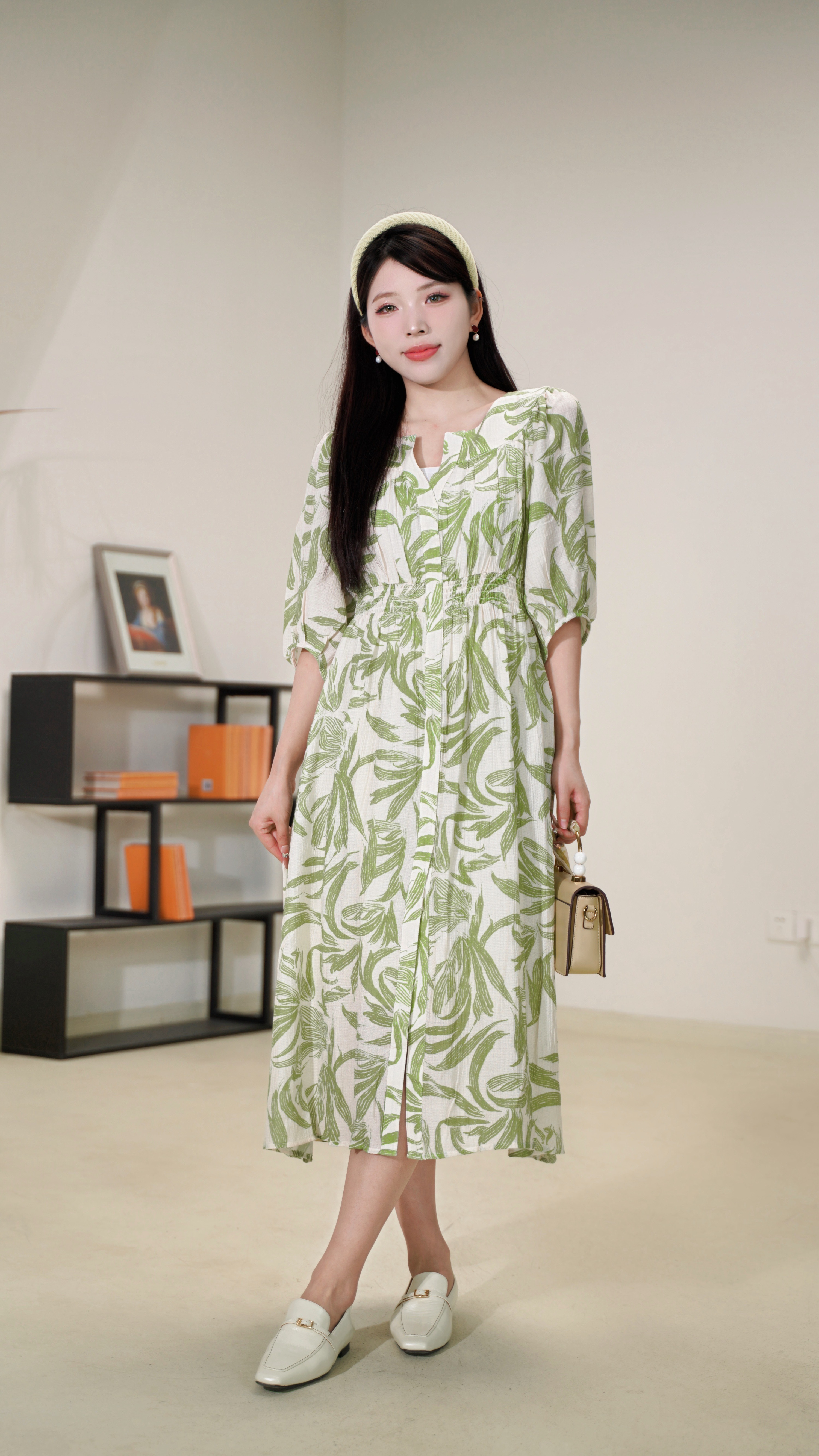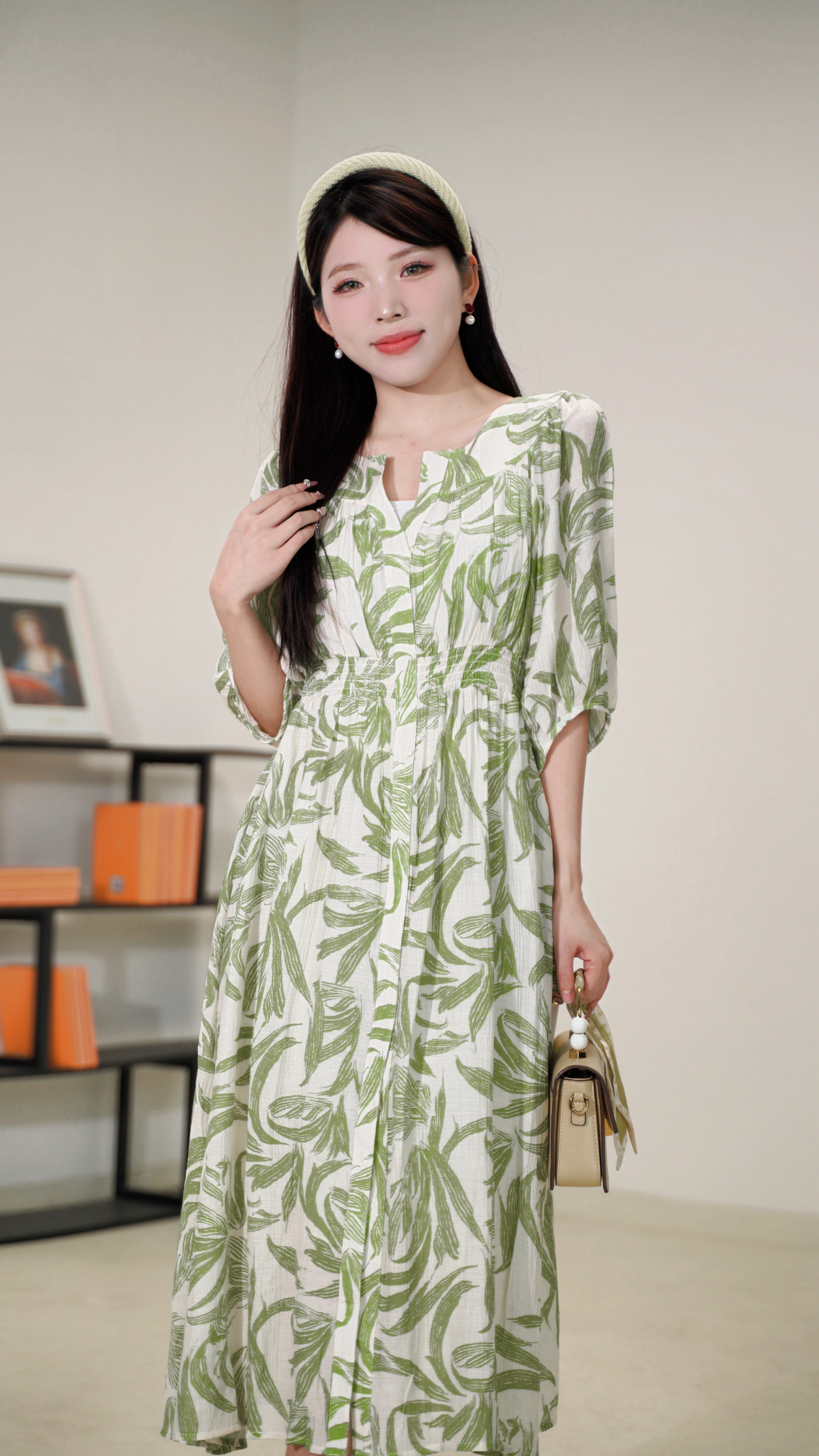 臣禾 【绿野仙踪裙】法式V领显瘦印花连衣裙 JZ251020275