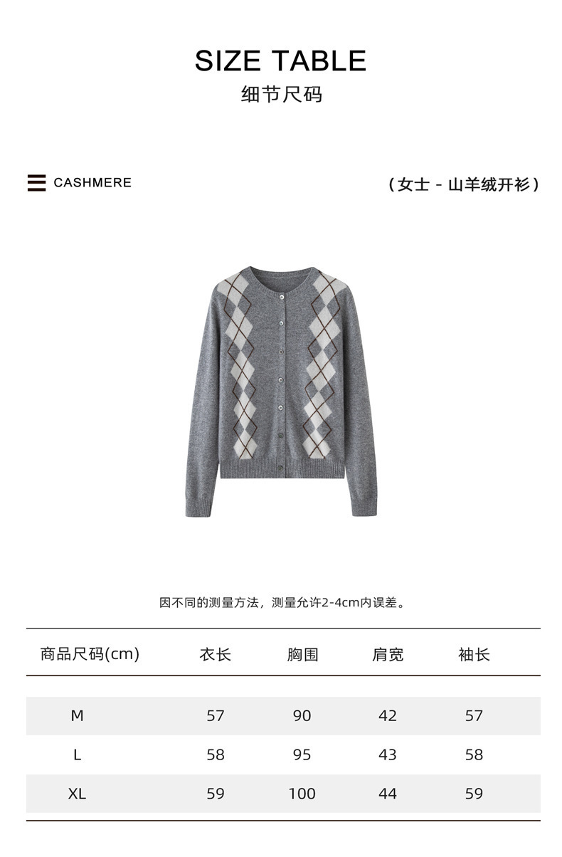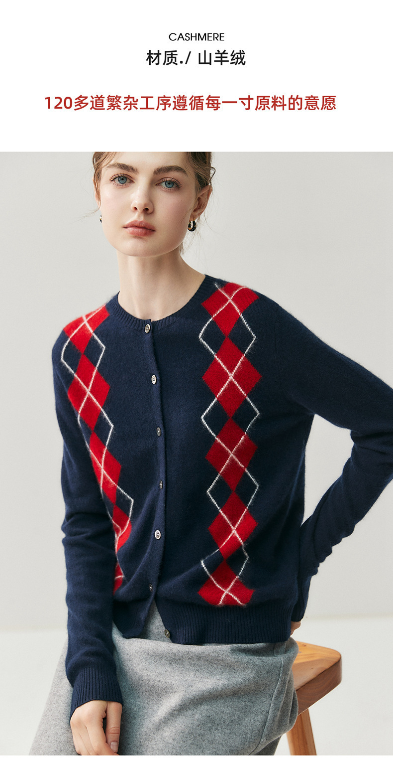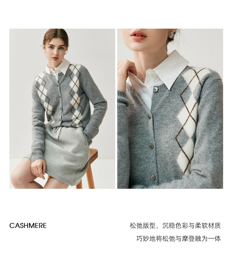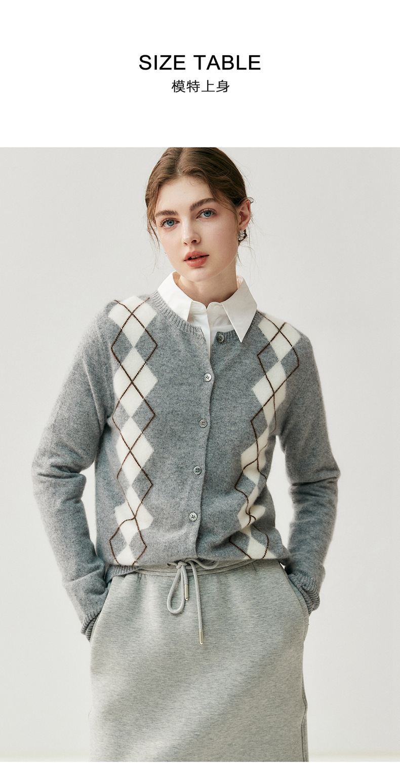 「高货qj」全新升级【铂金会员404/天猫549/差价145】(05832)洛诗琳新款菱格羊绒开衫2025秋冬圆领气质提花长袖毛衣女