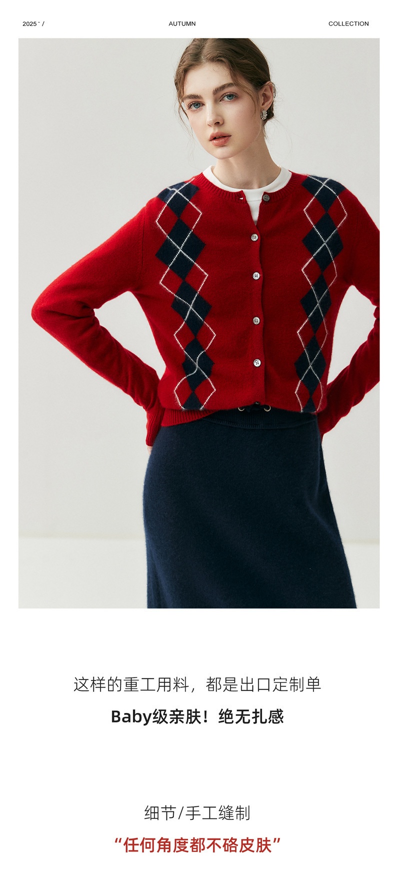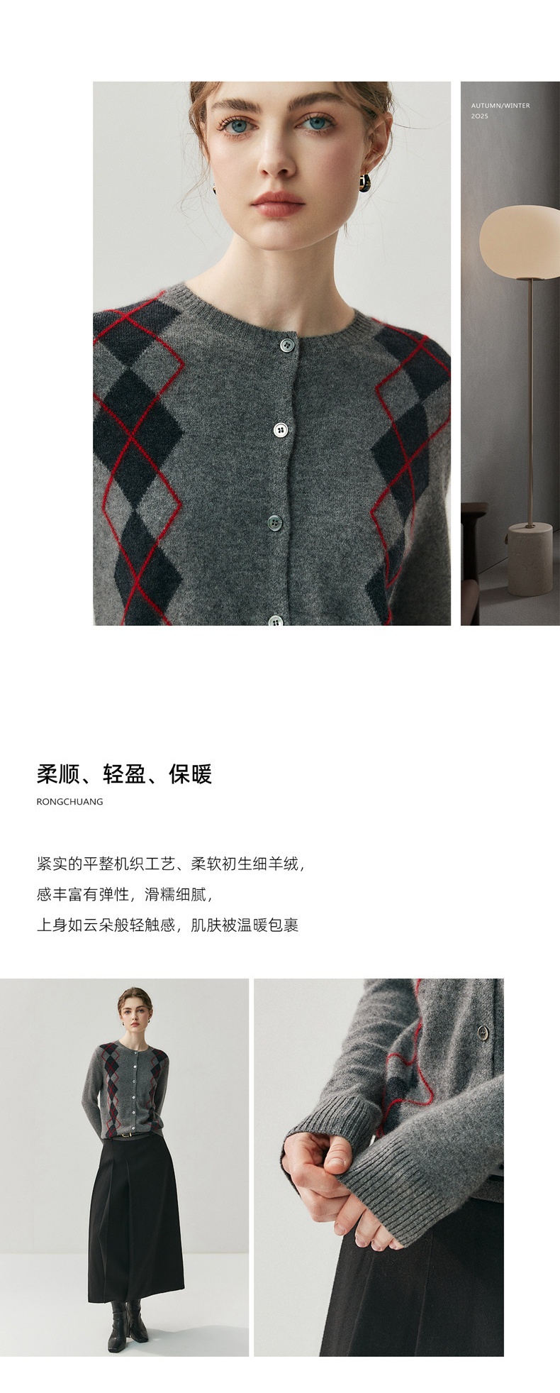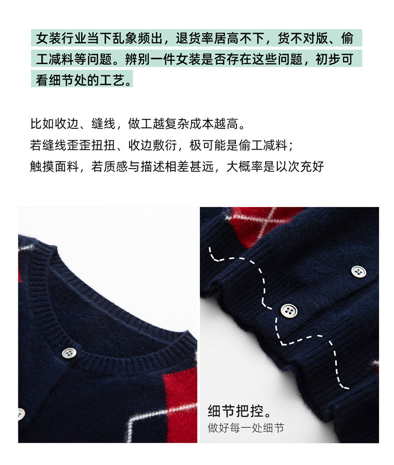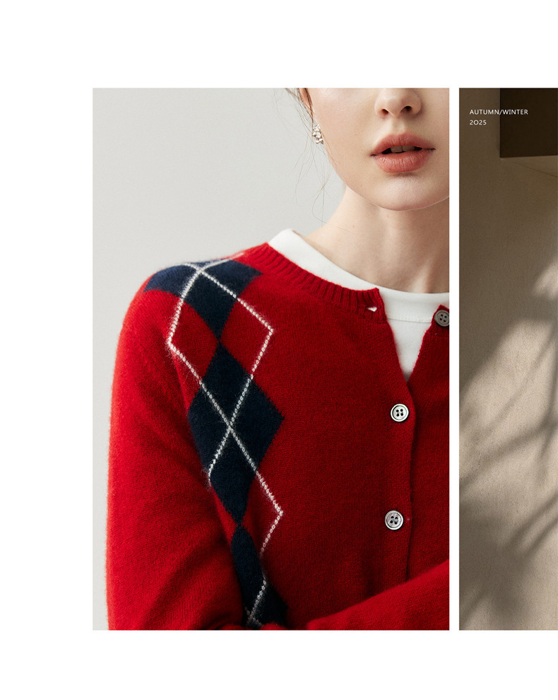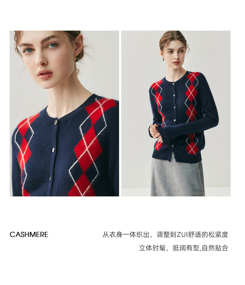 「高货qj」全新升级【铂金会员404/天猫549/差价145】(05832)洛诗琳新款菱格羊绒开衫2025秋冬圆领气质提花长袖毛衣女