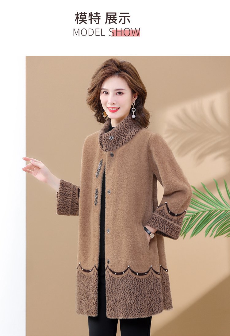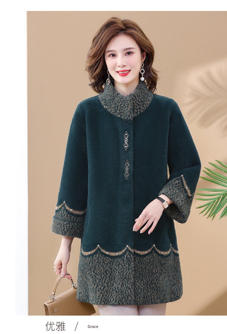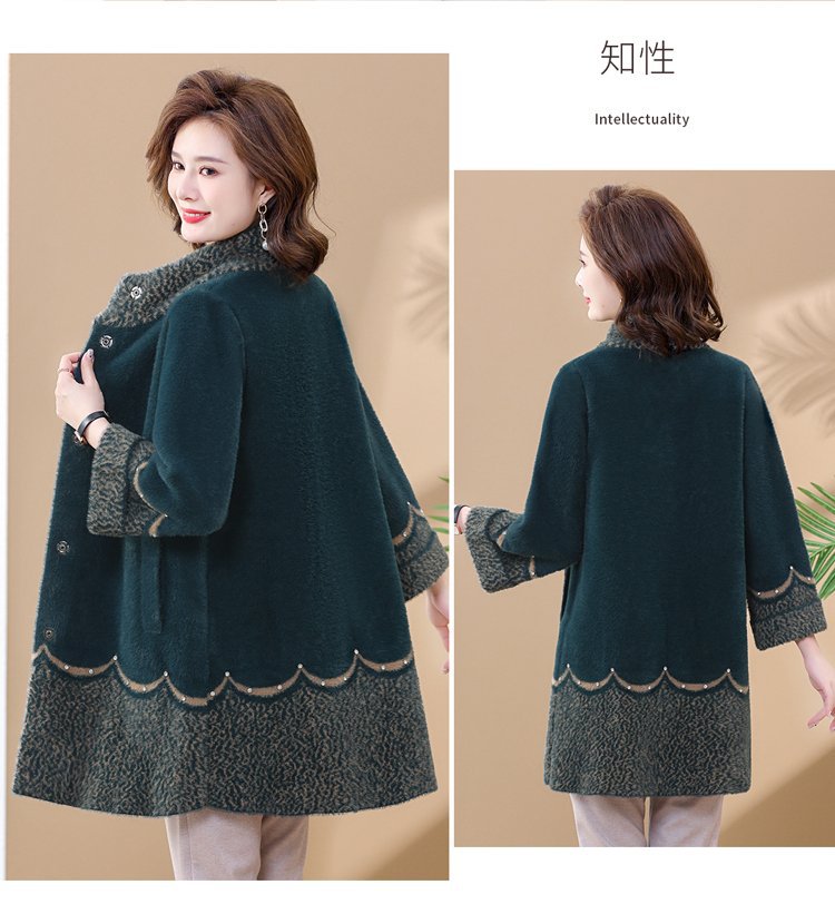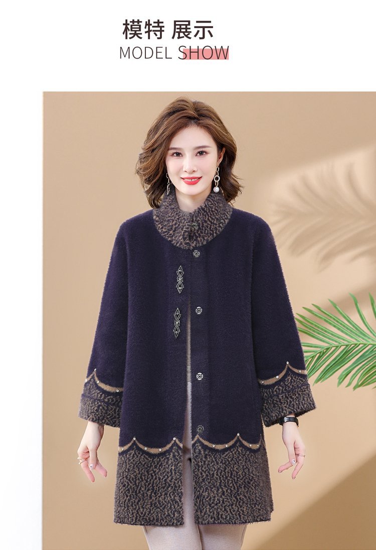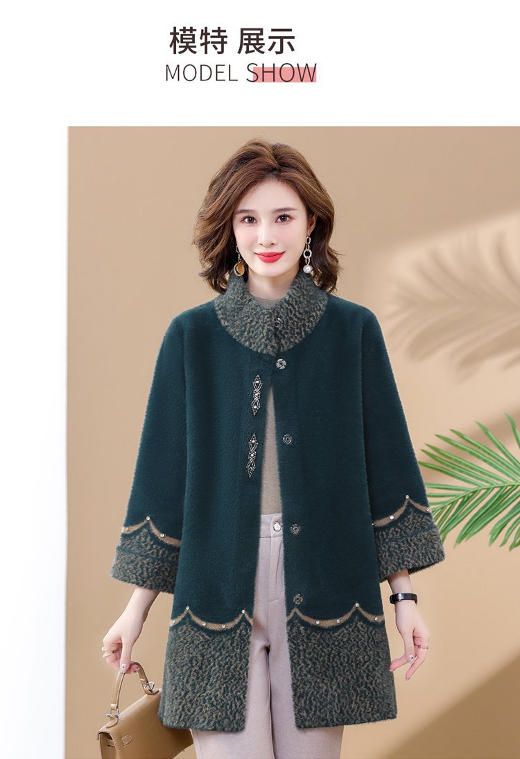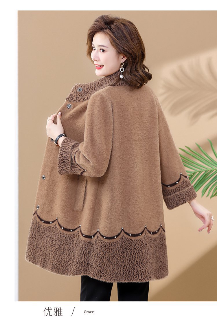 SJG-3359080990 秋冬新款水貂绒洋气立领外套女胖妈妈加大码中长款毛呢大衣