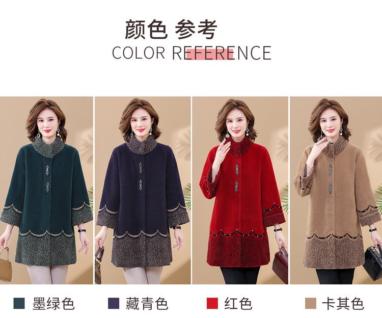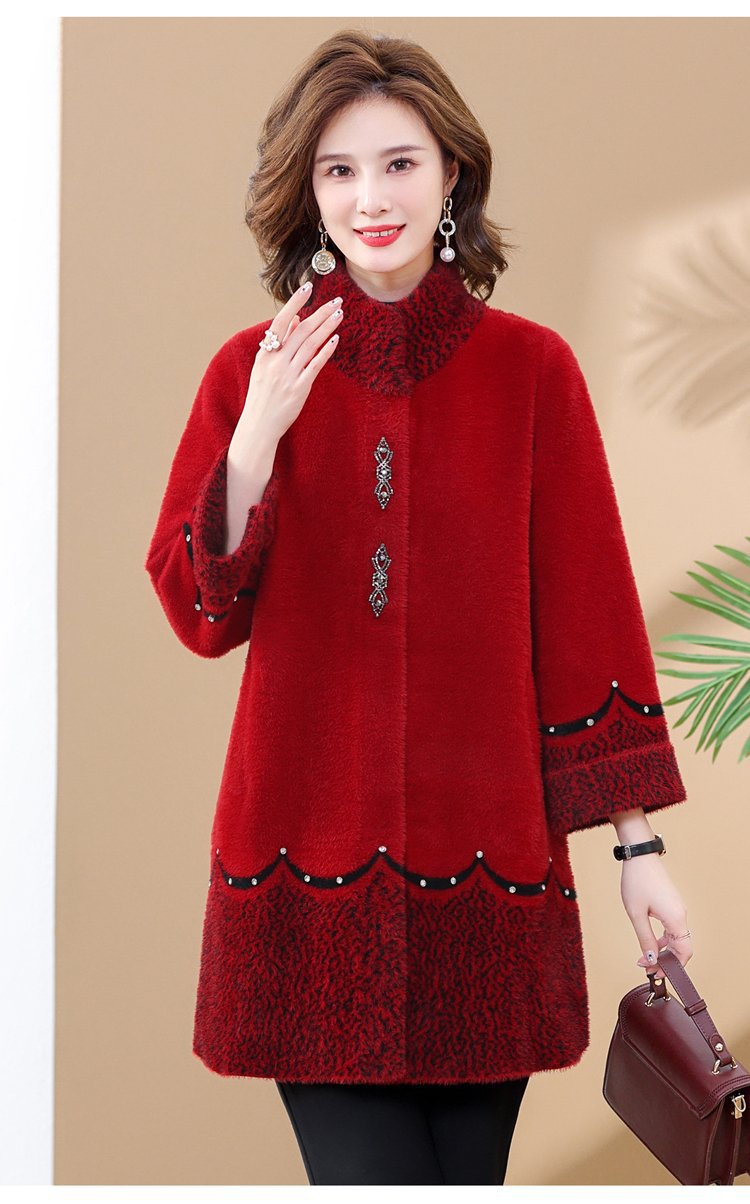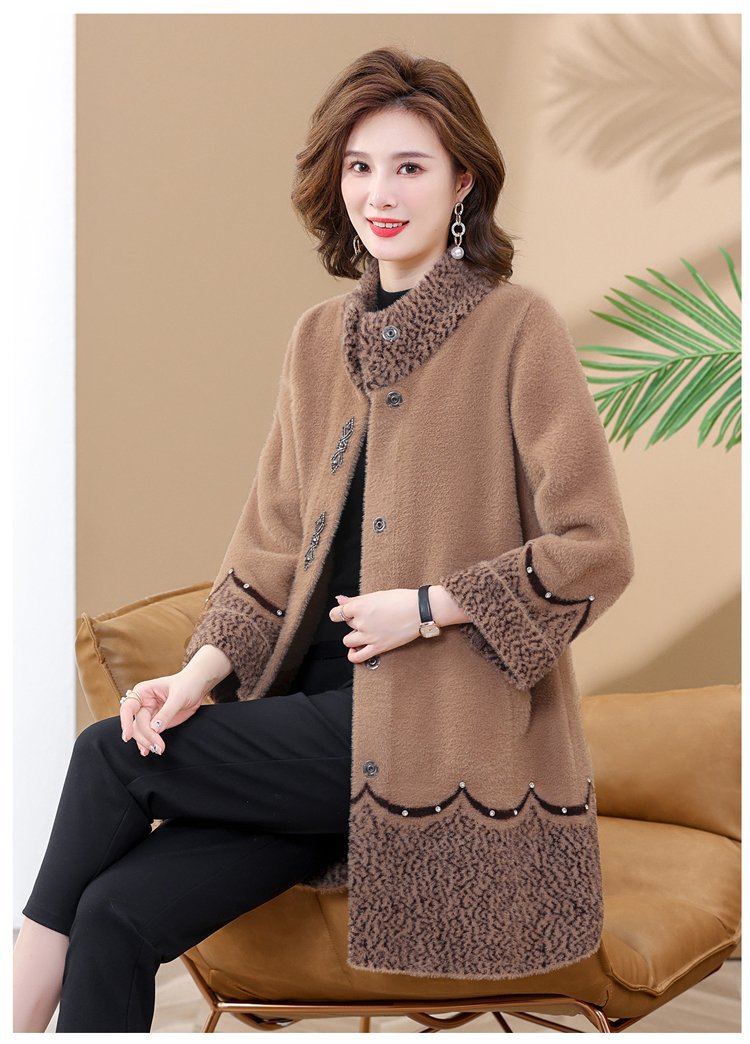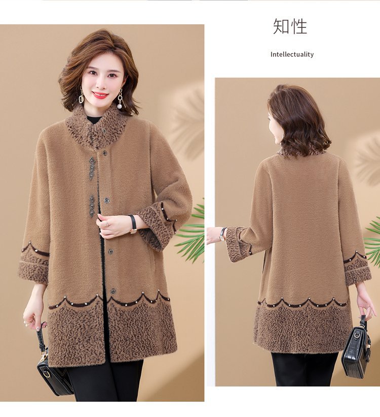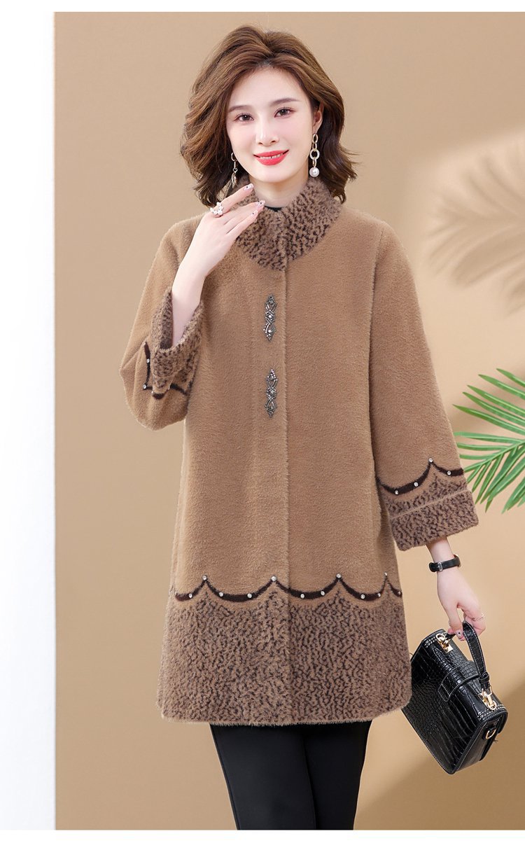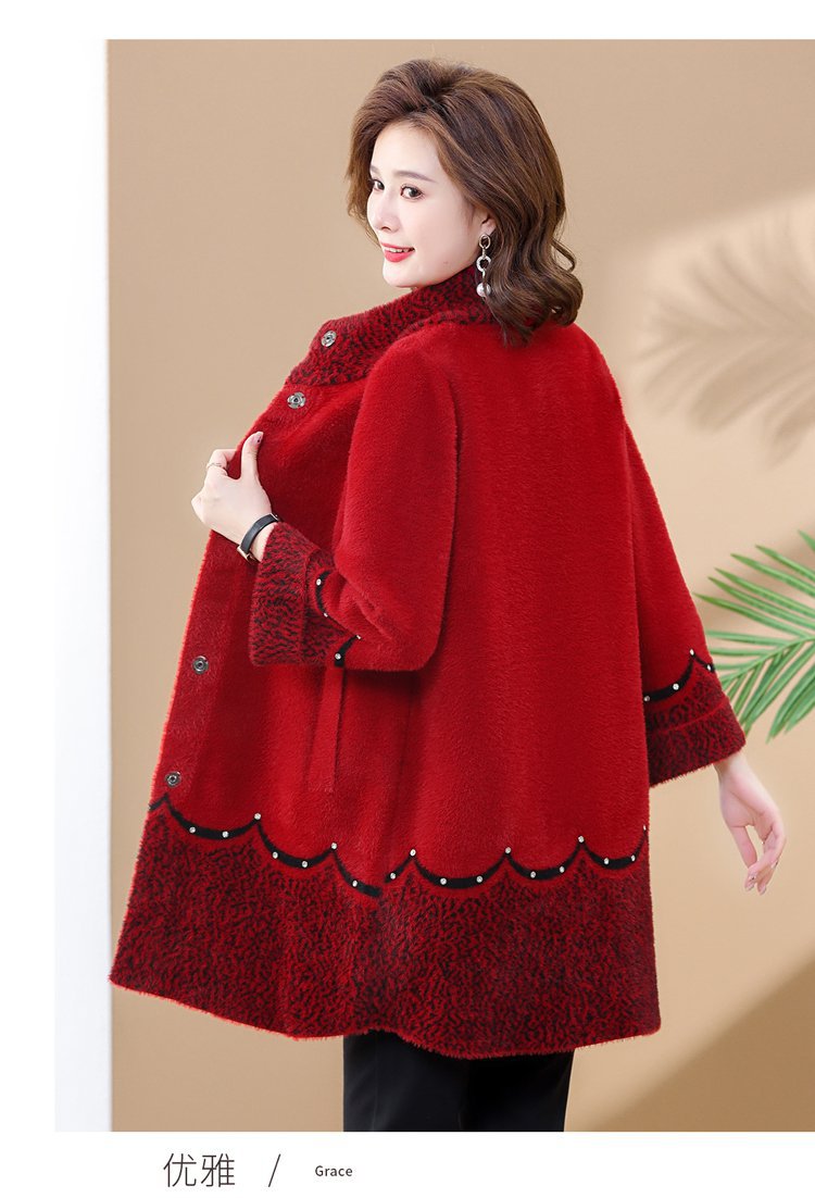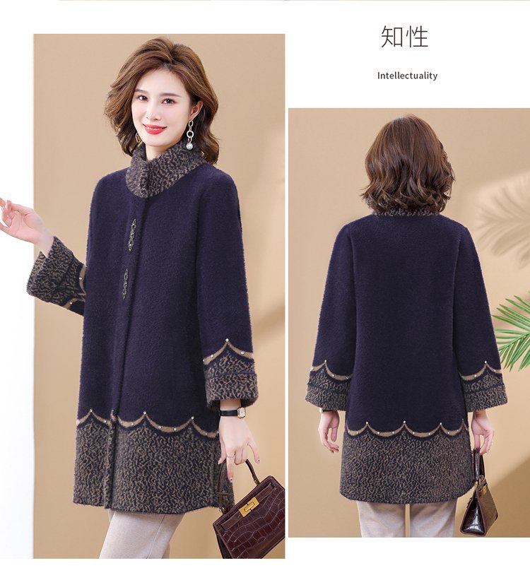 SJG-3359080990 秋冬新款水貂绒洋气立领外套女胖妈妈加大码中长款毛呢大衣
