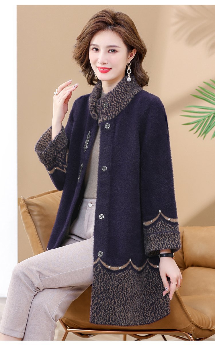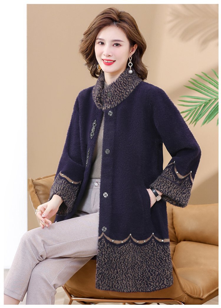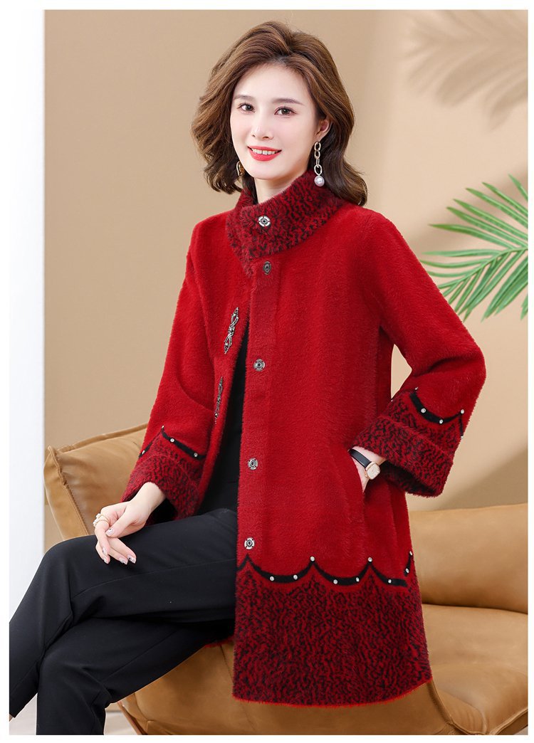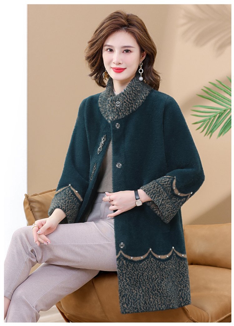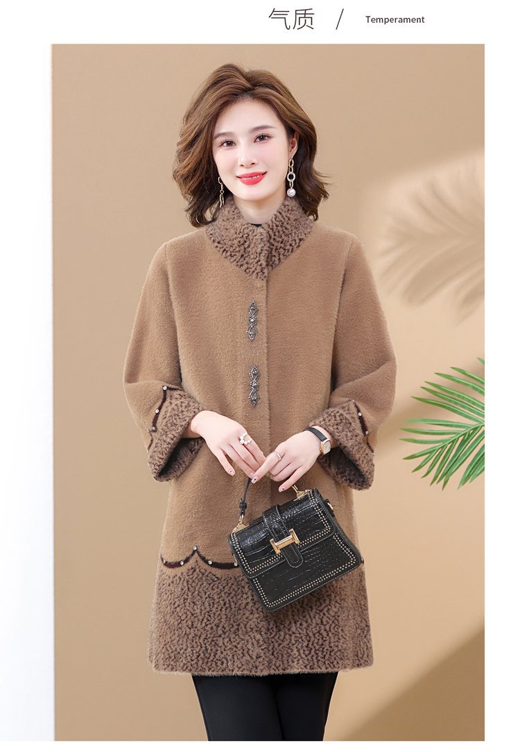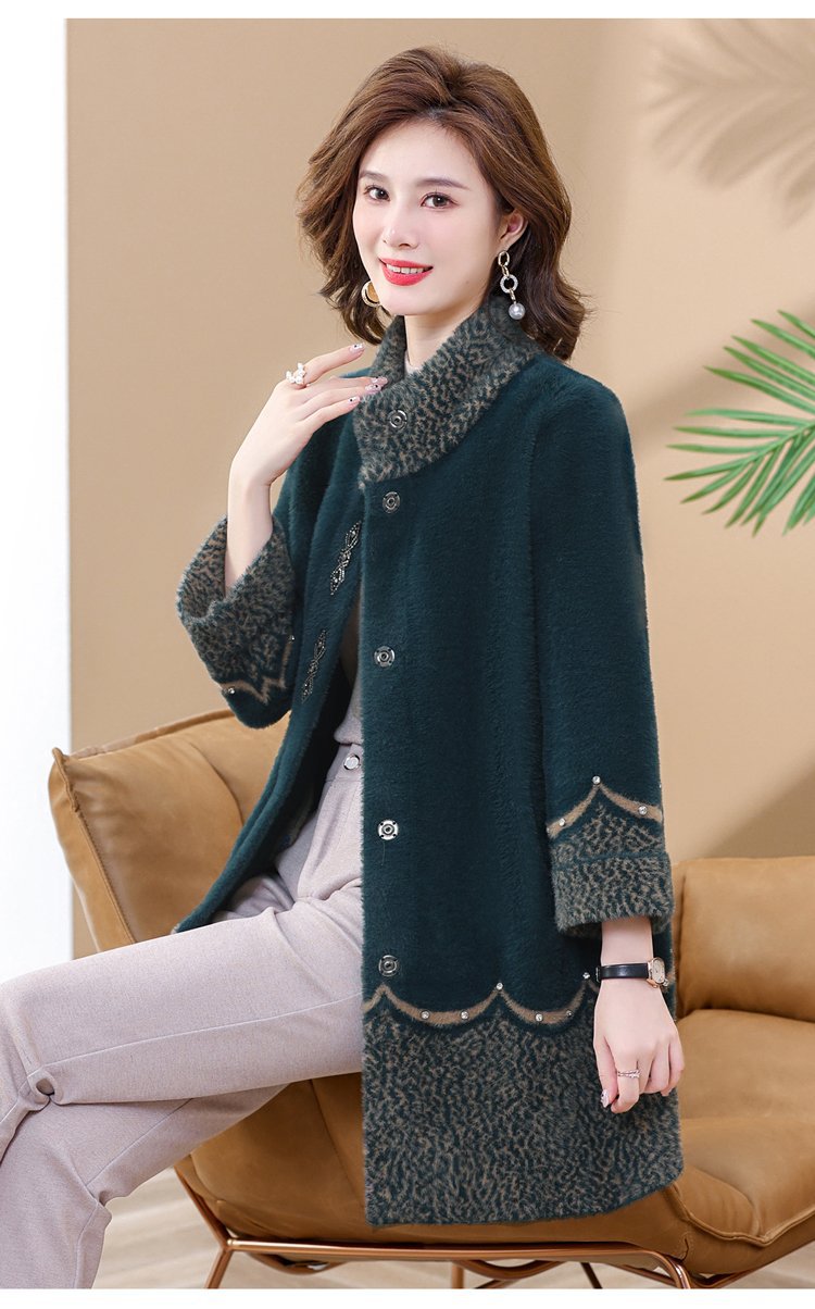 SJG-3359080990 秋冬新款水貂绒洋气立领外套女胖妈妈加大码中长款毛呢大衣