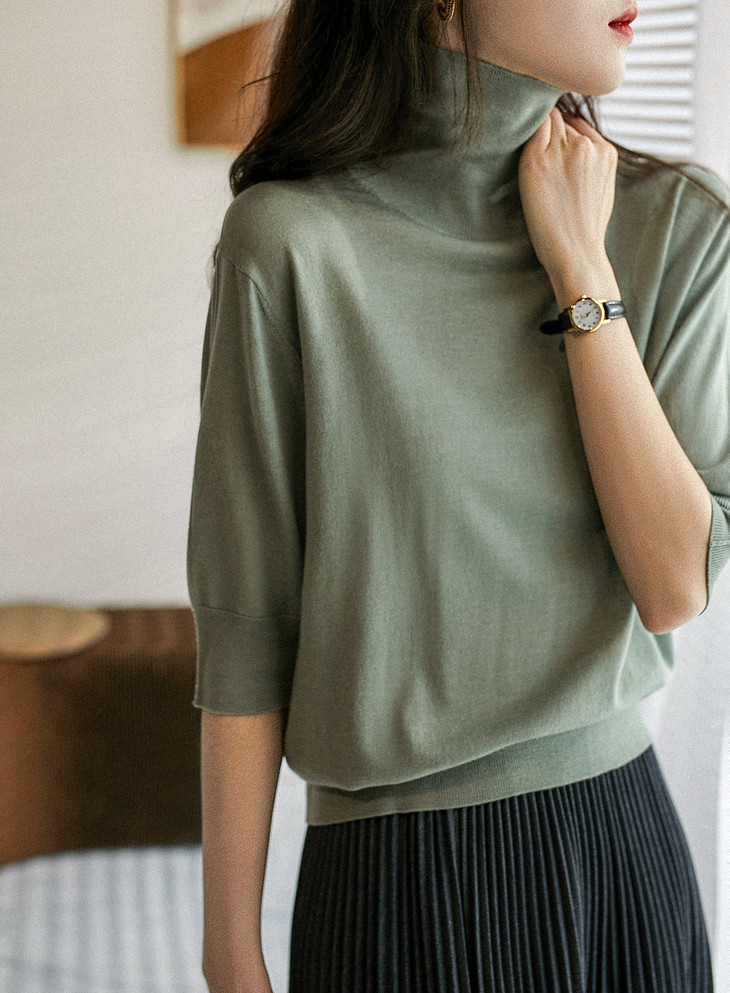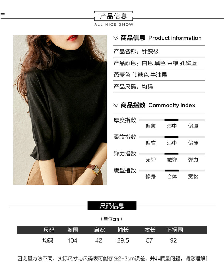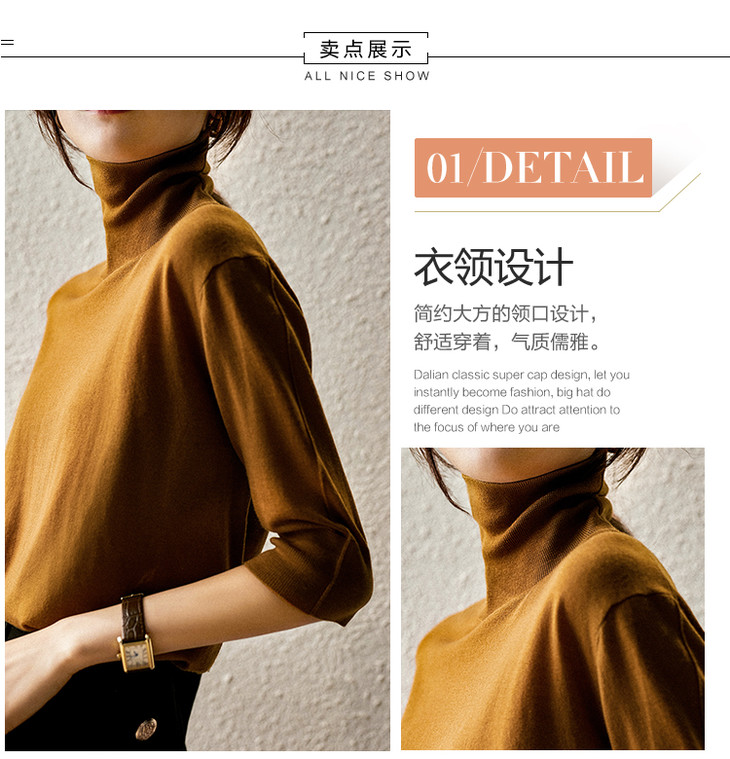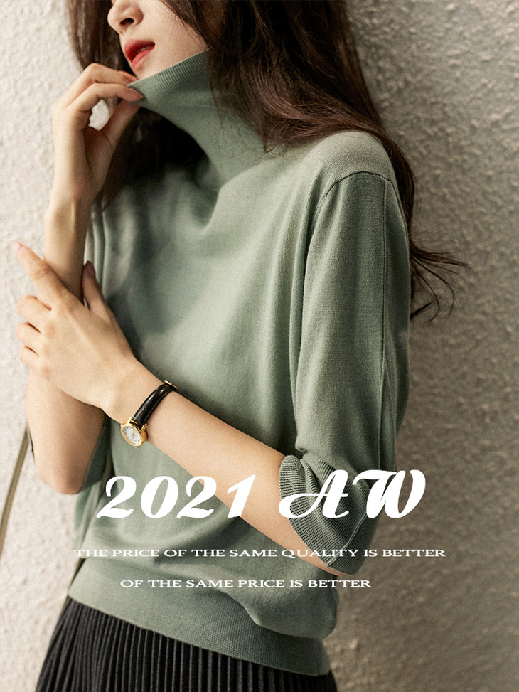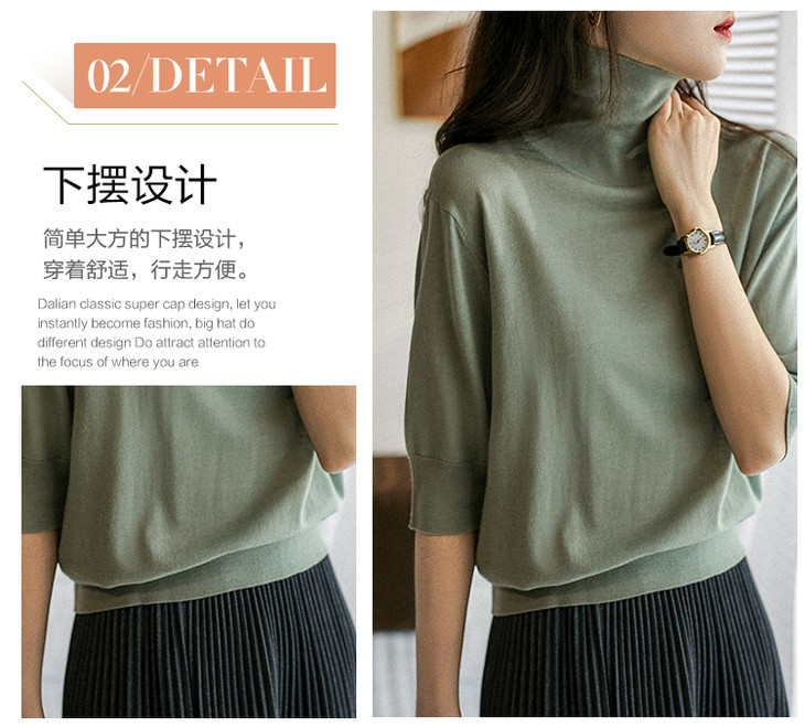 JH8817 簰打底德国120sOTW®技术五分袖高领针织衫