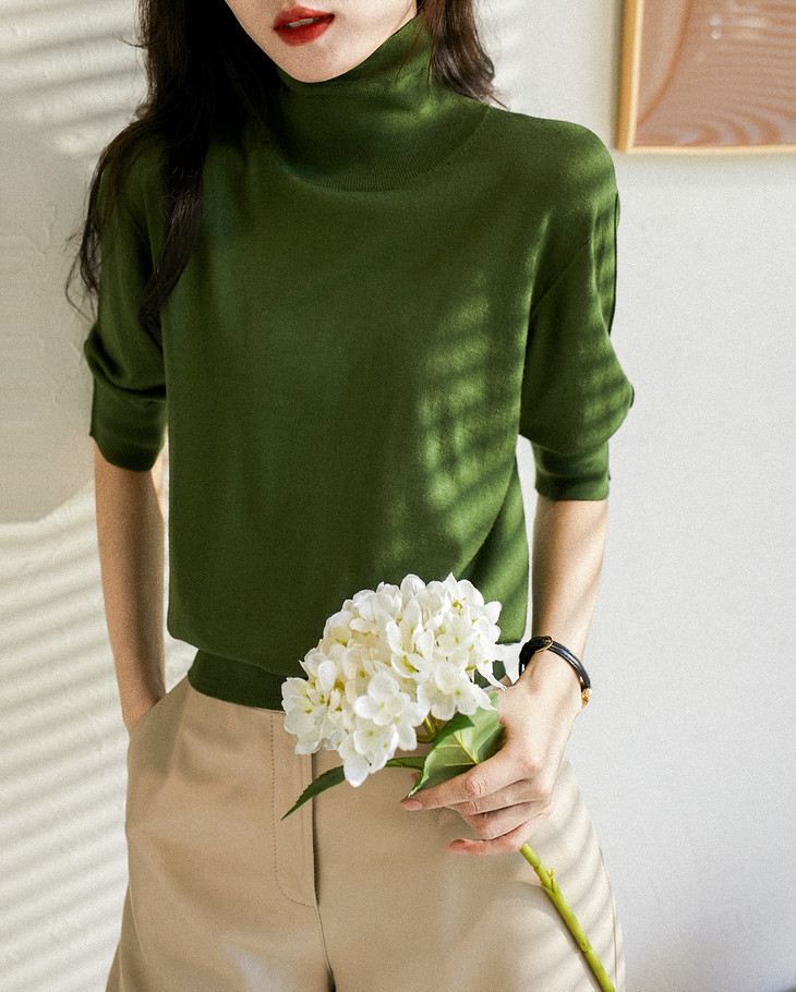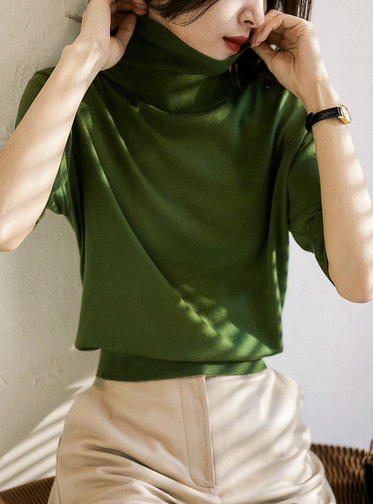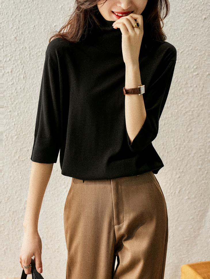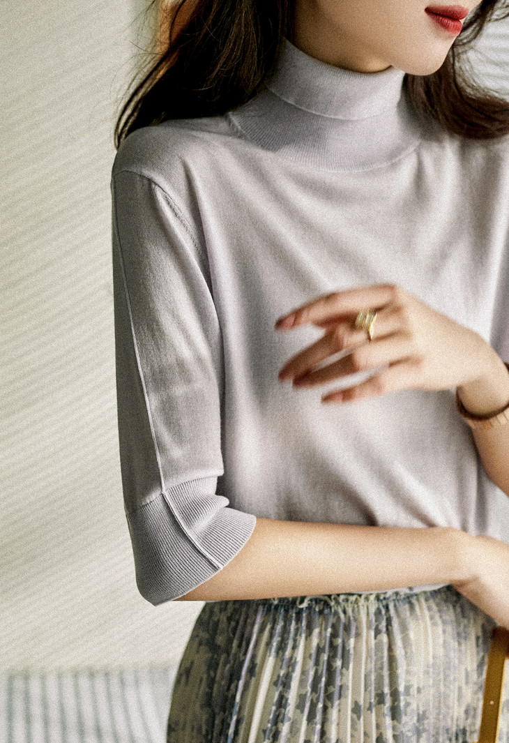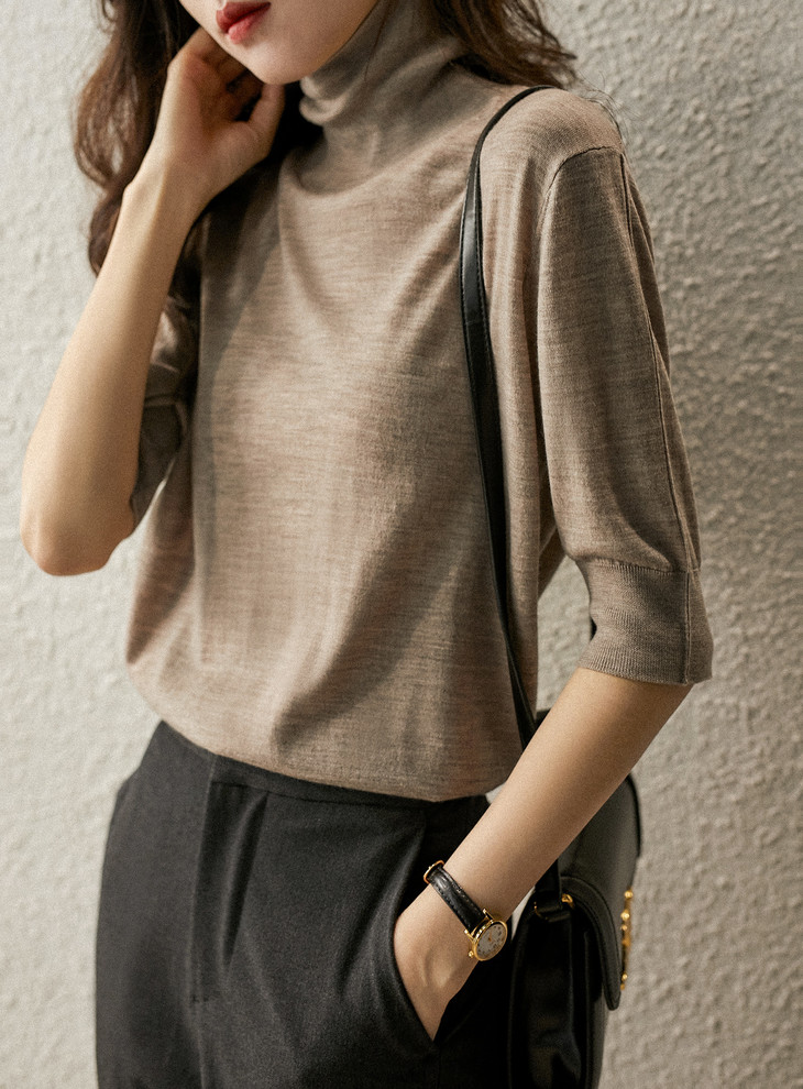 JH8817 簰打底德国120sOTW®技术五分袖高领针织衫