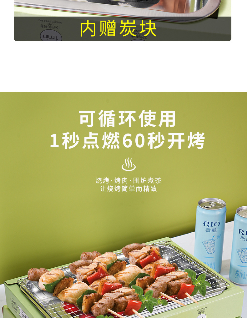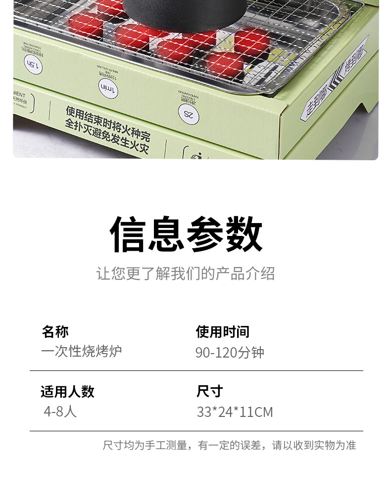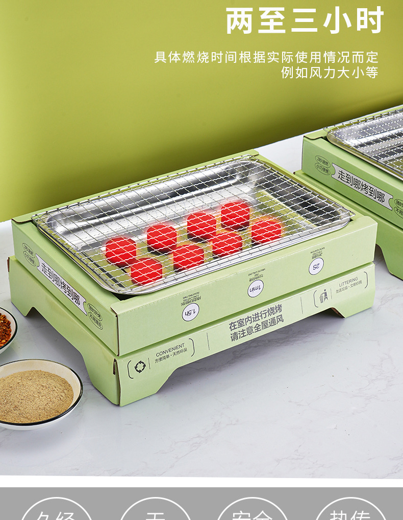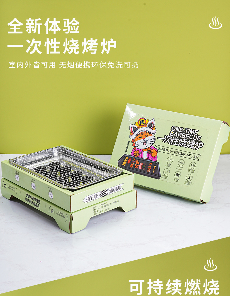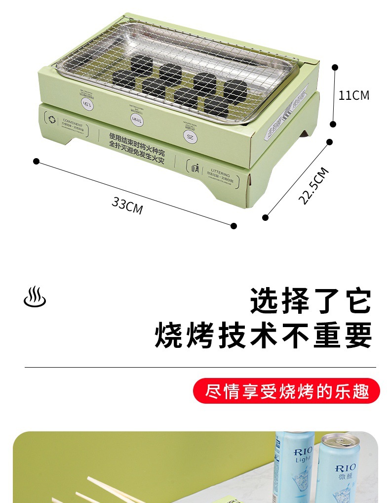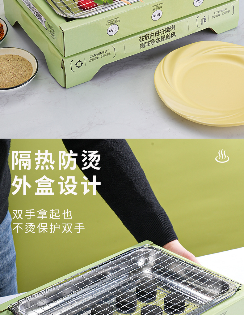 【免清洗!易携带】一次性烧烤炉烤架野餐炉具户外便携家用小型果木炭无烟烤肉架套装。xb