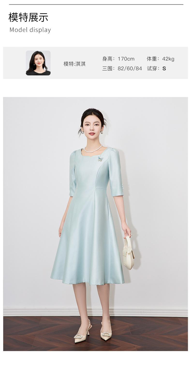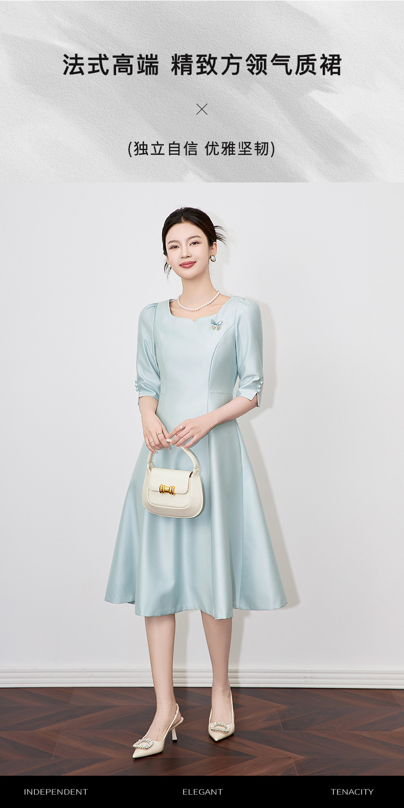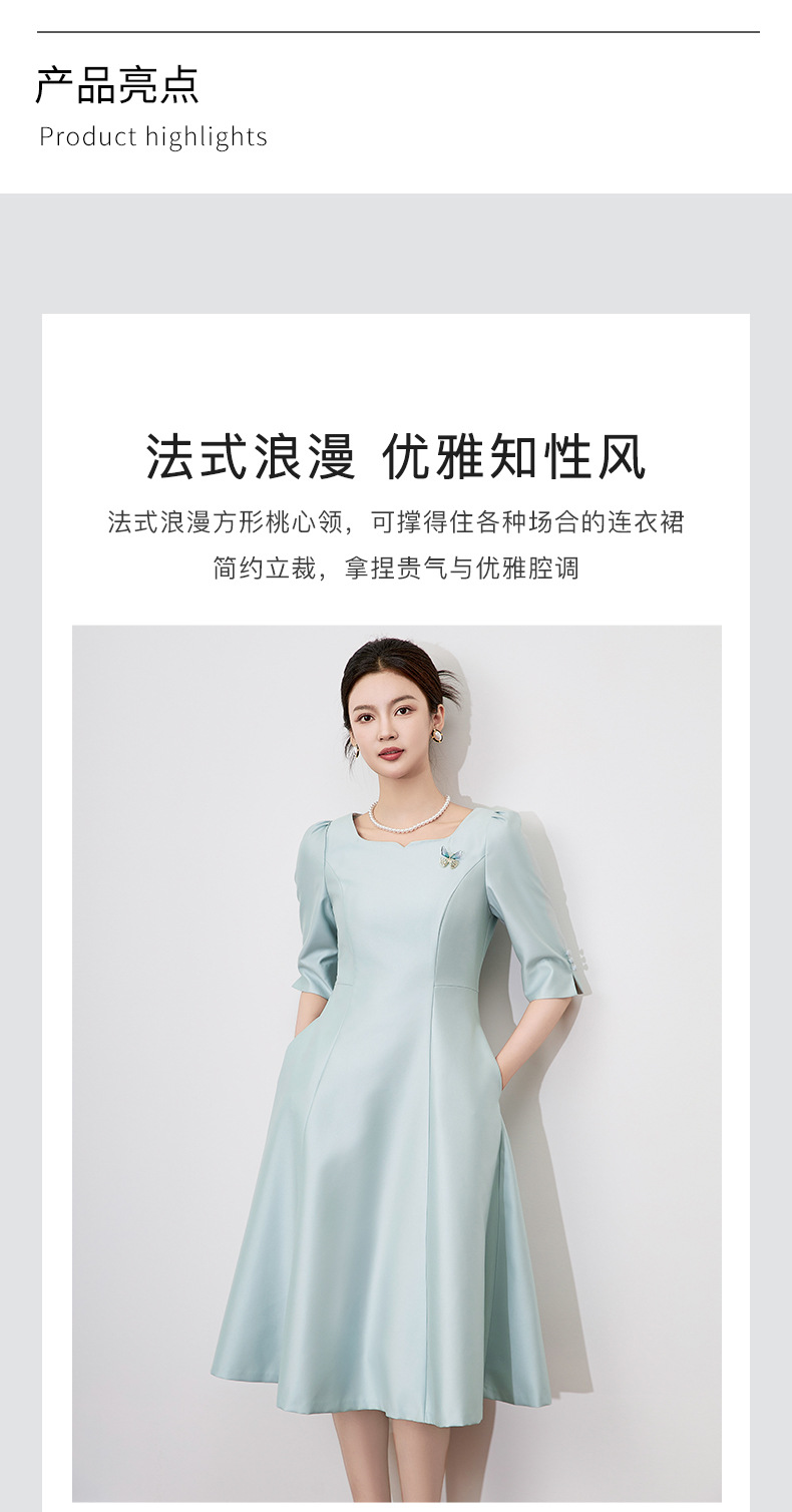 【高货wl】全新升级【铂金会员330/天猫439/差价109】(03646) 洛诗琳2025春夏款法式轻奢连衣裙高级感方领名媛礼服女