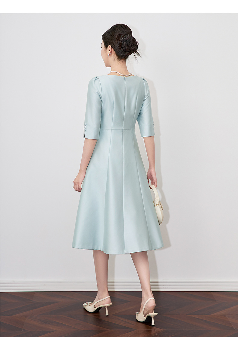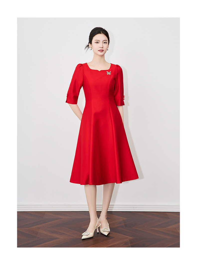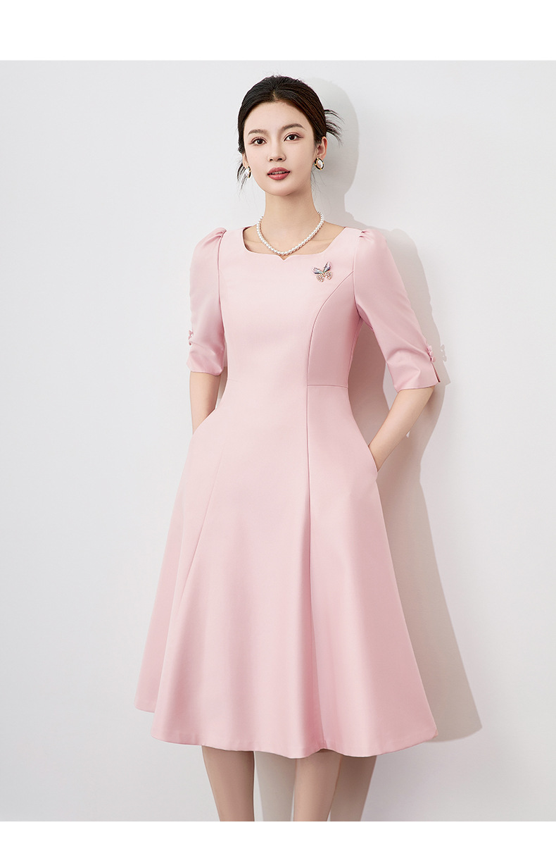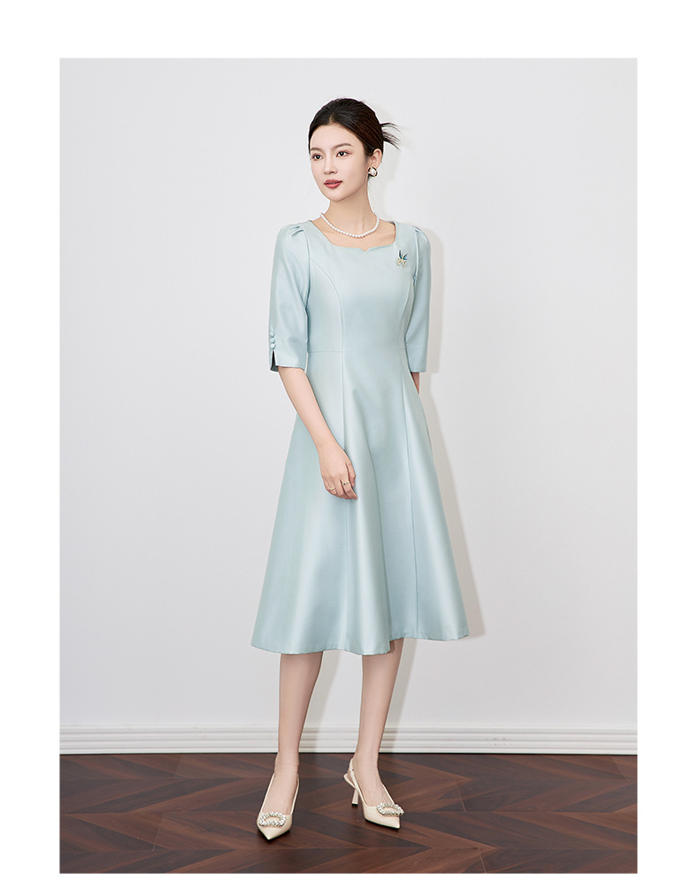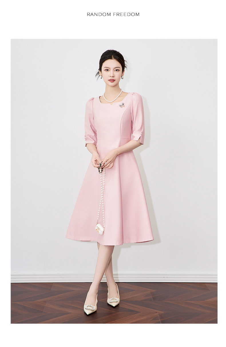 【高货wl】全新升级【铂金会员330/天猫439/差价109】(03646) 洛诗琳2025春夏款法式轻奢连衣裙高级感方领名媛礼服女