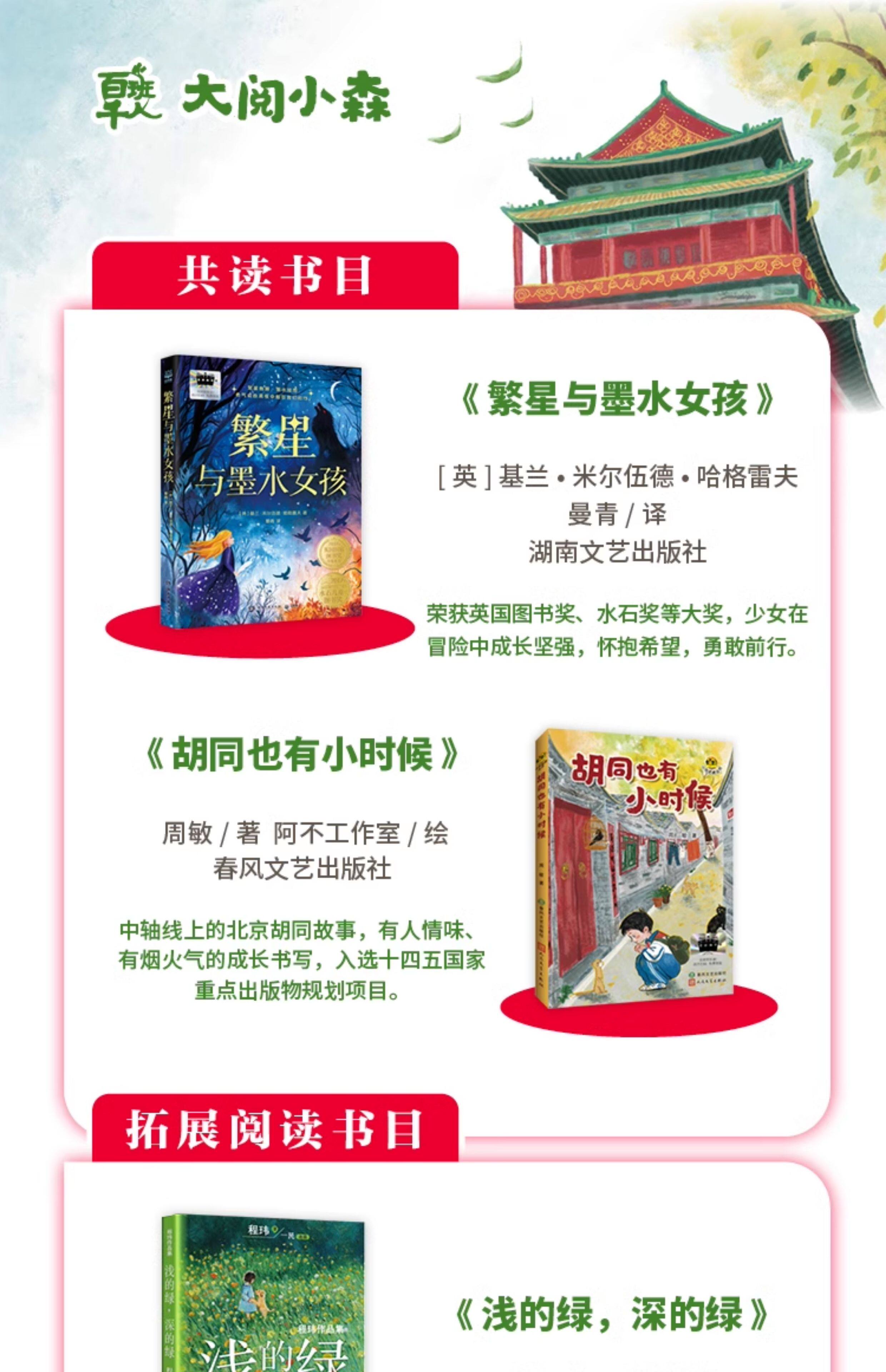 百班千人66期五年级阅读书目 繁星与墨水女孩 胡同也有小时候 浅的绿,深的绿 中国寓言 西游记 正版授权(按需加入购物