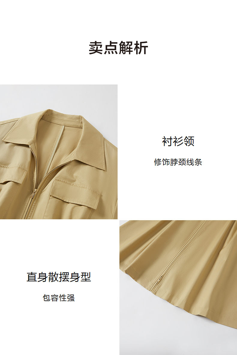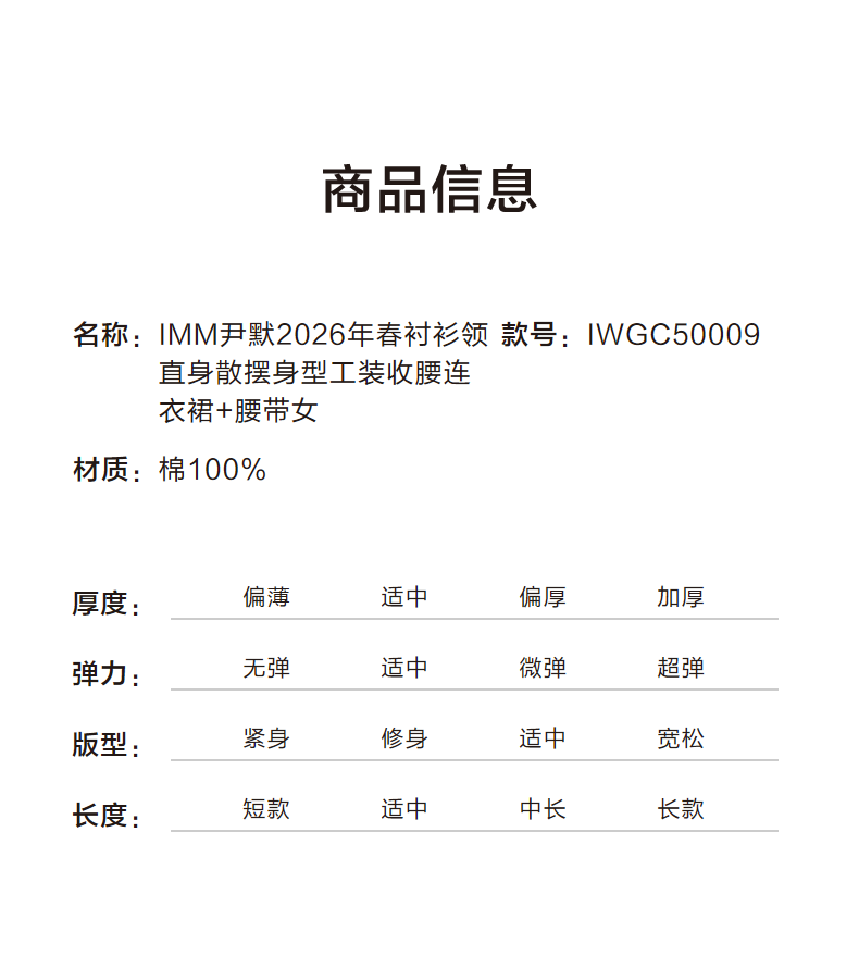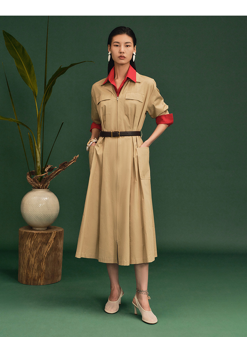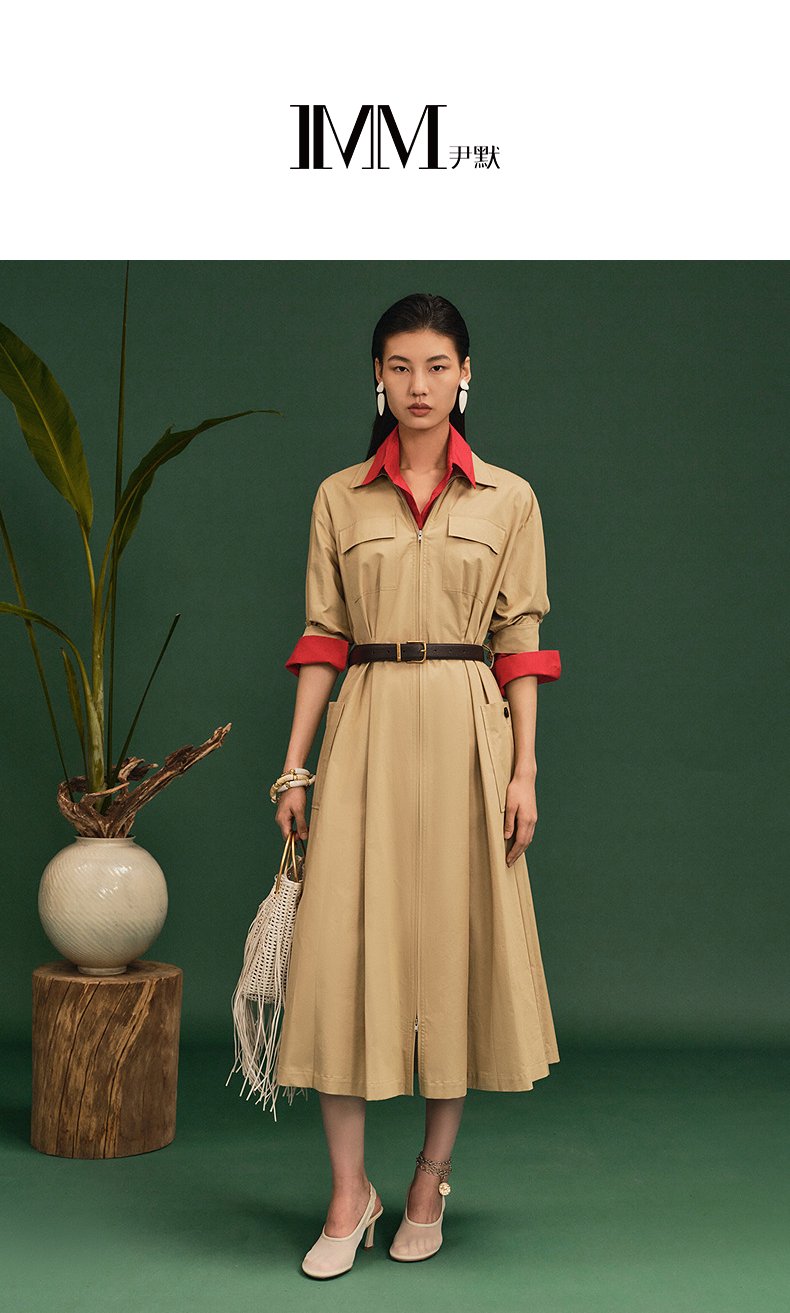 尹默衬衫领直身散摆身型工装收腰连衣裙