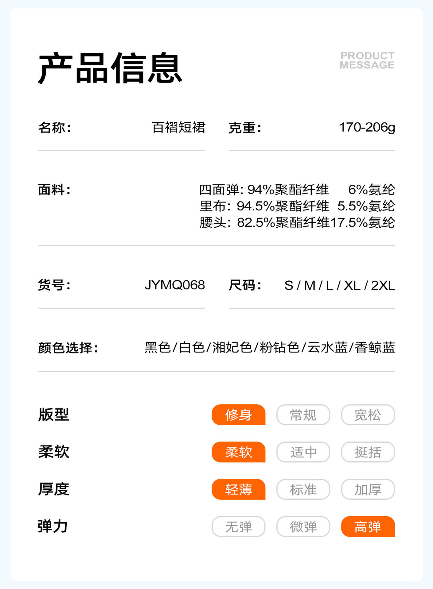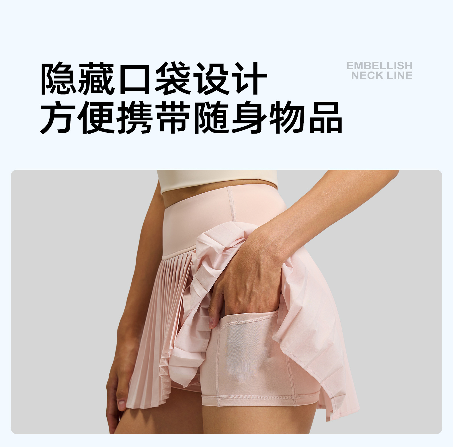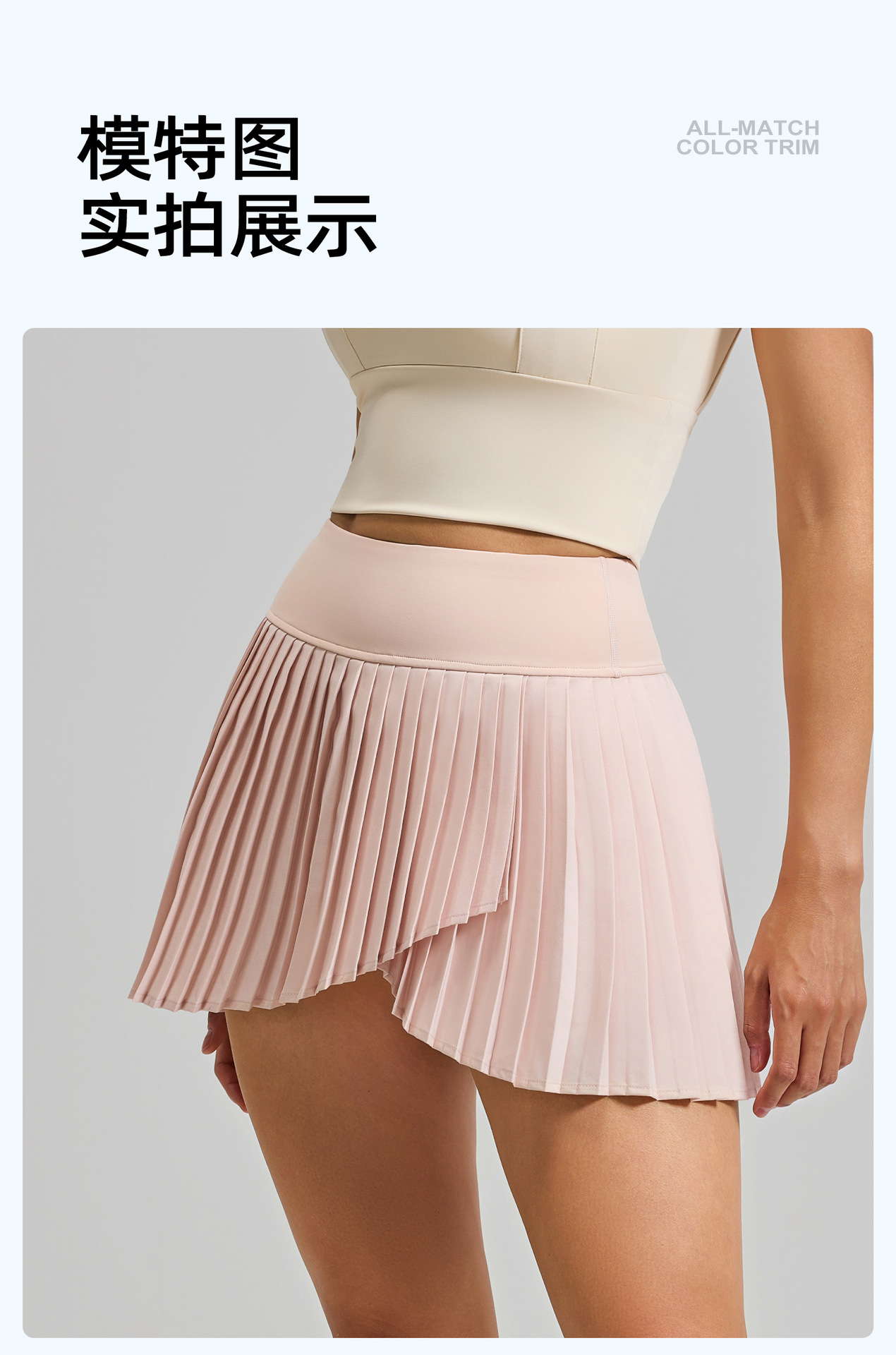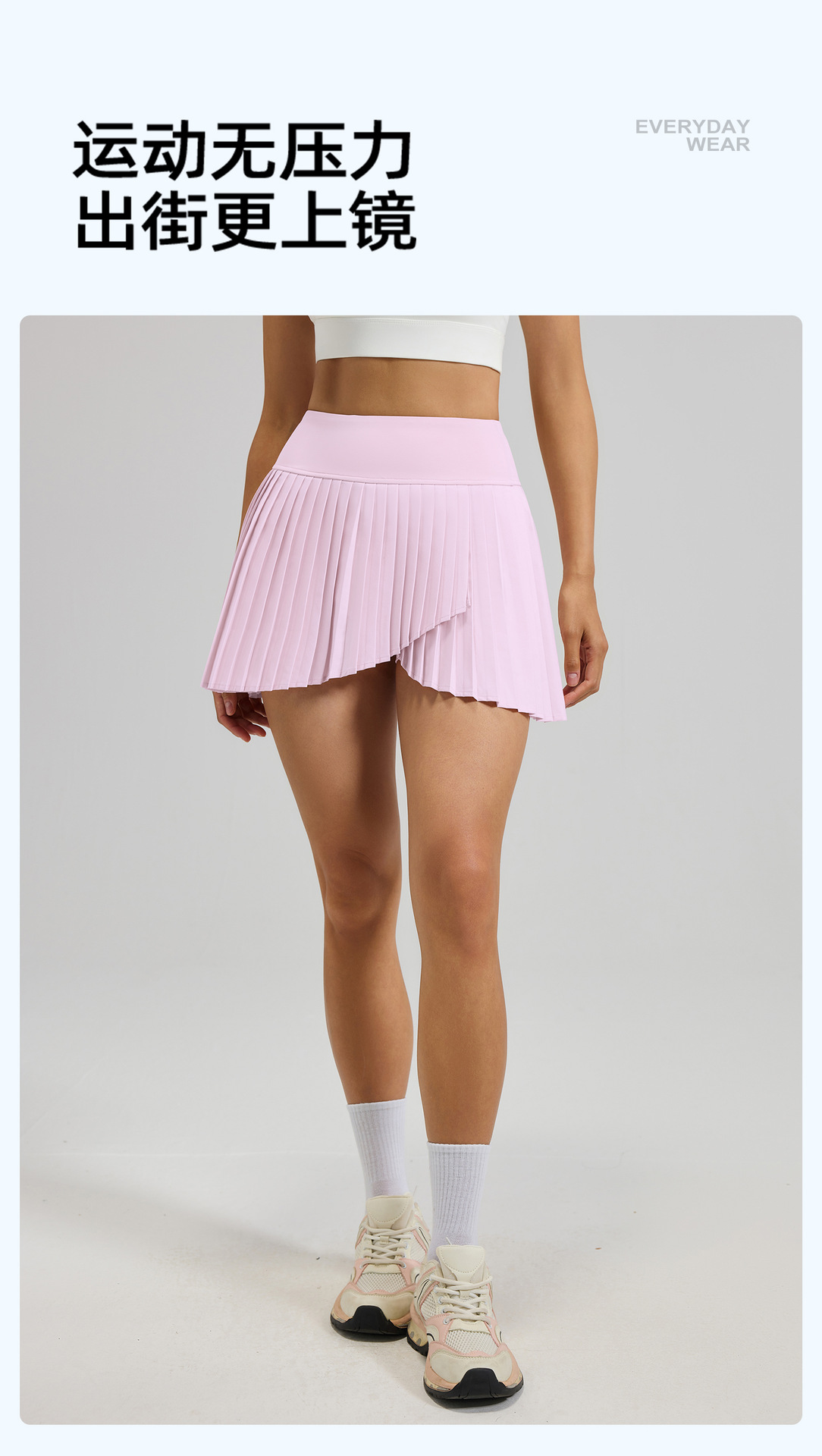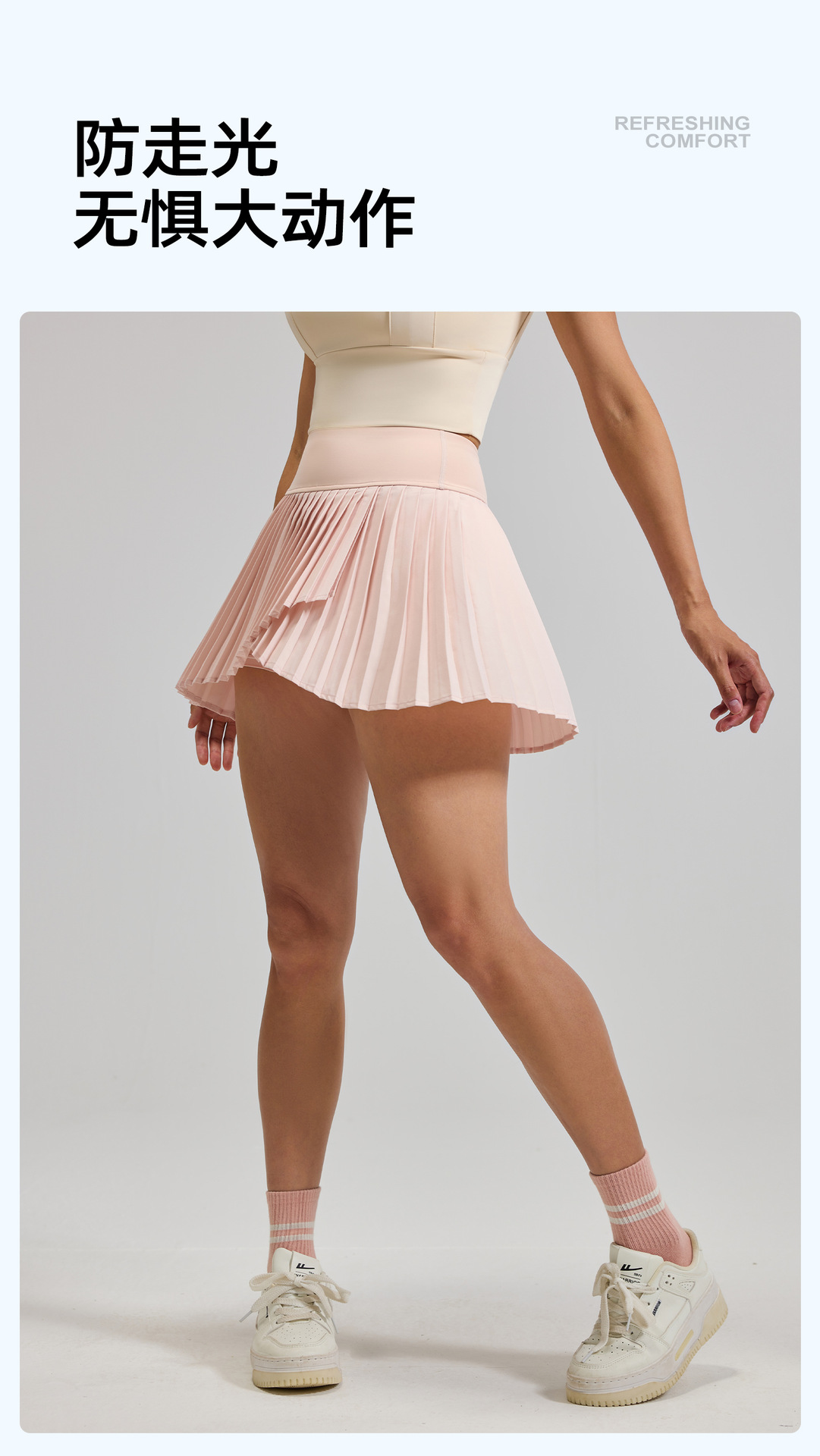 跃牌【瑜堂系列】运动短裙夏季假两件开叉百褶裙女健身瑜伽口袋防走光网球裙JYMQ068