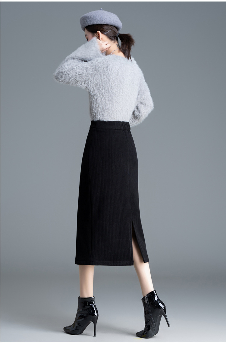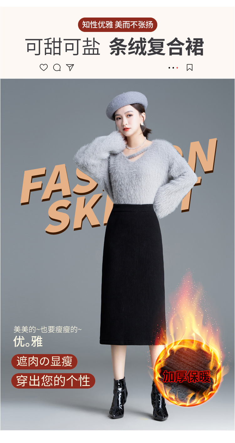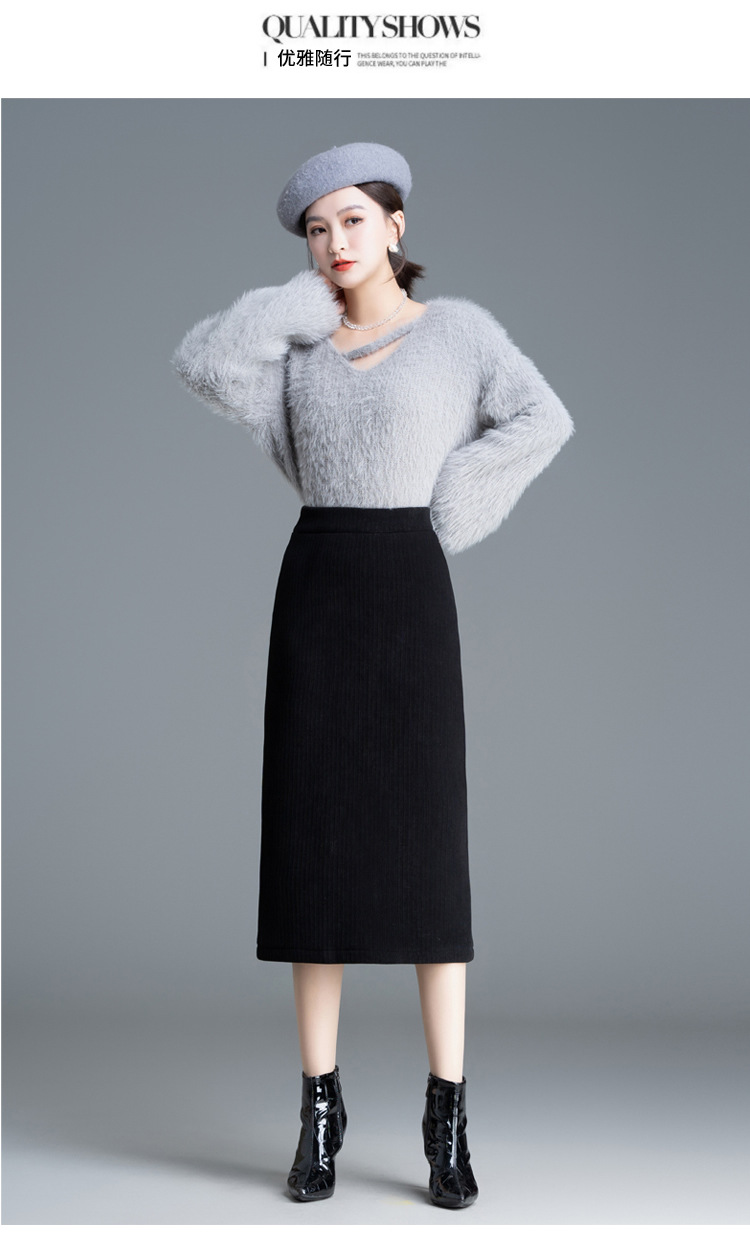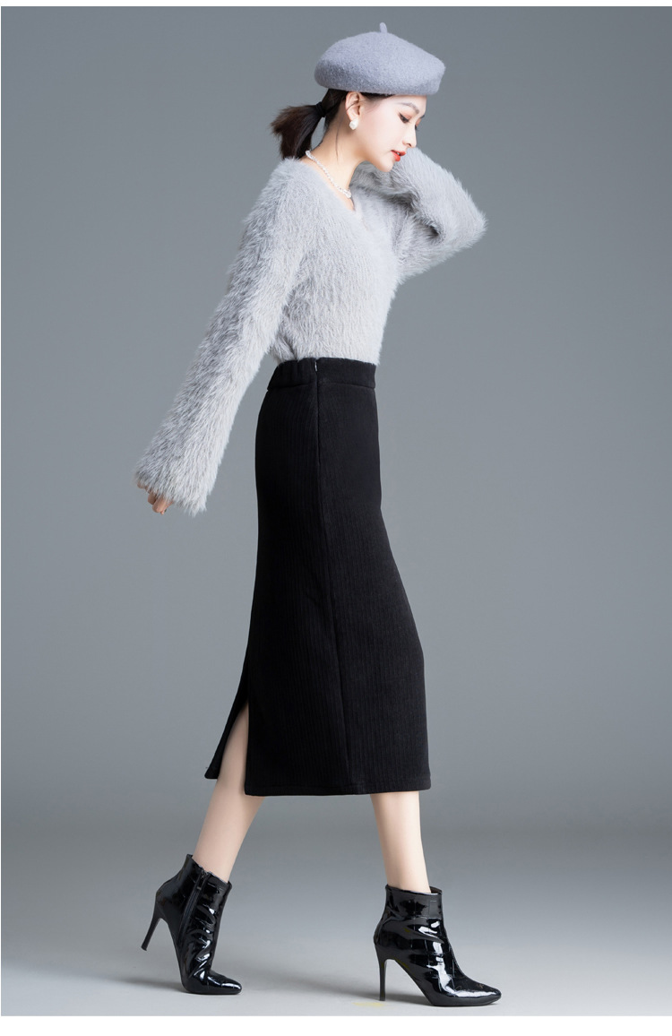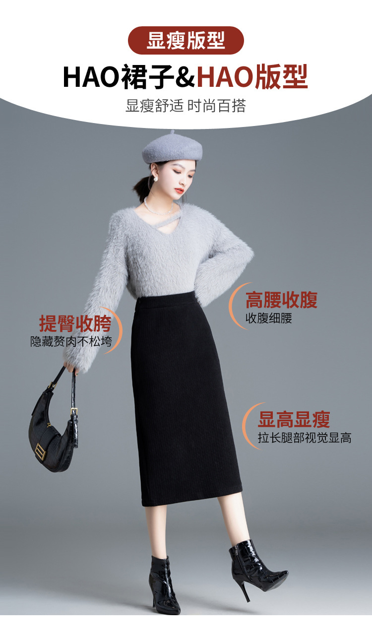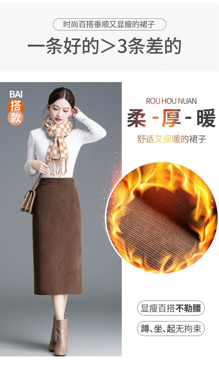 加绒加厚保暖半身裙,时尚弹力高腰开衩中长裙包臀一步裙MYX-YZY-8211-Y