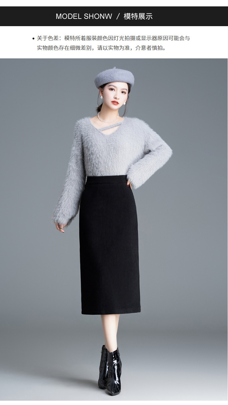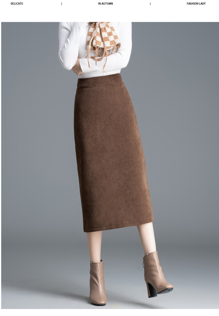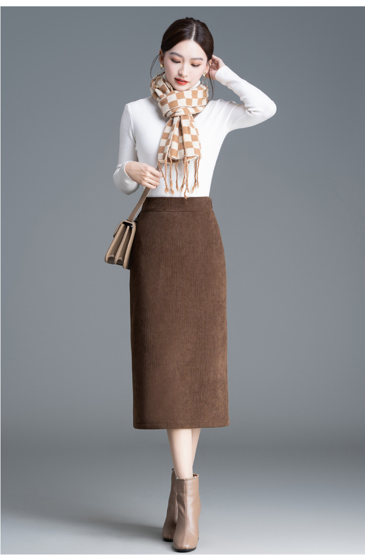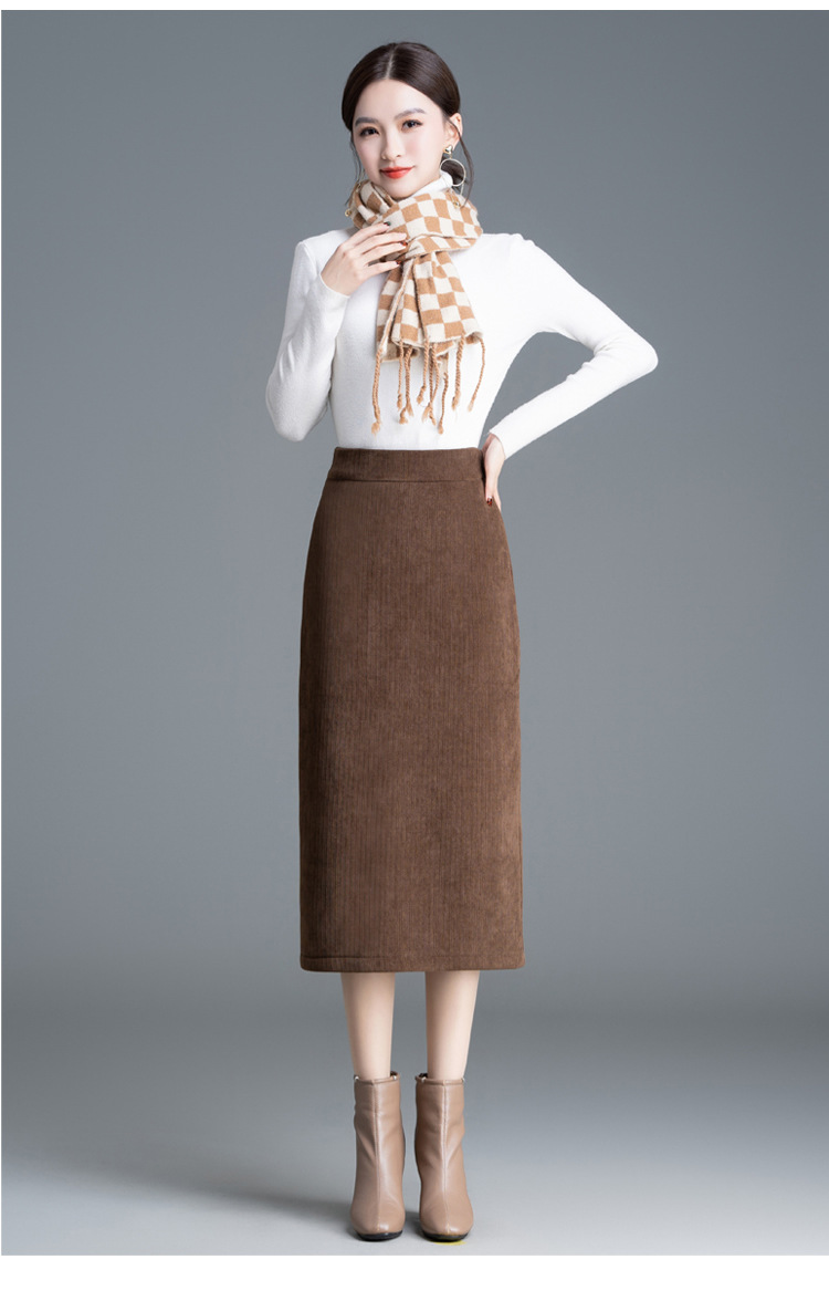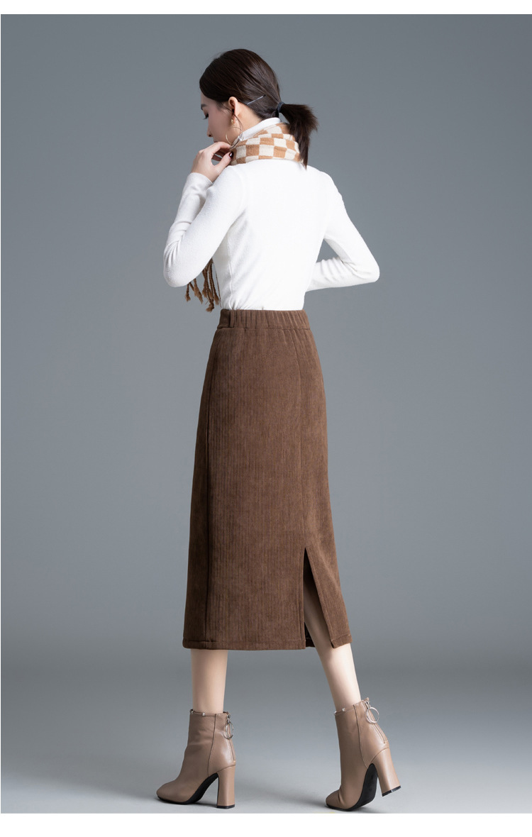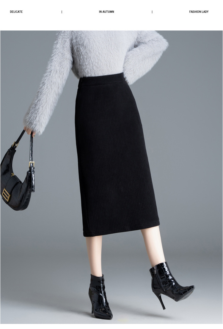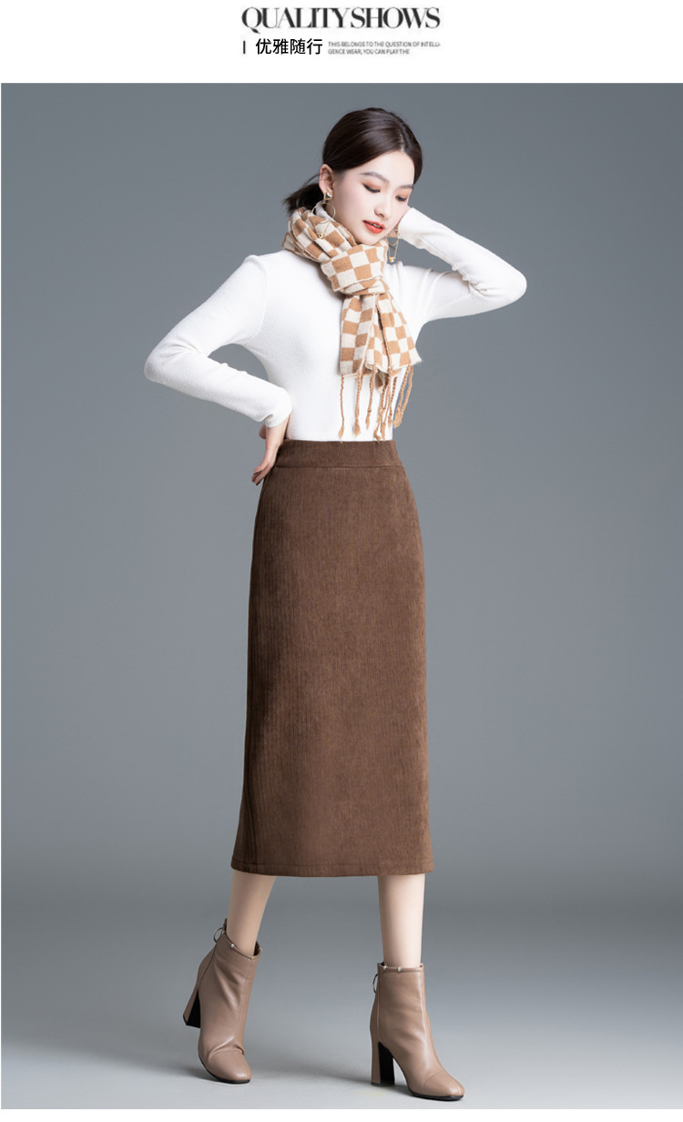加绒加厚保暖半身裙,时尚弹力高腰开衩中长裙包臀一步裙MYX-YZY-8211-Y