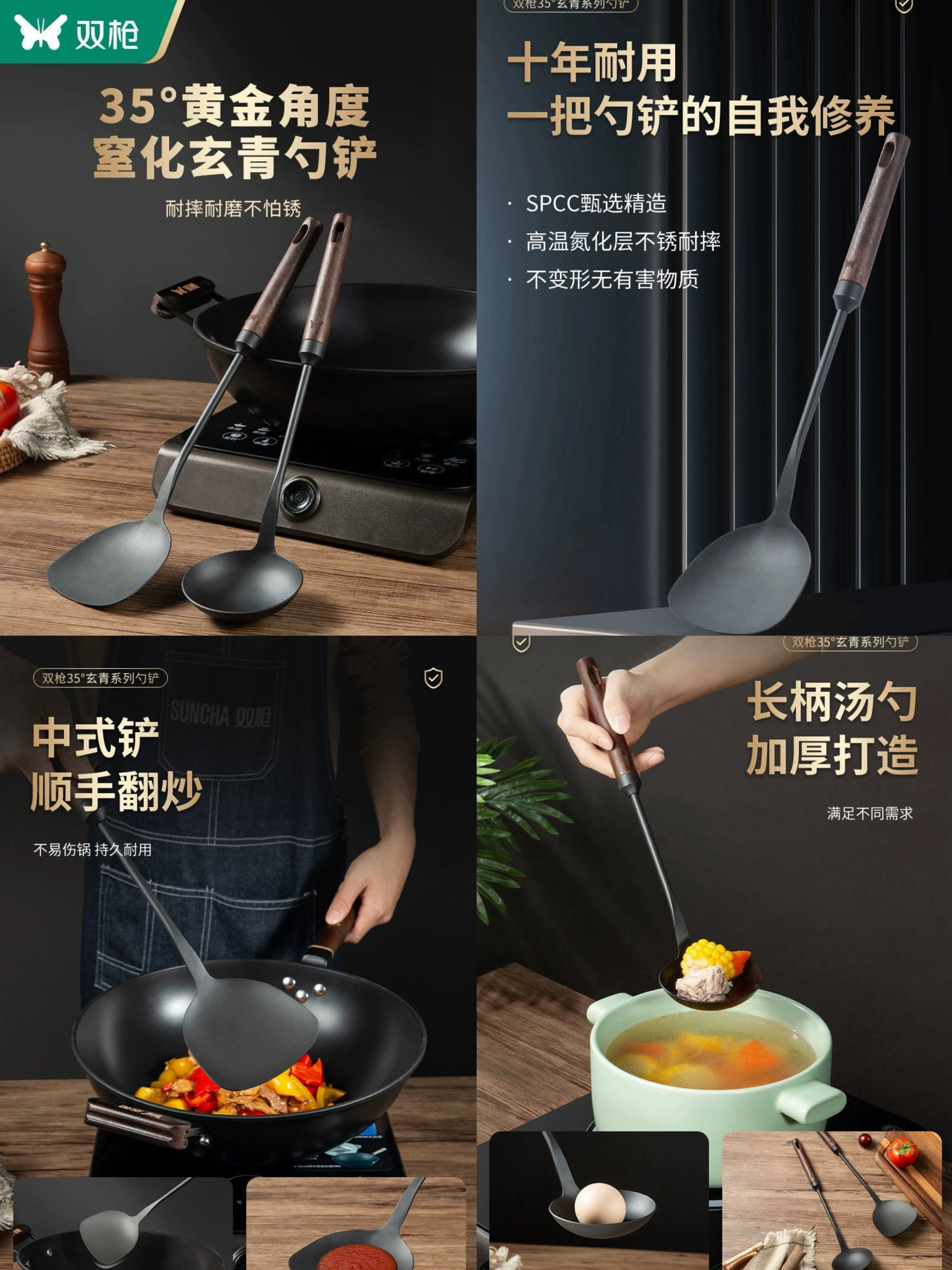 工厂紧急‼️‼️‼️ 双枪锅铲勺原单库存,仅400套!售完无! 注意⚠️高级材质,冷轧碳素钢的‼️。不要拿不锈钢来比,不在一个档次的! 让做饭都变治愈系,烟火气都变高级了!