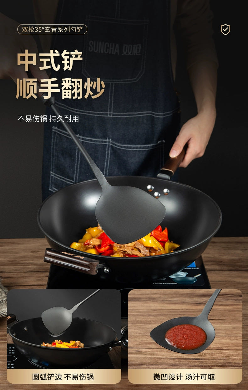 ✅ 轻量省力:炒、盛、颠锅都轻松,长时间做饭手腕不酸 ✅ 易清洁不粘油:勺面哑光材质,冲洗即净,懒人厨房必备