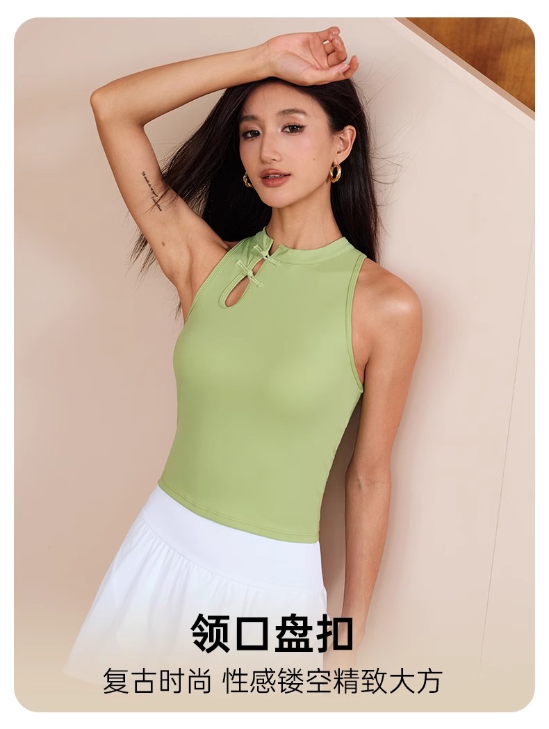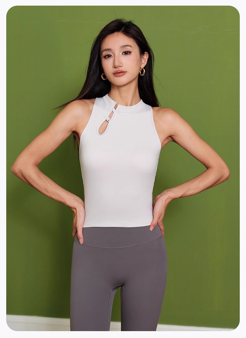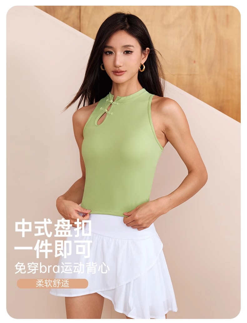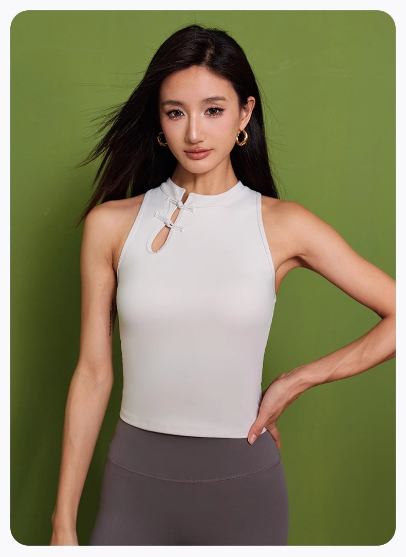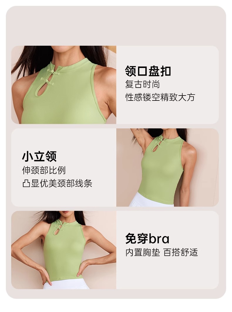 跃牌【瑜见伽人系列】中国风立领盘扣中强度聚拢一体式运动背心健身瑜伽服新中式女YB8126