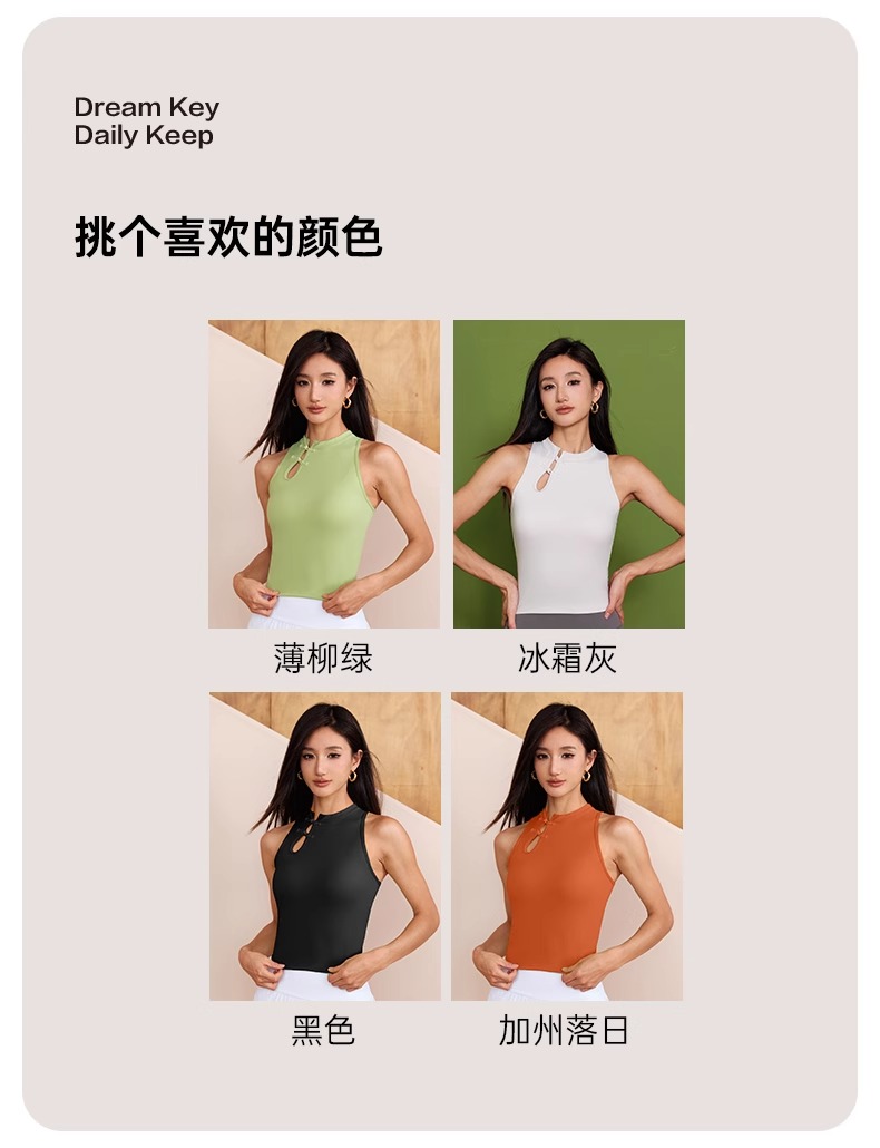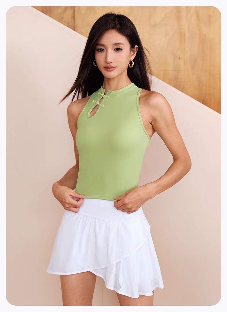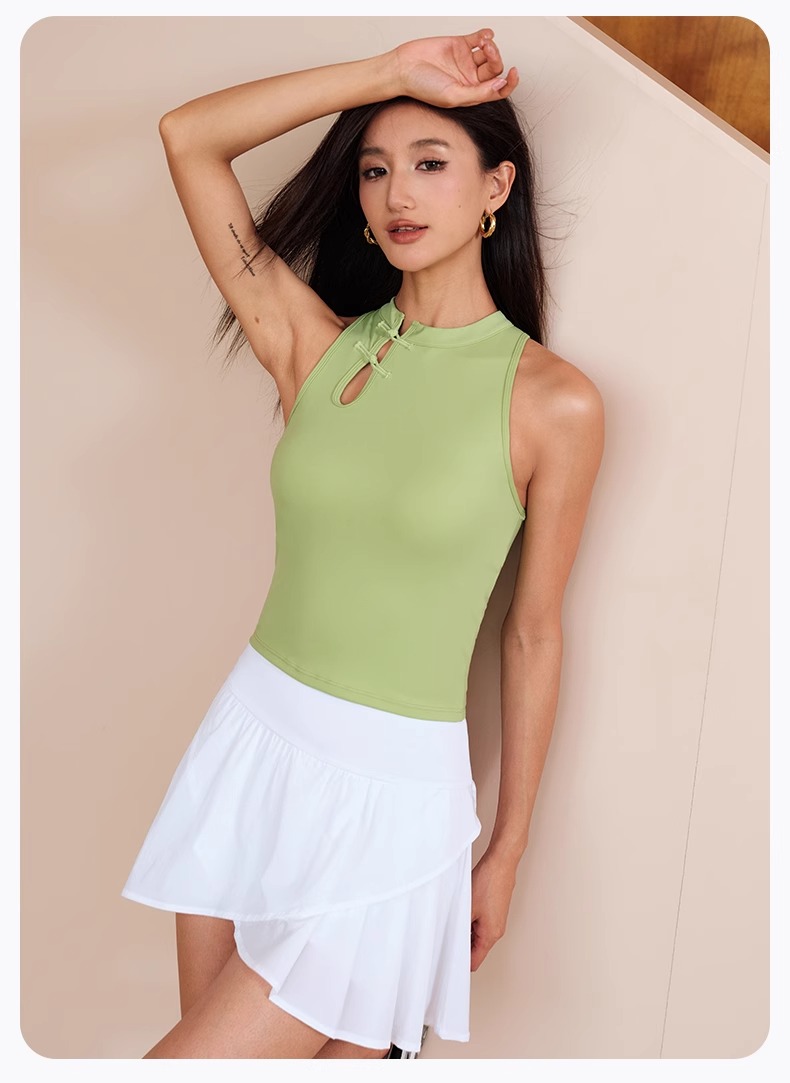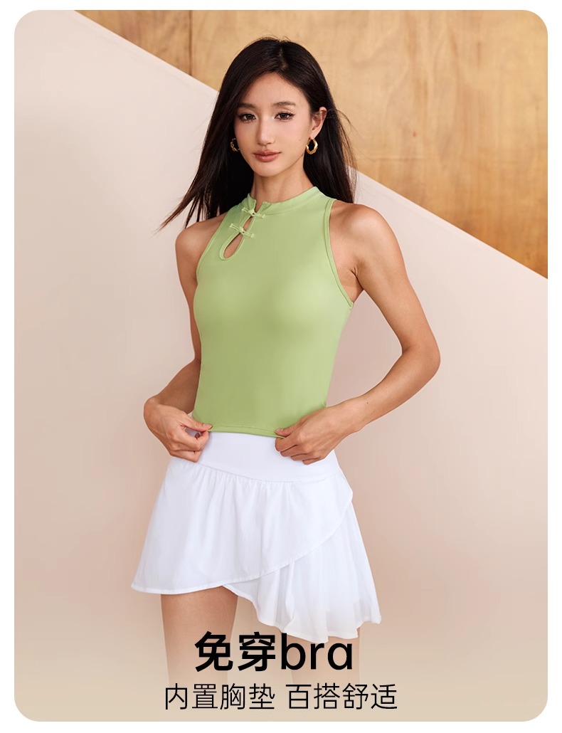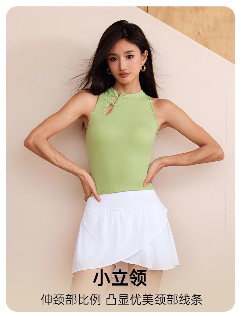 跃牌【瑜见伽人系列】中国风立领盘扣中强度聚拢一体式运动背心健身瑜伽服新中式女YB8126