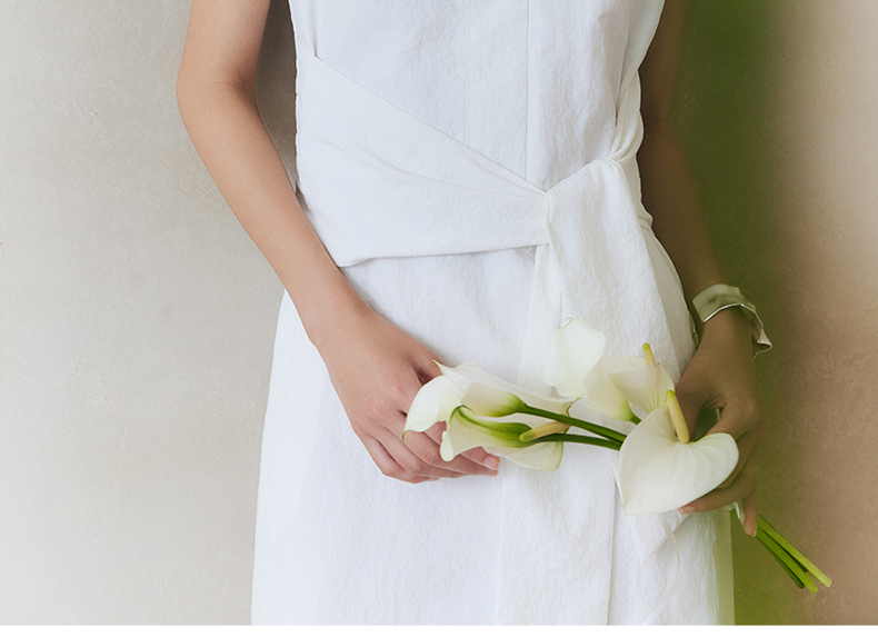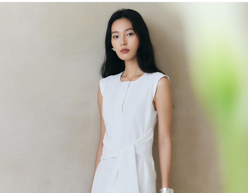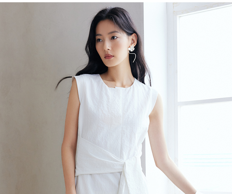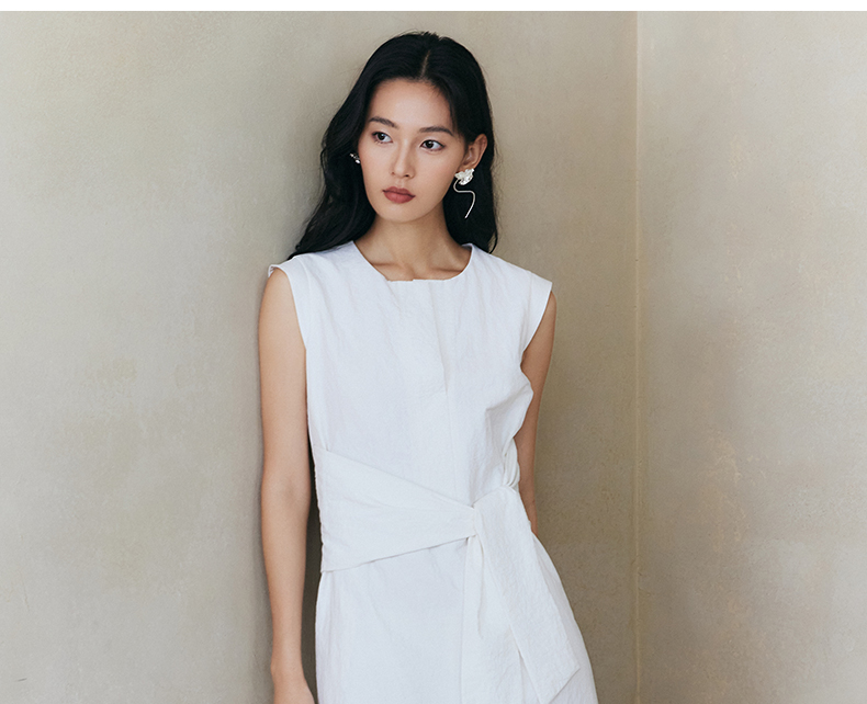 Eastern Light/乙来法式系带连衣裙新款夏季挺括慵懒A字裙子