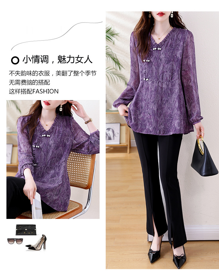 KQL A56N8131洋气长袖T恤宽松气质显瘦遮肚上衣