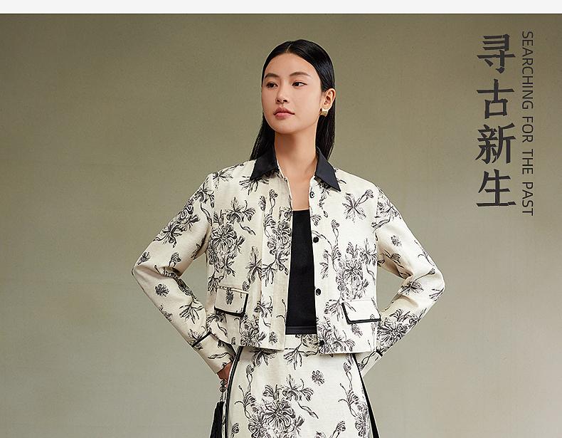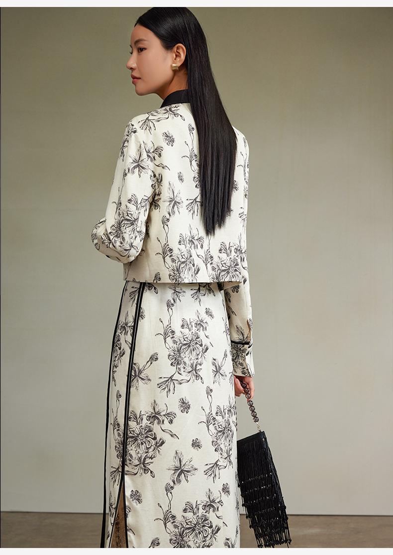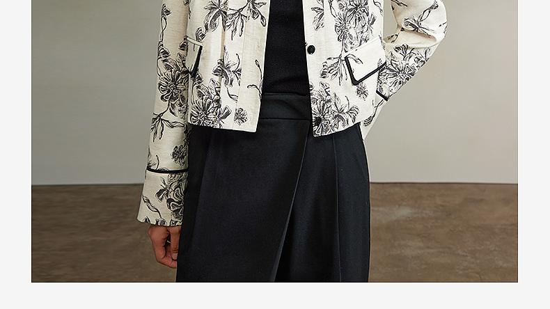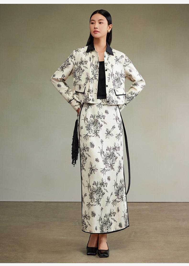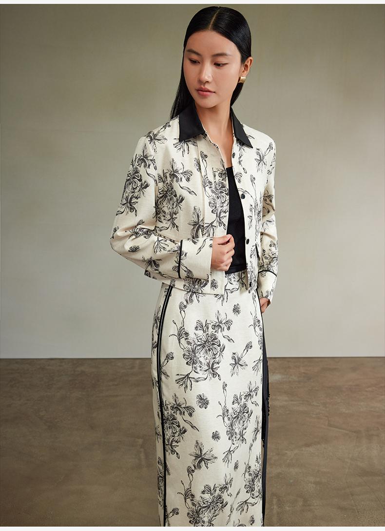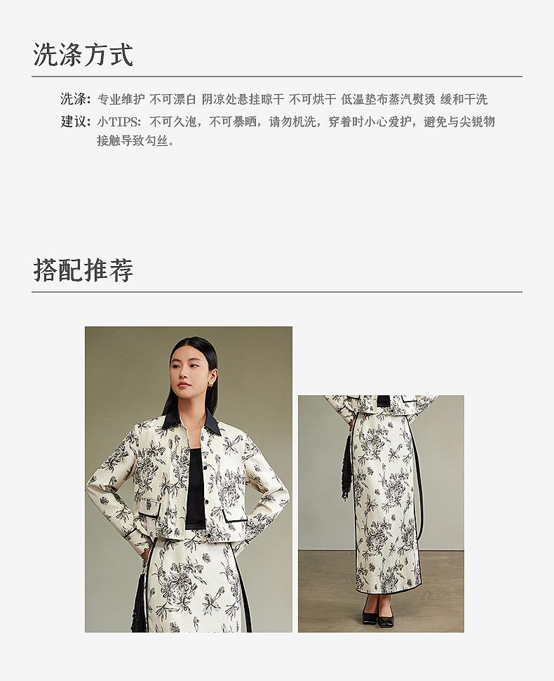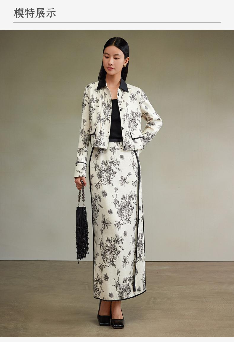 西嘉C+IMPRESS/西嘉新中式国风黑白艺术花时尚套装女 短外套+开叉半裙(货号:WT2403025)