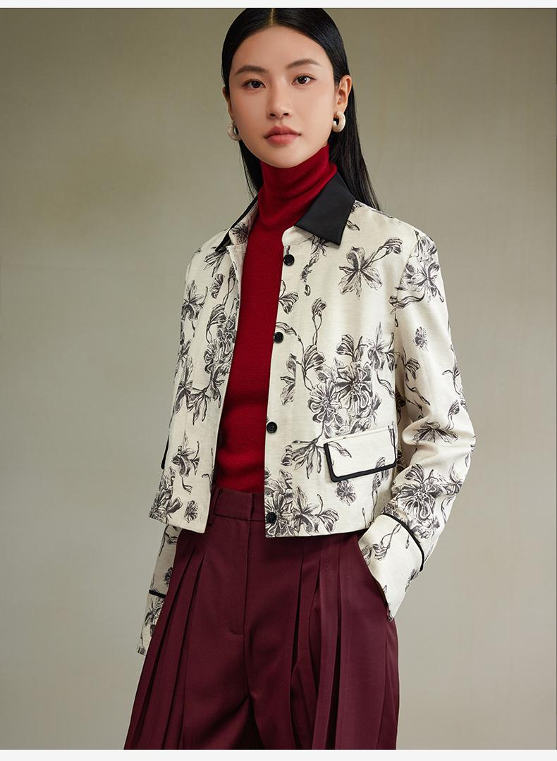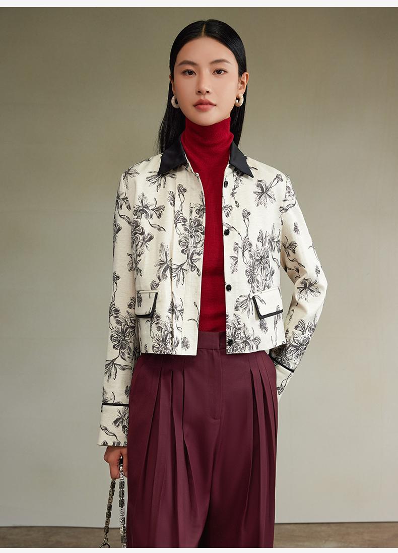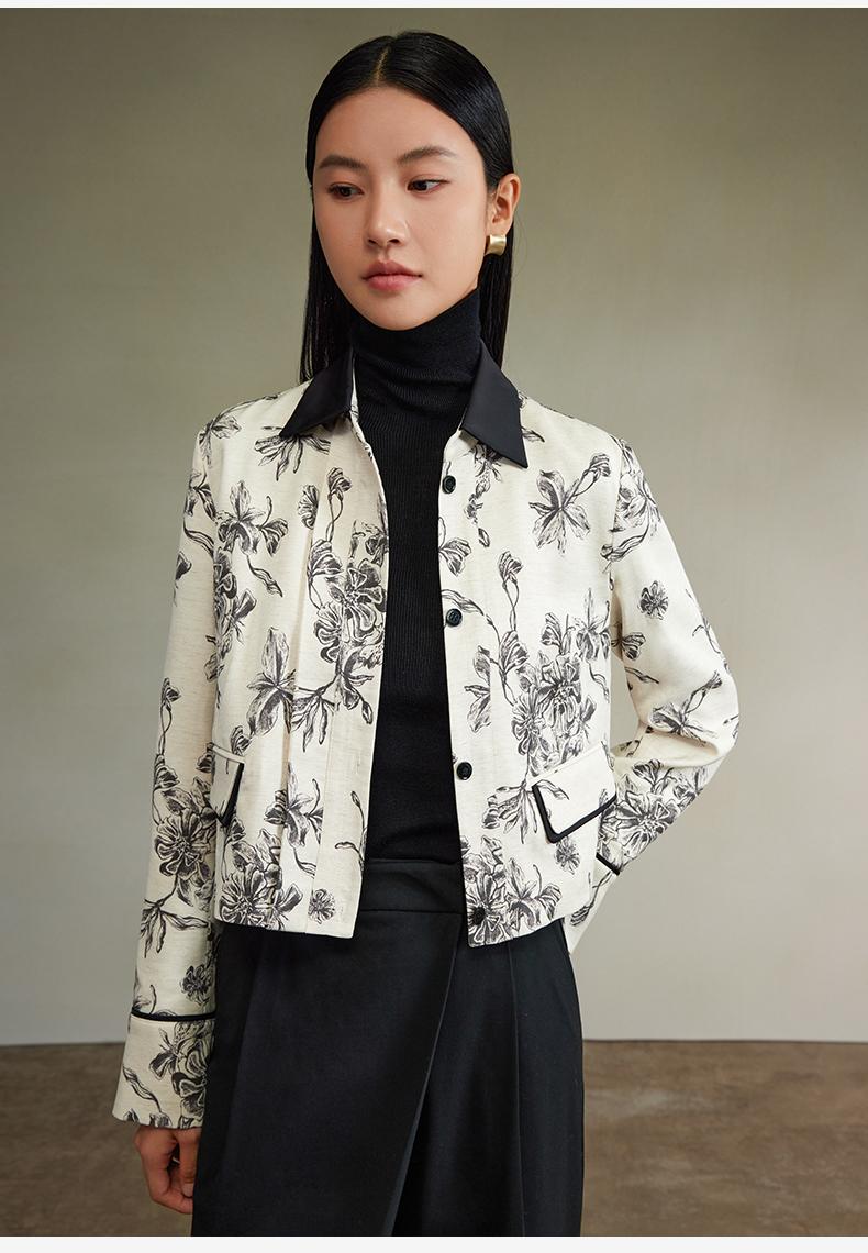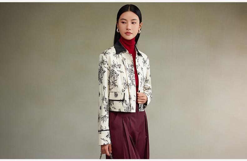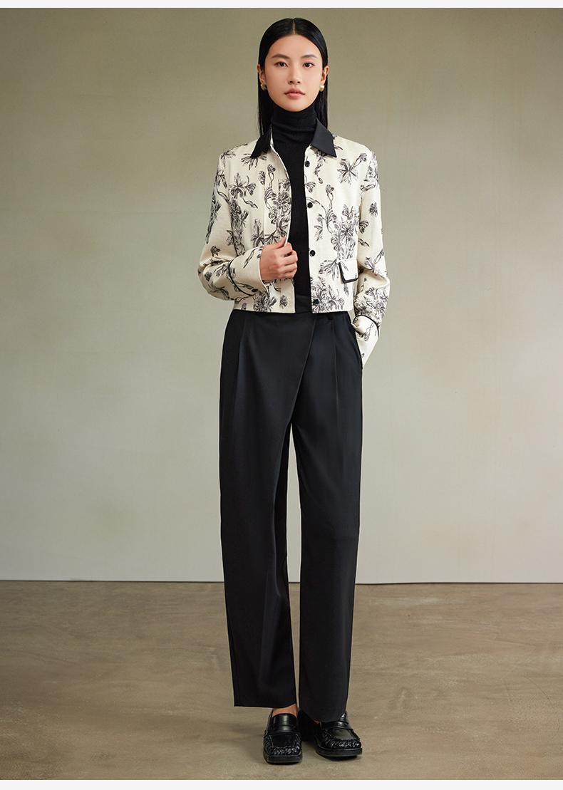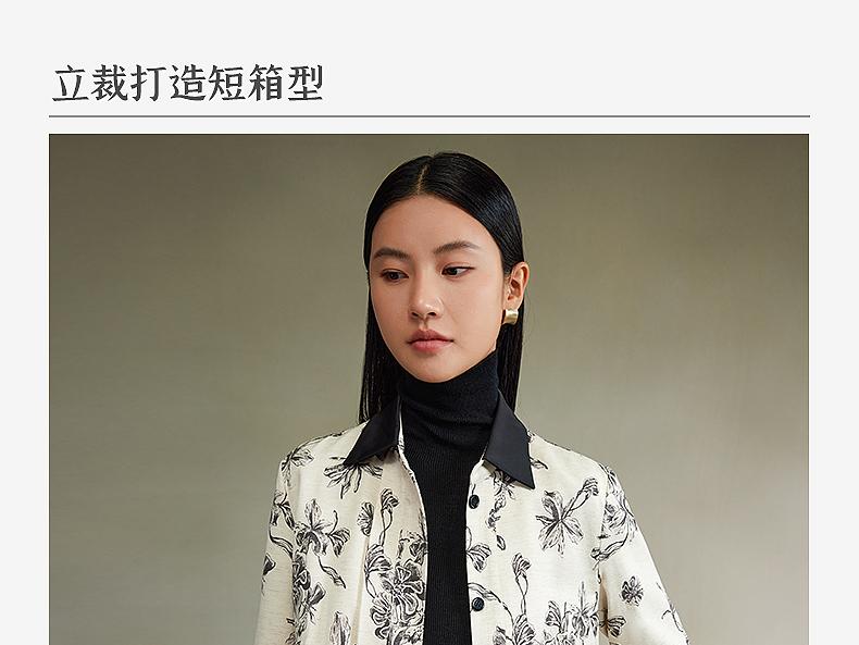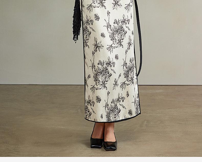 西嘉C+IMPRESS/西嘉新中式国风黑白艺术花时尚套装女 短外套+开叉半裙(货号:WT2403025)