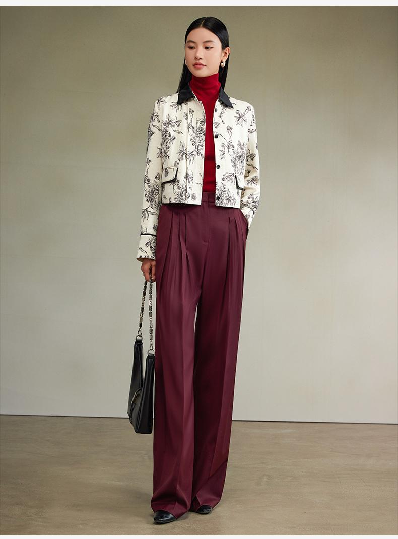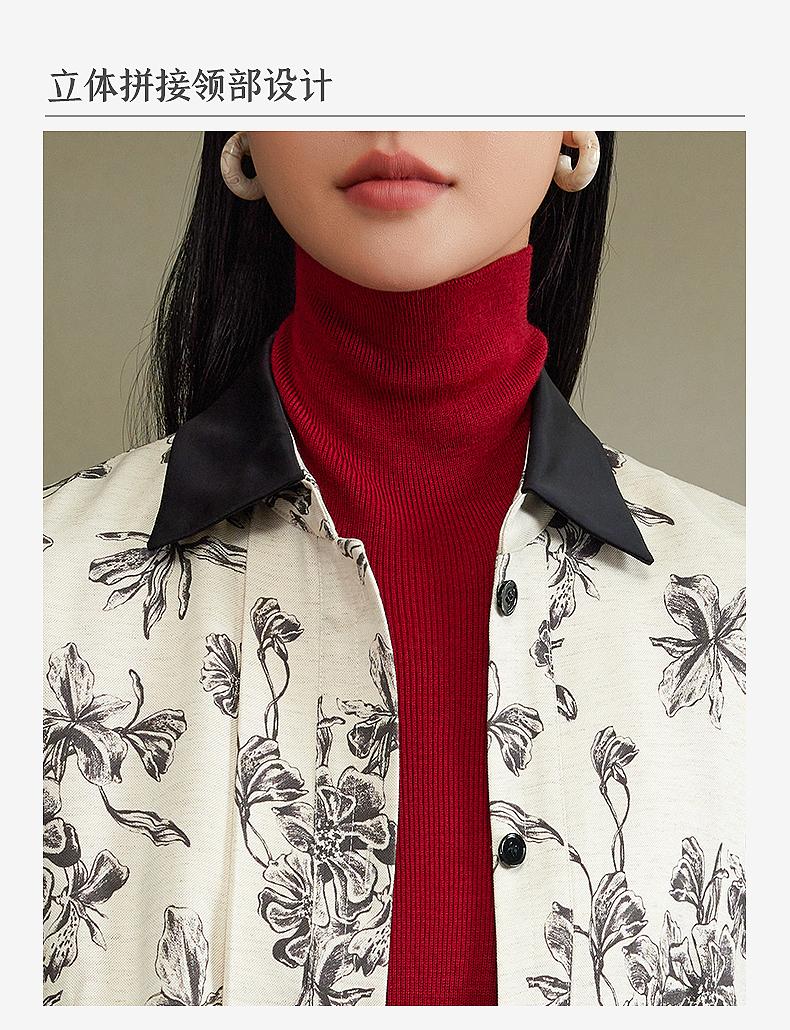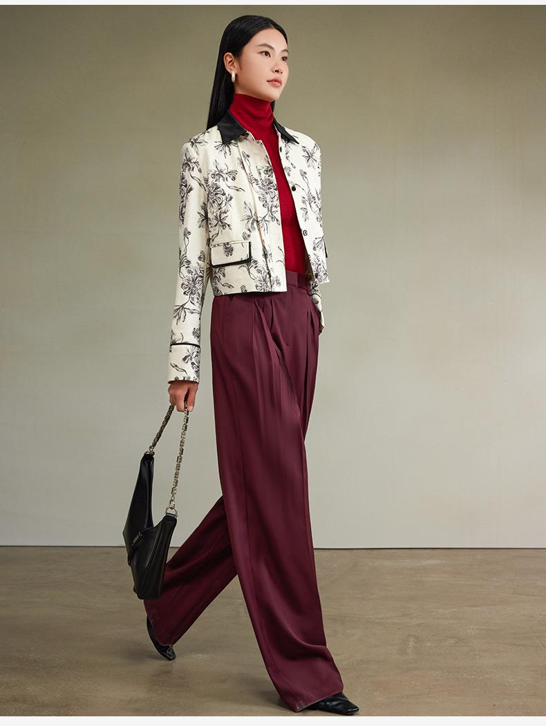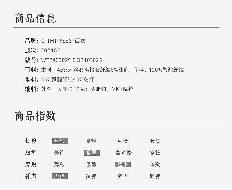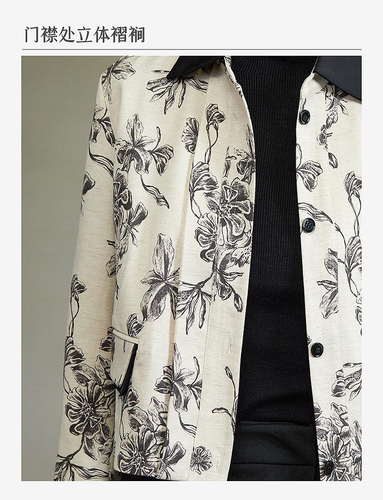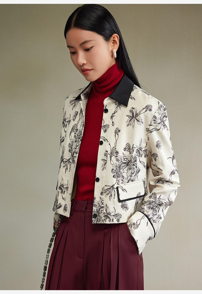西嘉C+IMPRESS/西嘉新中式国风黑白艺术花时尚套装女 短外套+开叉半裙(货号:WT2403025)