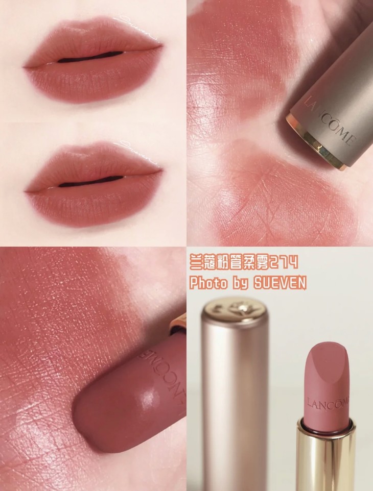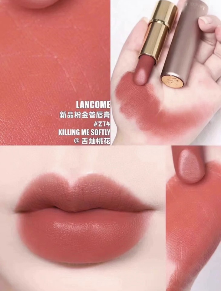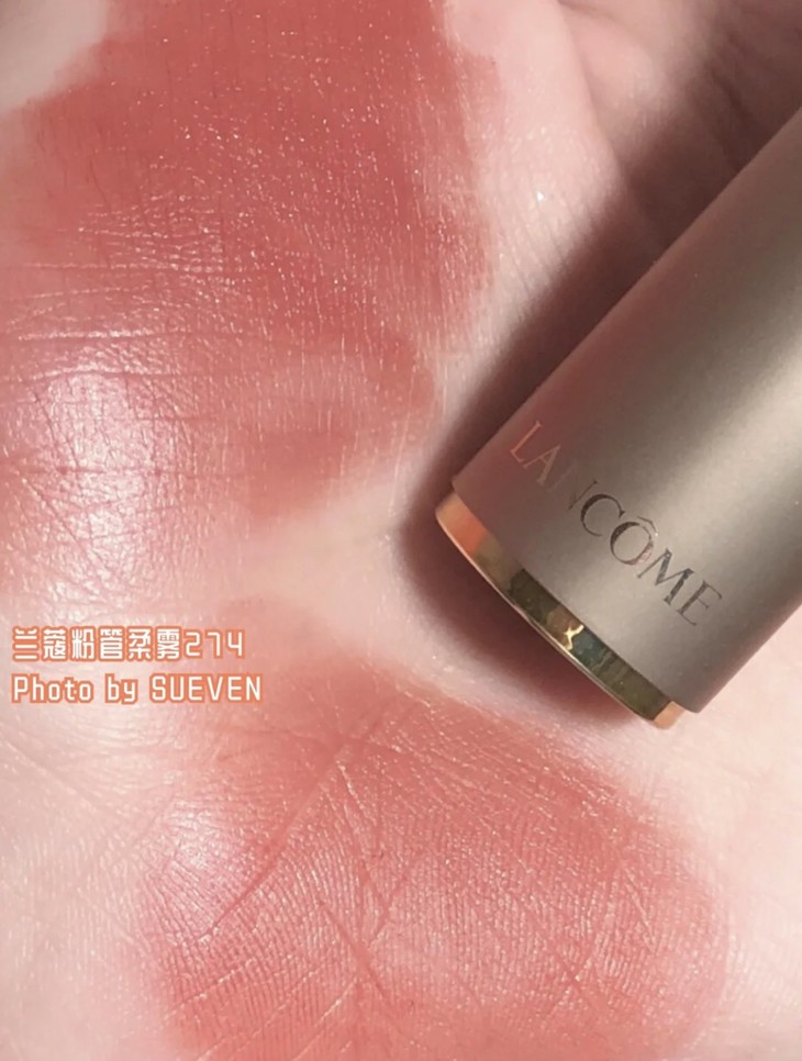 兰蔻粉金管口红#274👍杏仁奶茶☕️ 炒鸡温柔!根本抵挡不了!偏粉橘调,饱和度低,显白☁️ 。哑光质地,易抹开,更显柔雾感🌫 ,不拔干很顺滑。新款粉金外壳💗 ,颜值满满又高级。涂上你是最温柔的女人👄 ,简直是温柔本柔了!适合秋冬季和白皮的妹子💃 ,黑黄皮的慎入哦~
