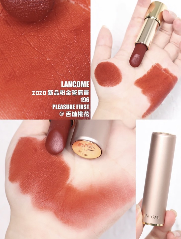 兰蔻粉金管口红#196👍阳光下的兰蔻196,像打翻的胡萝卜汁🥕。外壳和唇膏一样都是哑光磨砂质感很高级,粉金配色真的太❗美❗了❗颜色是朱砂橘色,薄涂能提气色,厚涂就很有层次感,厚涂显女王范👸,轻涂则呈现的效果会偏橘红色多一点,并没有显得很强势,而是温柔大方,气质可人。薄雾哑光质地,滋润不脱色,持久度非常棒,🌟日常显白一年四季都可以涂。