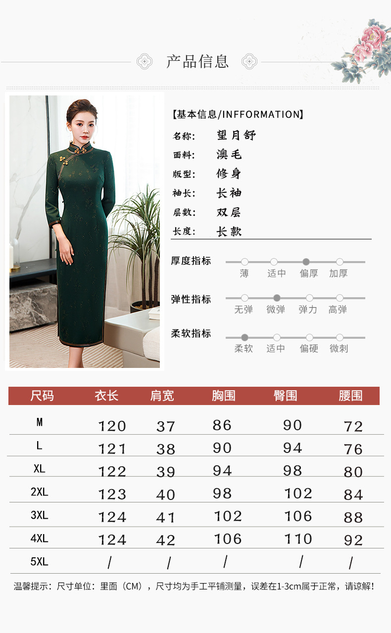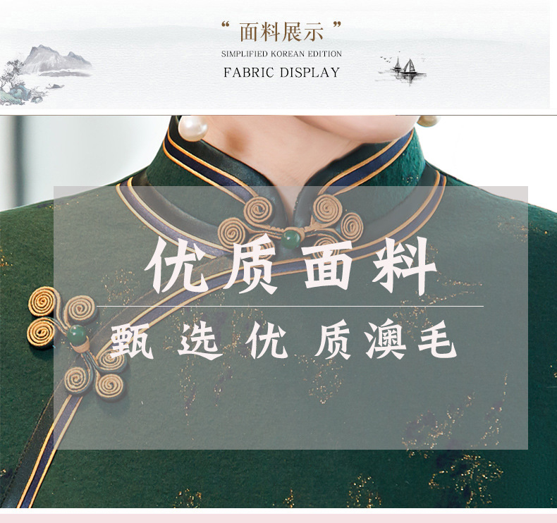 TY-922澳毛面料手工包边柔软舒适修身显瘦遮肚高雅国风旗袍