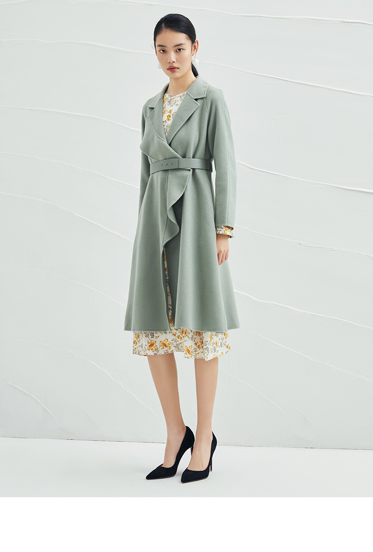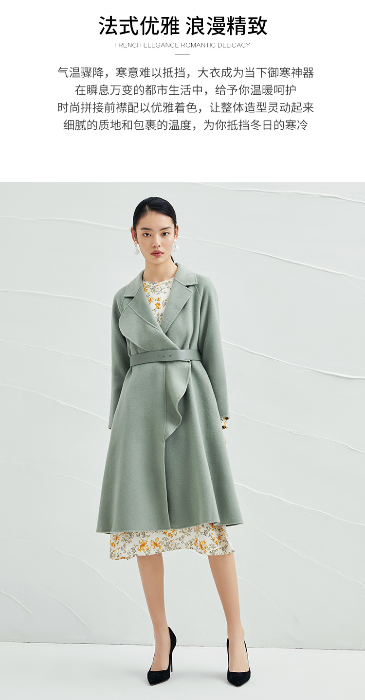 VIMAGE纬漫纪秋款气质翻领双排扣风衣外套女短款时尚经典VA2104109