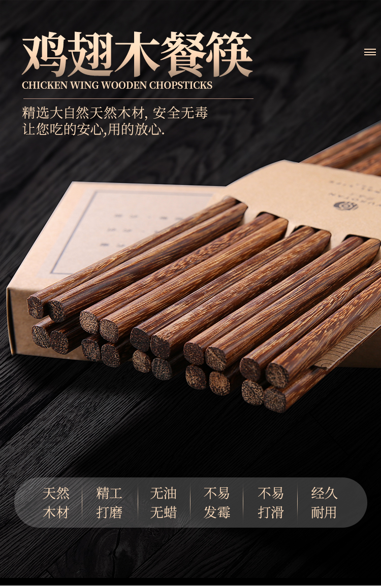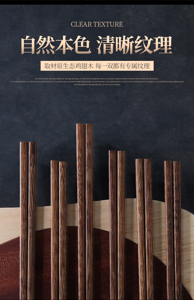 4.鸡翅木硬度高,不易磨损,避免筷子头磨损起毛刺滋生细菌。