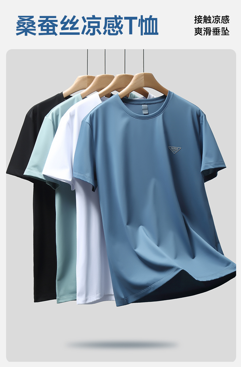 【新款DWN】大依优型大码男装桑蚕丝凉感圆领短袖T恤休闲运动加肥加大胖子穿大号打底半袖